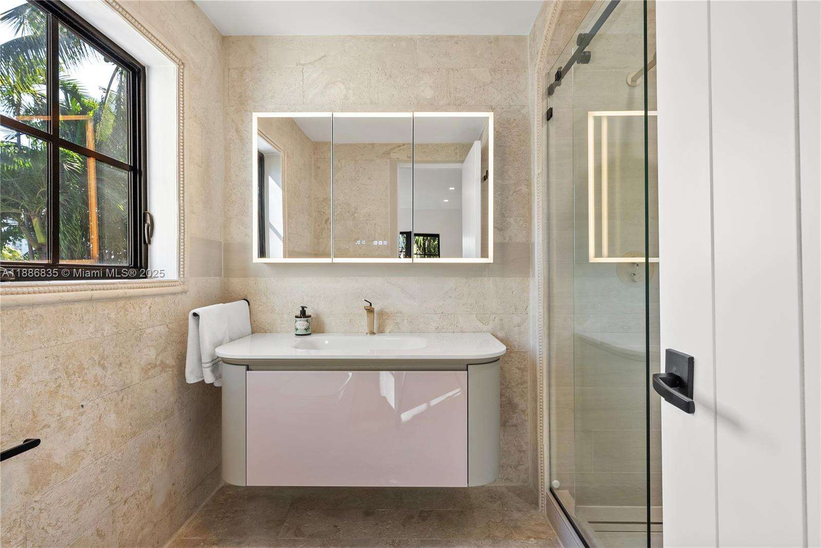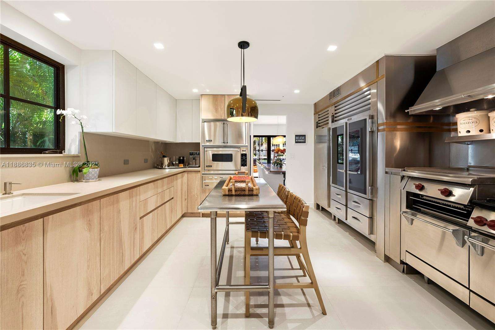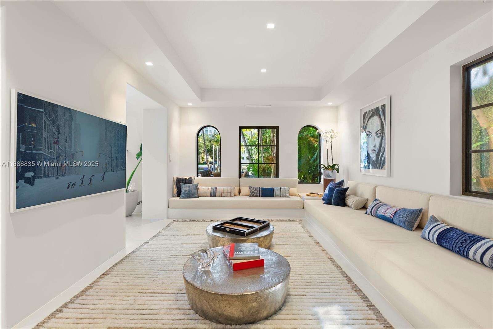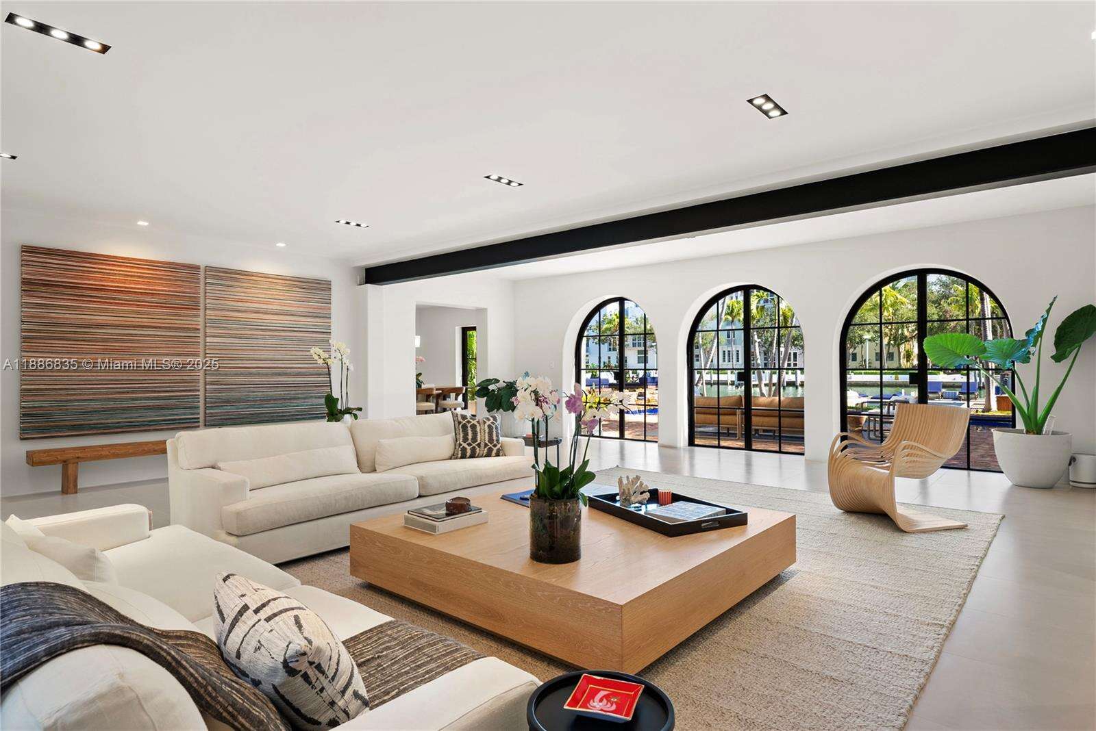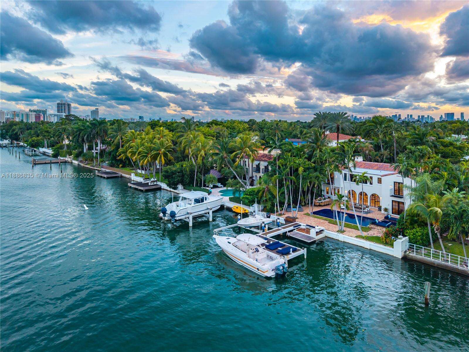 Where contemporary design meets timeless Mediterranean Revival, this stunning waterfront estate defines refined Miami Beach living. Privately set behind lush landscaping on prestigious Pine Tree Dr., it resides in one of the city’s most coveted enclaves, celebrated for its historic charm & unbeatable location. Arched architecture & restored period details nod to The Surf Club’s iconic style, while interiors embrace coastal blues, soft neutrals, & modern tropical accents. This 5BD/4.5BA "smart home" has 75’ of water frontage, boasting a grand gated lanai entrance, gourmet gas kitchen with 2 sinks, spa-inspired primary suite with steam shower & soaking tub, & wine cellar. Enjoy a pool, spa, & dock accommodates 3 boats, featuring a 20,000-lb lift with direct bay access & no fixed bridges.