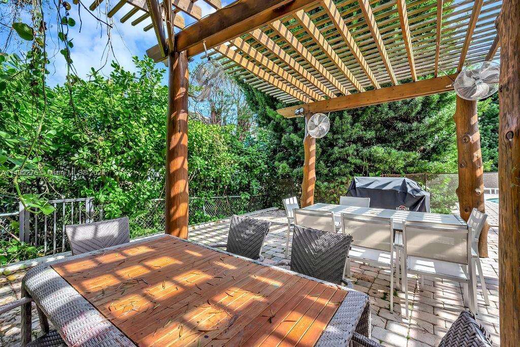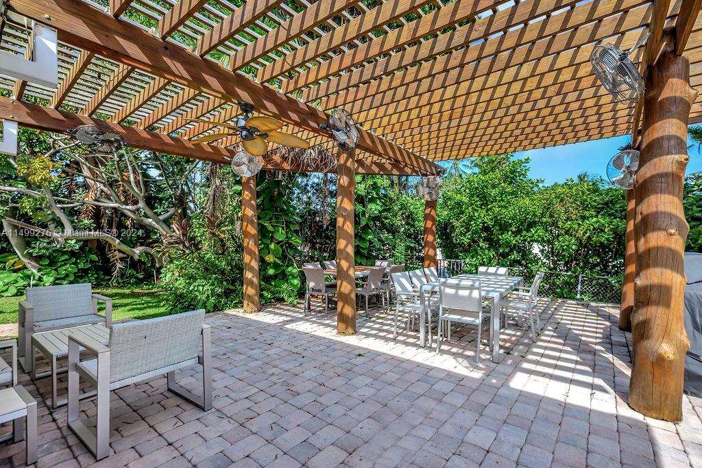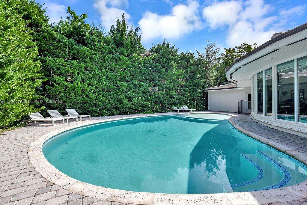 Rare opportunity to live in the exclusive guard gated Bal Harbour Village on an oversized (17,500 sq. ft.) cul-de-sac lot situated in A+ location with a rare unobstructed garden view, steps from the Bal Harbour shops pedestrian entrance and 96th St "side gate". This charming single story Mediterranean home was originally redone by renowned architect Barry Sugarman. Featuring an expansive master suite with an office/gym area, exquisite master bathroom, spacious closet space, skylights adding extra natural light, bar in dining room, media room, cabana bath and a converted garage with 2/ 2 bath maids quarters. Outdoor space includes an extra large backyard with a garden, sitting area and a large pool.