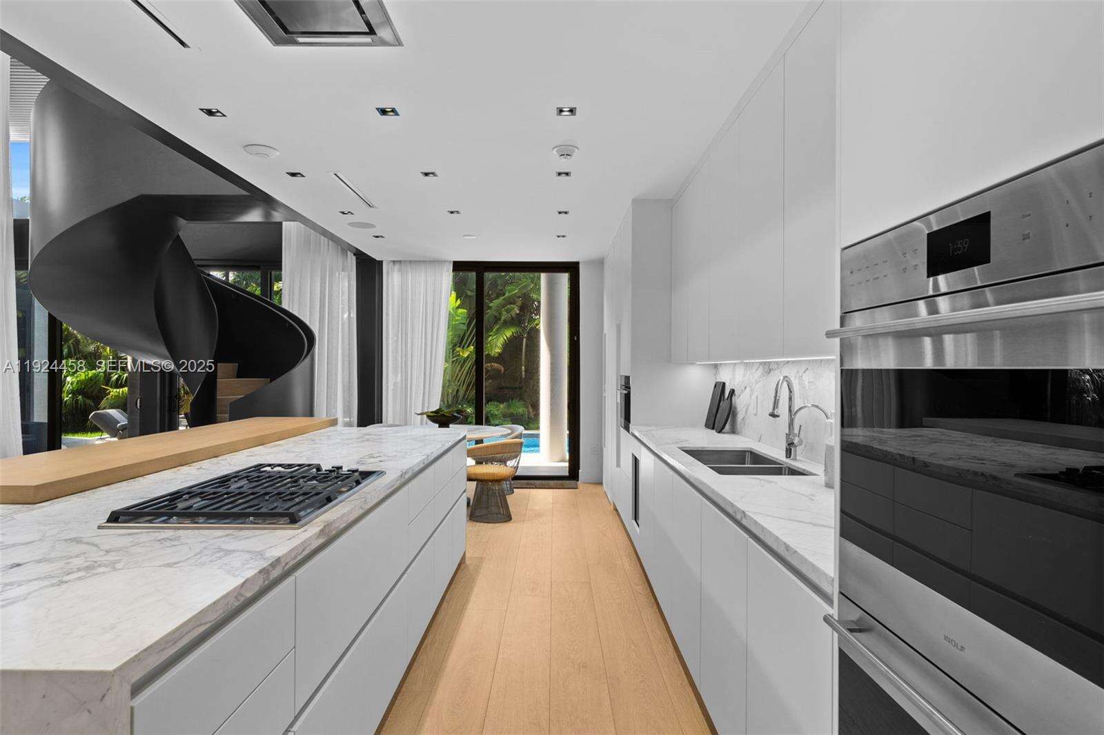 Discover this one-story modern masterpiece in the prestigious guard-gated community of Golden Beach. Set on an oversized 14,645 SF lot, this newly constructed residence offers 6 bedrooms, 9 bathrooms, and 5,457 SF of refined living space. A dramatic 21-foot entry foyer, Italian kitchen, built-out closets, and white oak floors elevate the design. Expansive glass walls fill the home with natural light and connect to the lush outdoors. Enjoy a resort-style pool, summer kitchen, covered terrace, and al fresco dining. Additional features include smart-home technology, a full-house generator, high-end finishes and electric vehicle charging outlets in the garage. Located in one of South Florida’s most exclusive seaside neighborhoods, Golden Beach offers private beach access, tennis courts, playgrounds, and a close-knit sense of community.