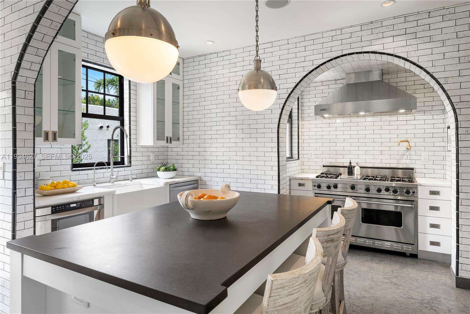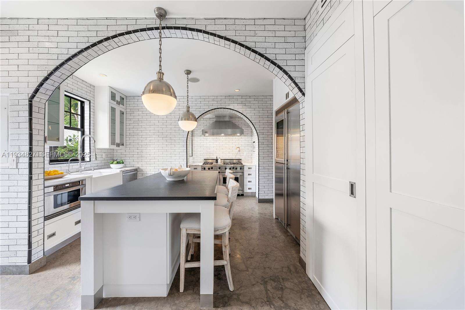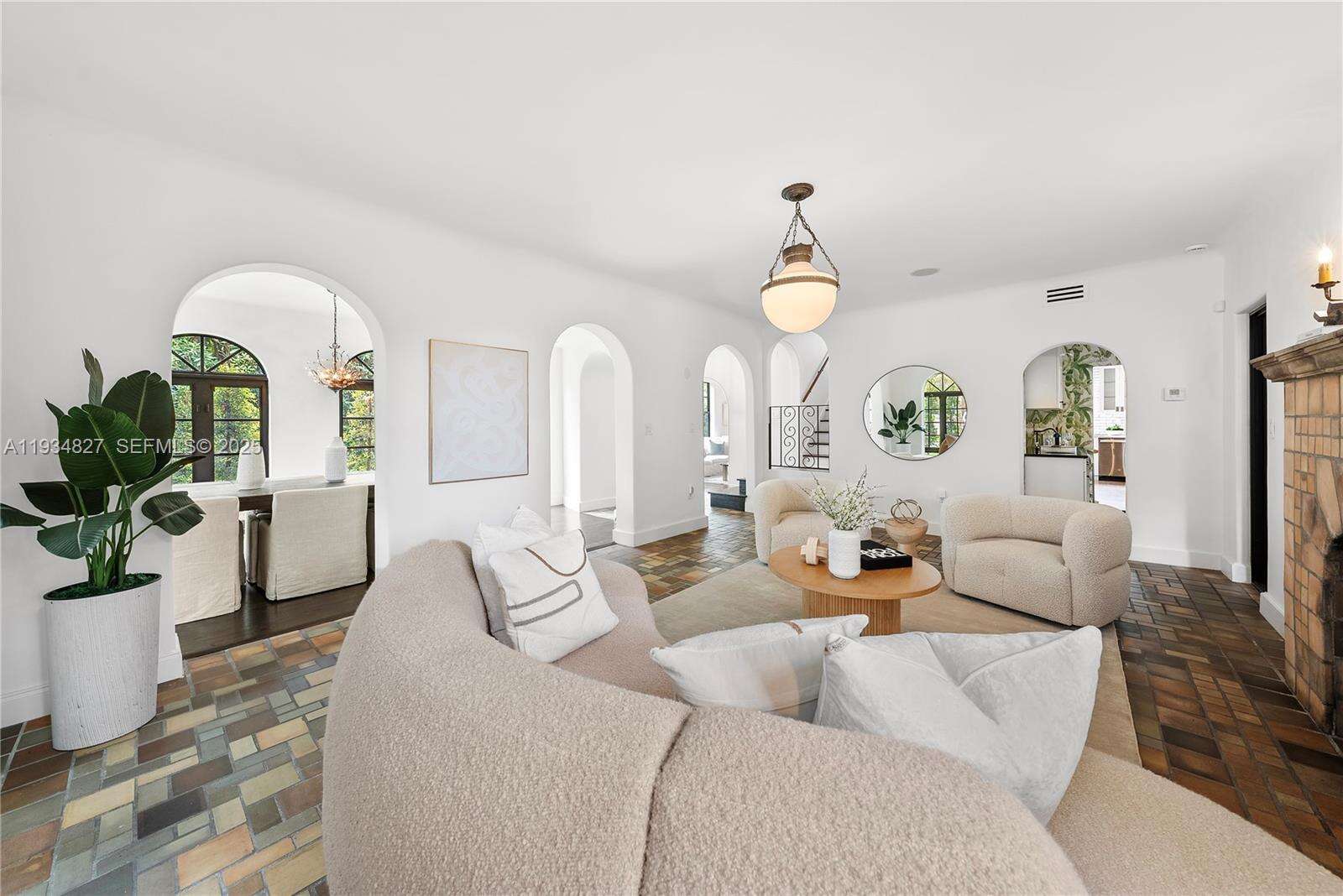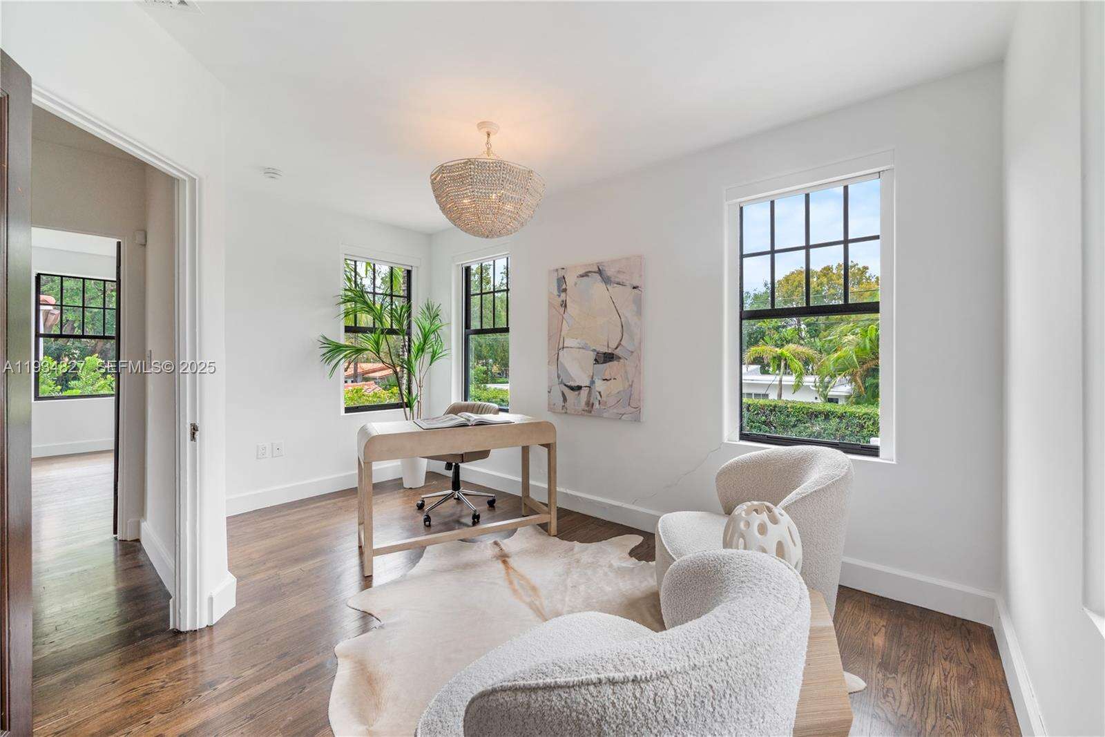 Located on one of the best streets in guard-gated Upper Morningside, this gorgeous 4BD/3.5BA, 3,209SF (total) ivy-adorned residence has been flawlessly renovated with exceptional charm & the highest quality fixtures & finishes. No detail was overlooked in this magnificent home, boasting separate family rooms, bar area, fireplace, Waterworks fixtures throughout, formal dining, upstairs laundry room, full impact glass & new roof. The chef’s gas kitchen features an eat-in island, custom storage & a professional appliance suite. The primary suite includes a stunning bedroom, a dressing area lined with custom-built closets & luxurious en-suite bath. Enjoy a fabulous outdoor patio complete with a pool, water features & a detached 1BD/1BA cabana with a 1-car garage + carport. NOT IN FLOOD ZONE!