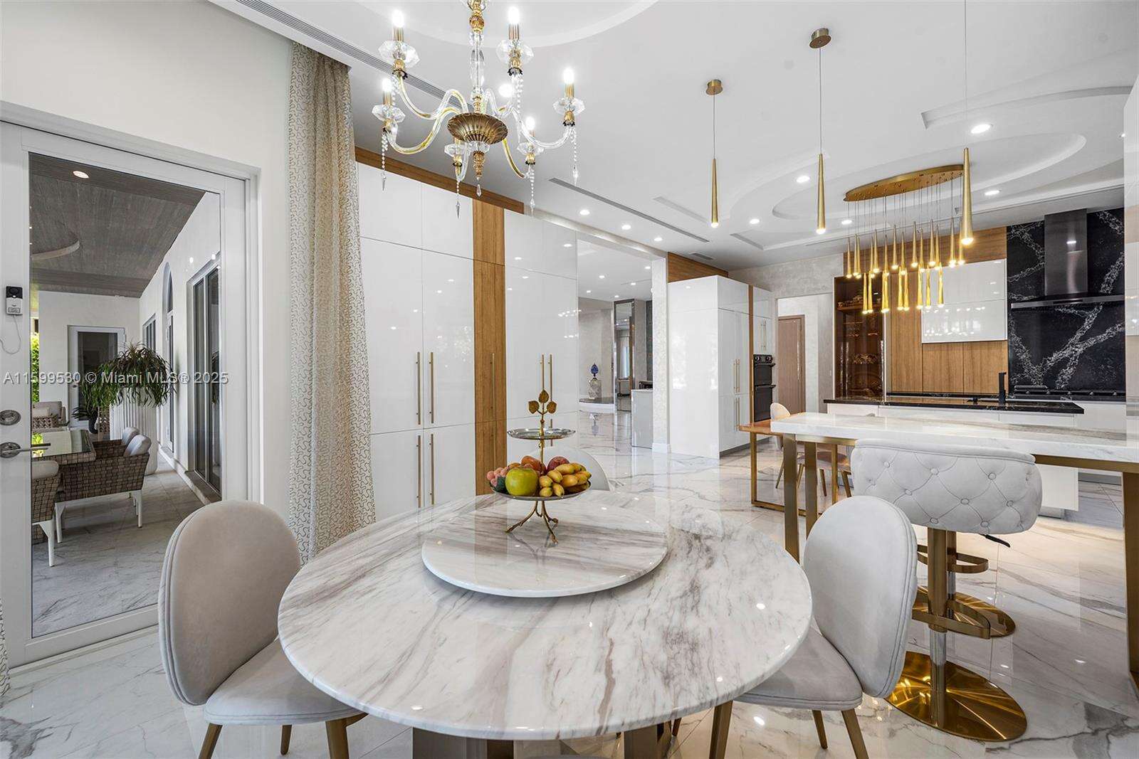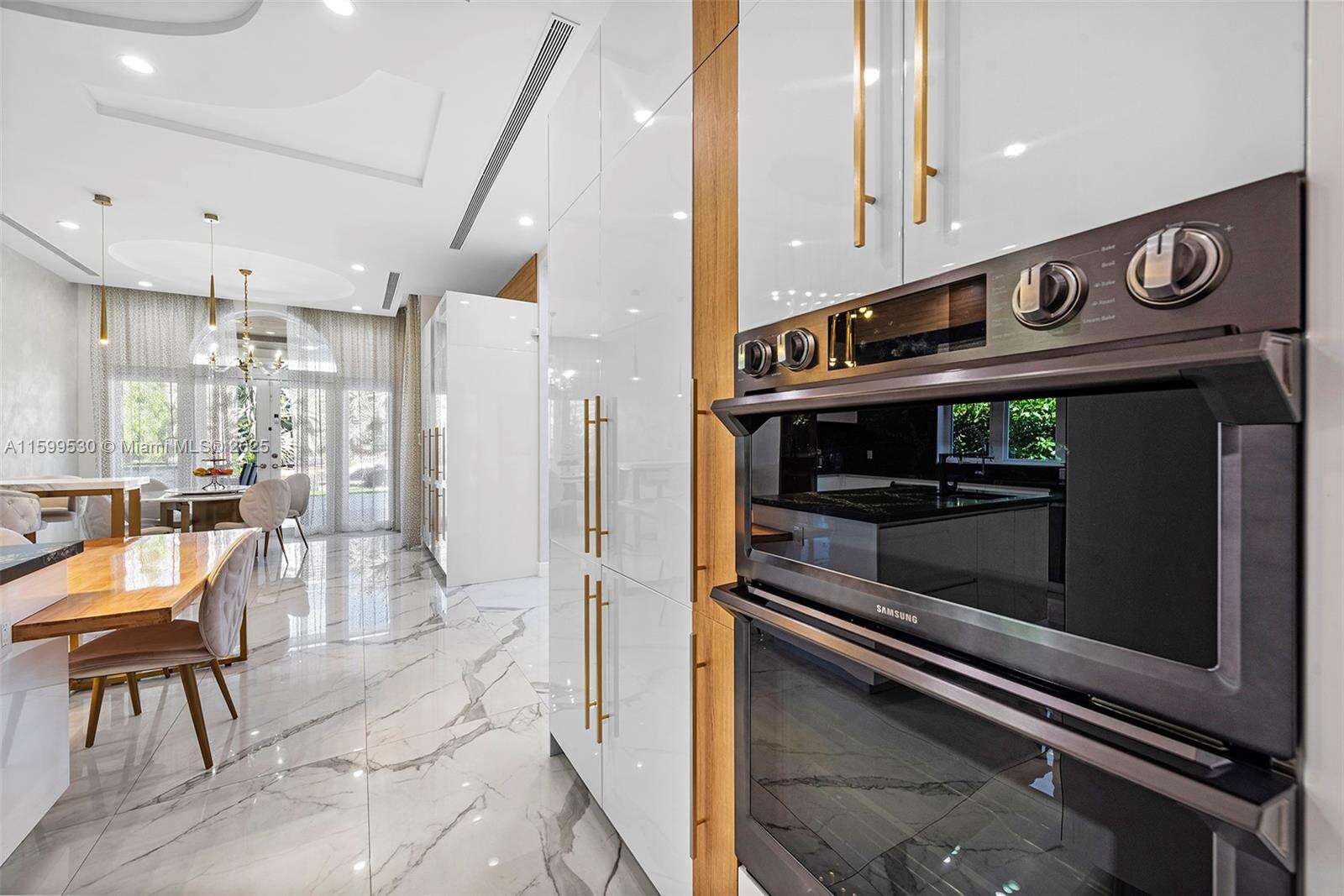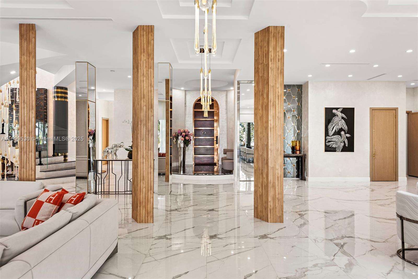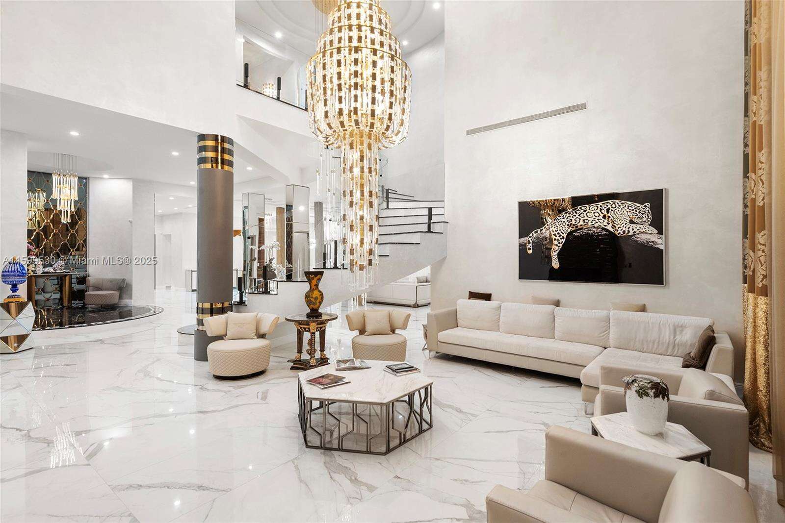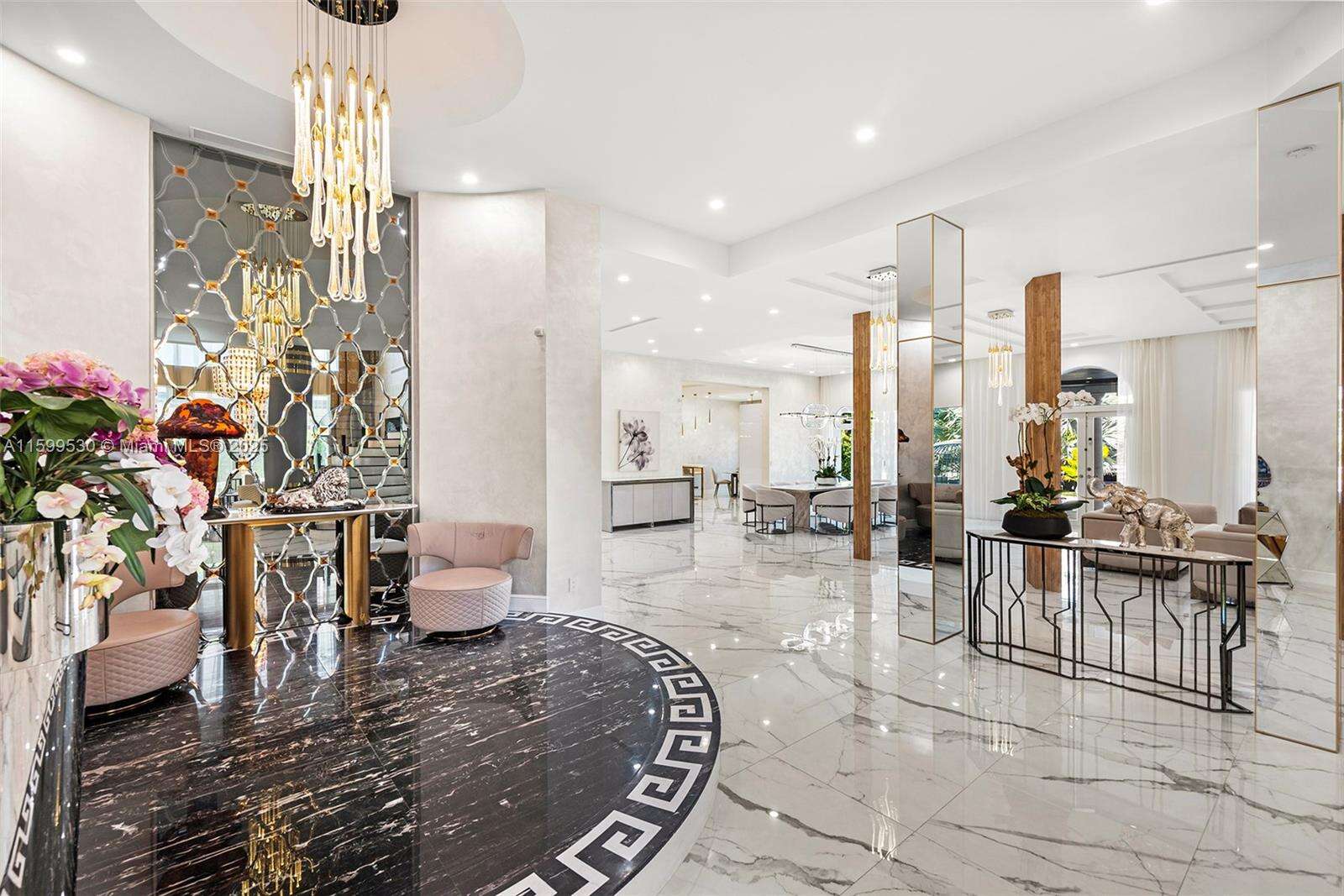 Welcome to a new-age castle in Golden Beach, a newly built custom waterfront masterpiece. This home boasts massive ceilings and a well-thought-out design with handpicked European materials and finishes. Enjoy 100 feet of private water frontage, no fixed bridges, and easy ocean access. This smart home includes an extra generator and is an entertainer's dream with open spaces featuring 13-foot ceilings, a chef's kitchen, home theater, game room, living room fireplace, built-in patio barbecue, and custom saltwater pool with jacuzzi. The primary bedroom offers a balcony, dual walk-in closets and bathrooms, and an office space. Guest bedrooms feature walk-in closets, balconies, and en-suite bathrooms. Fully furnished with Fendi, Bentley, and Visionnaire furniture.