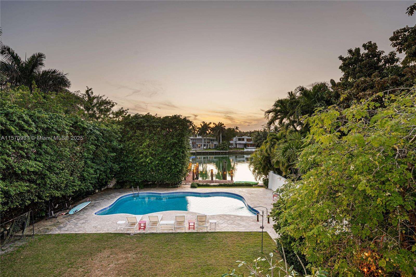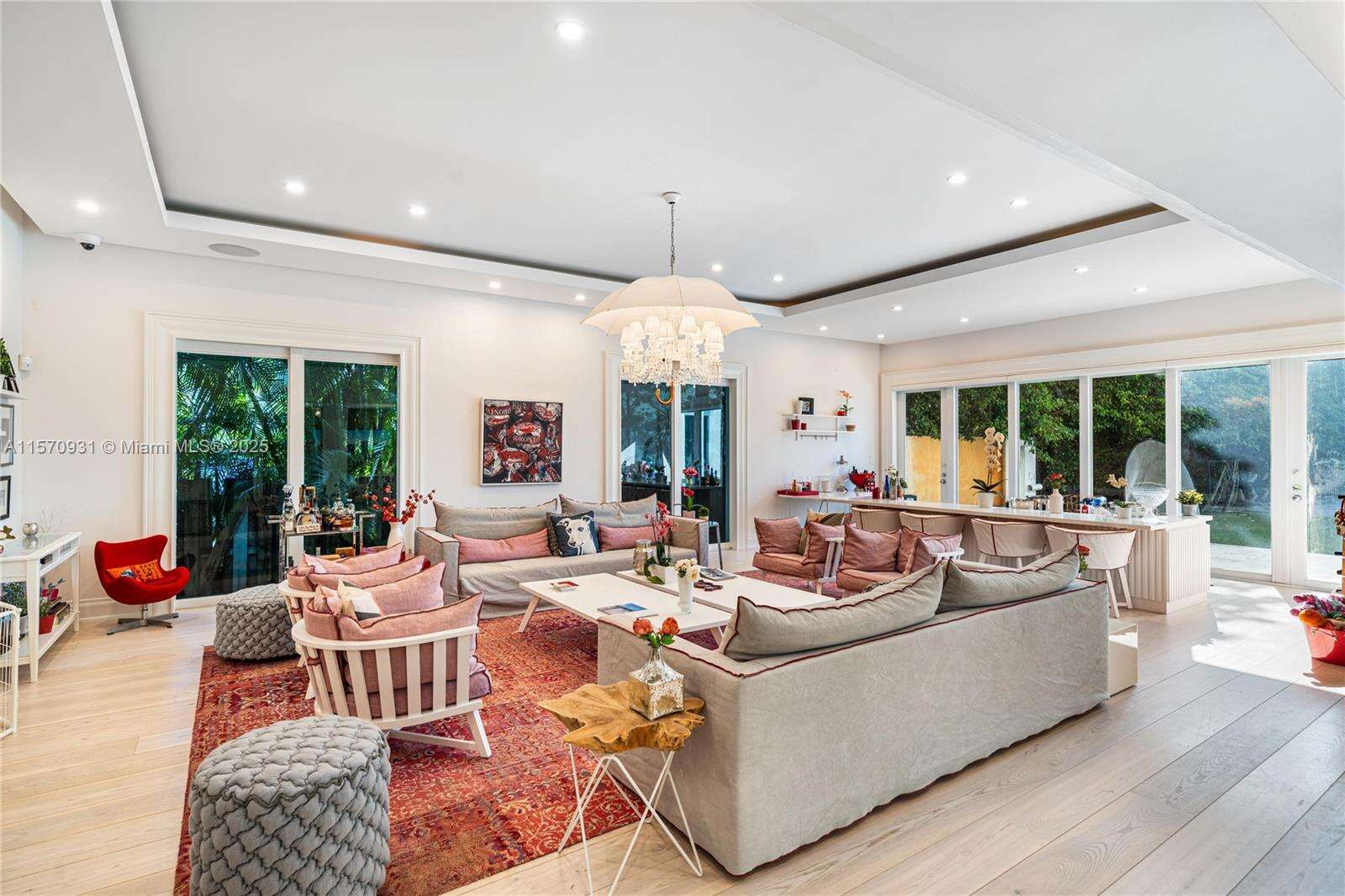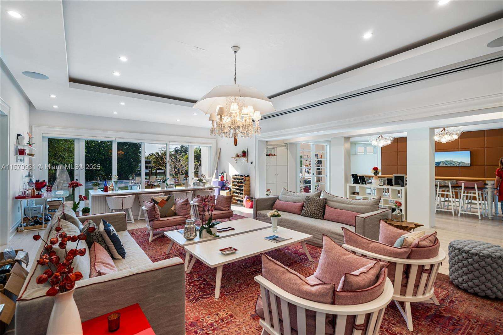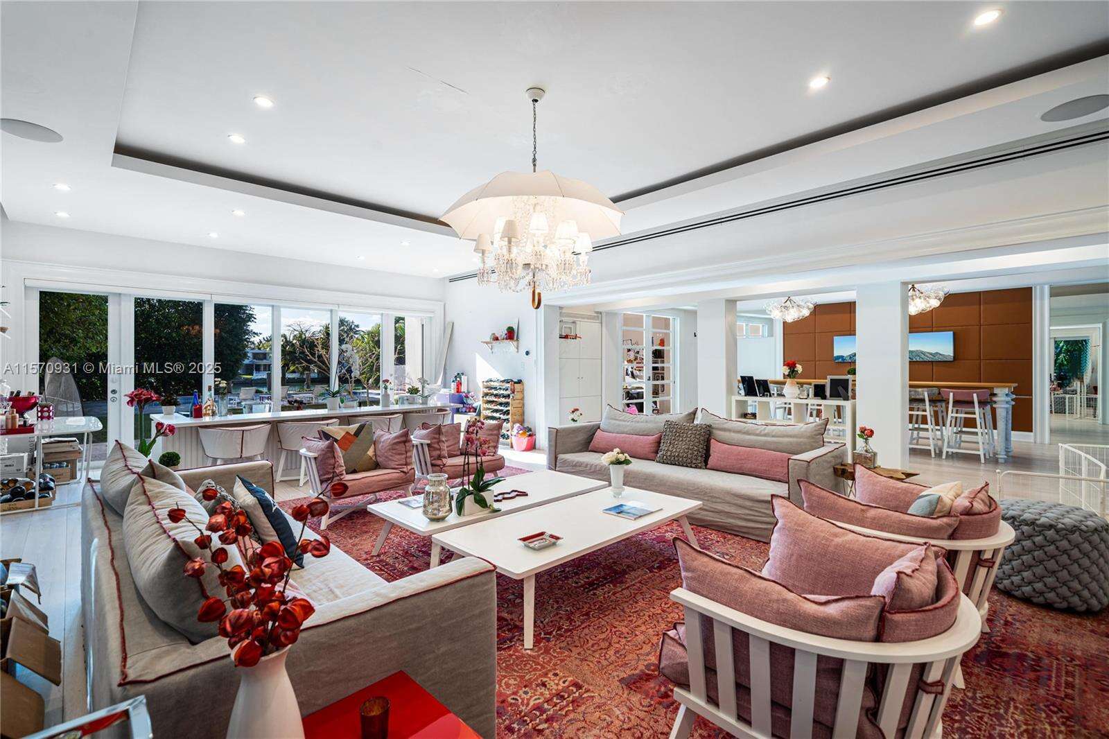 Gorgeous contemporary masterpiece nestled on this expansive 16,200 SF lot within the prestigious and guarded enclave Allison Island in Miami Beach. This Deco waterfront epitomizes perfection in every way. Completely renovated w/modern floor plan, perfect for entertaining. 6,200 sq, 7 bedrooms 5.5 bth + add'l bed/off/gym & 2 car gar. is move-in ready.Top-line Appliances & finishes with stunning water views, beautiful oversized pool w/gls tiles & LED lighting. 45 KW gas gen. w/auto transfer switch & powers entire home. Stunning SUNSET WATERVIEWS.