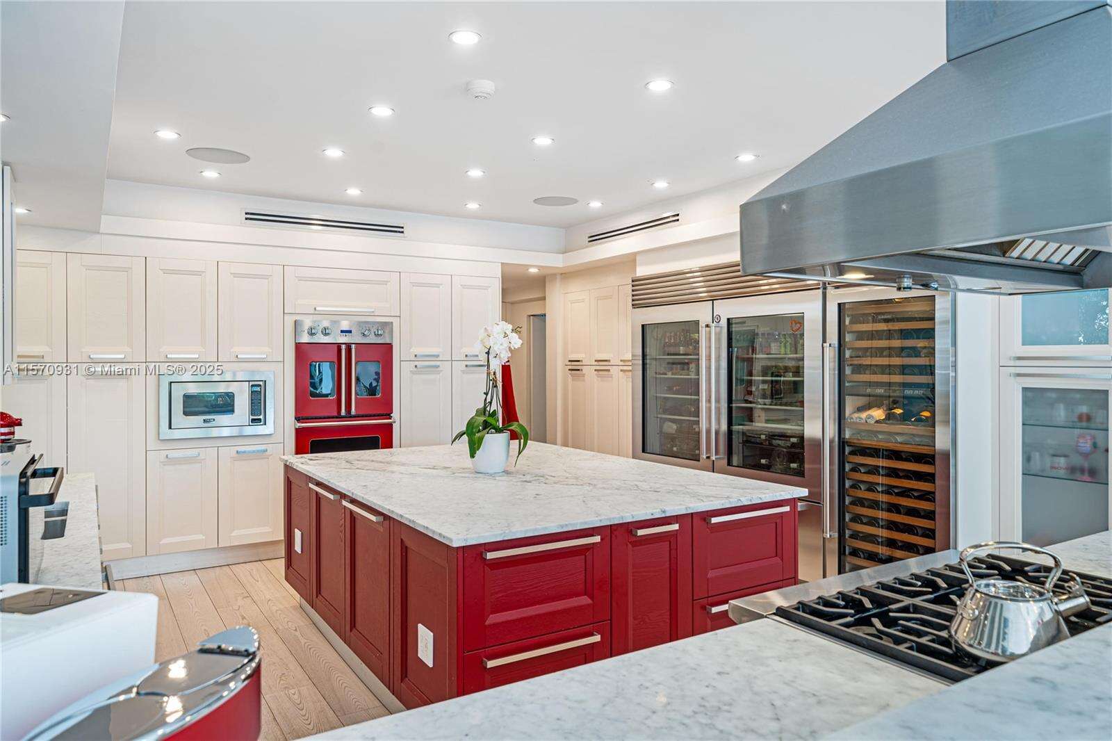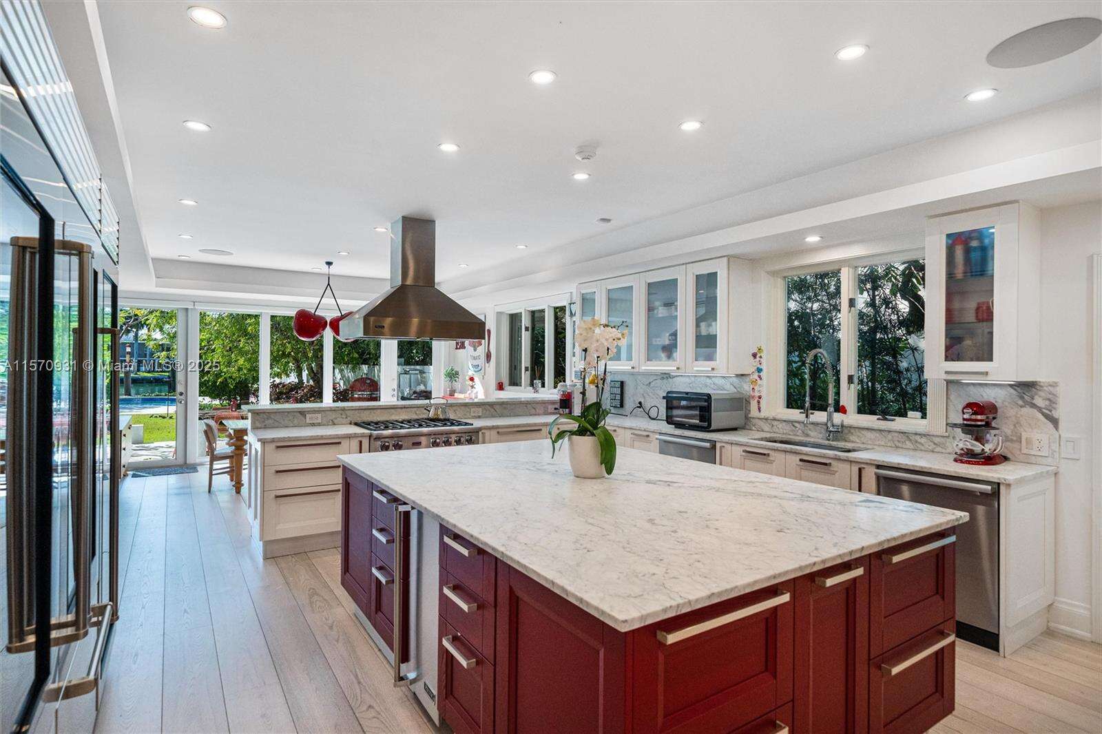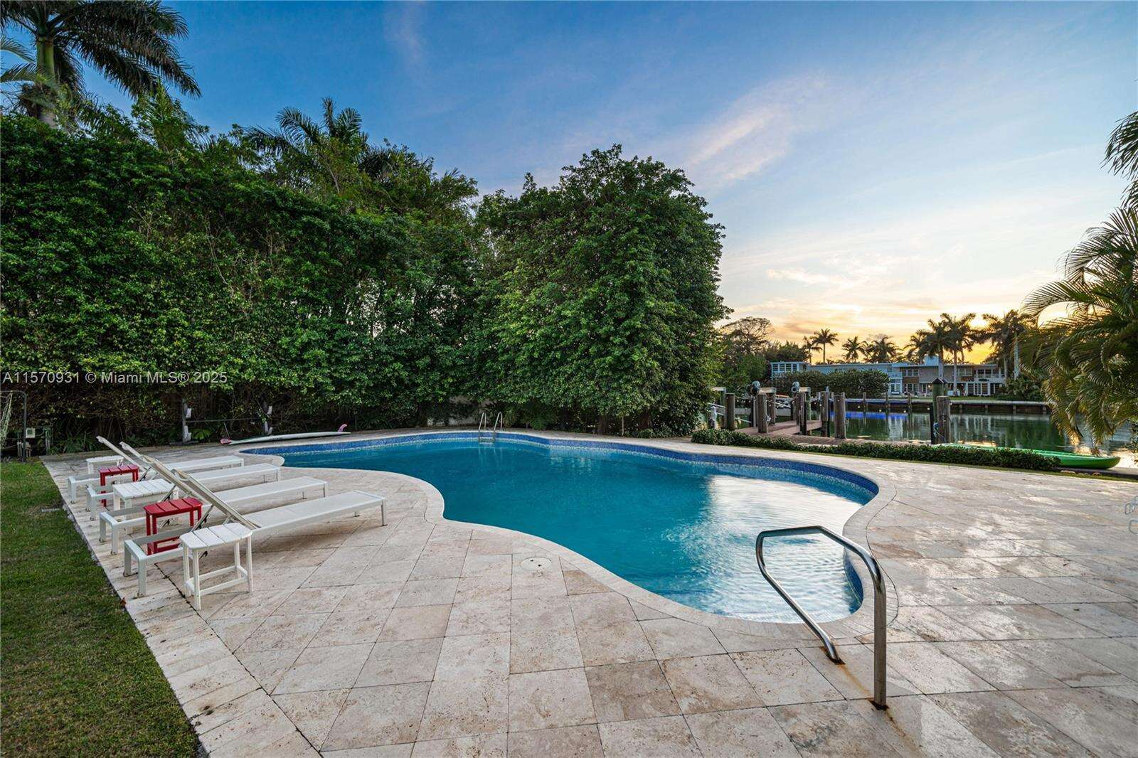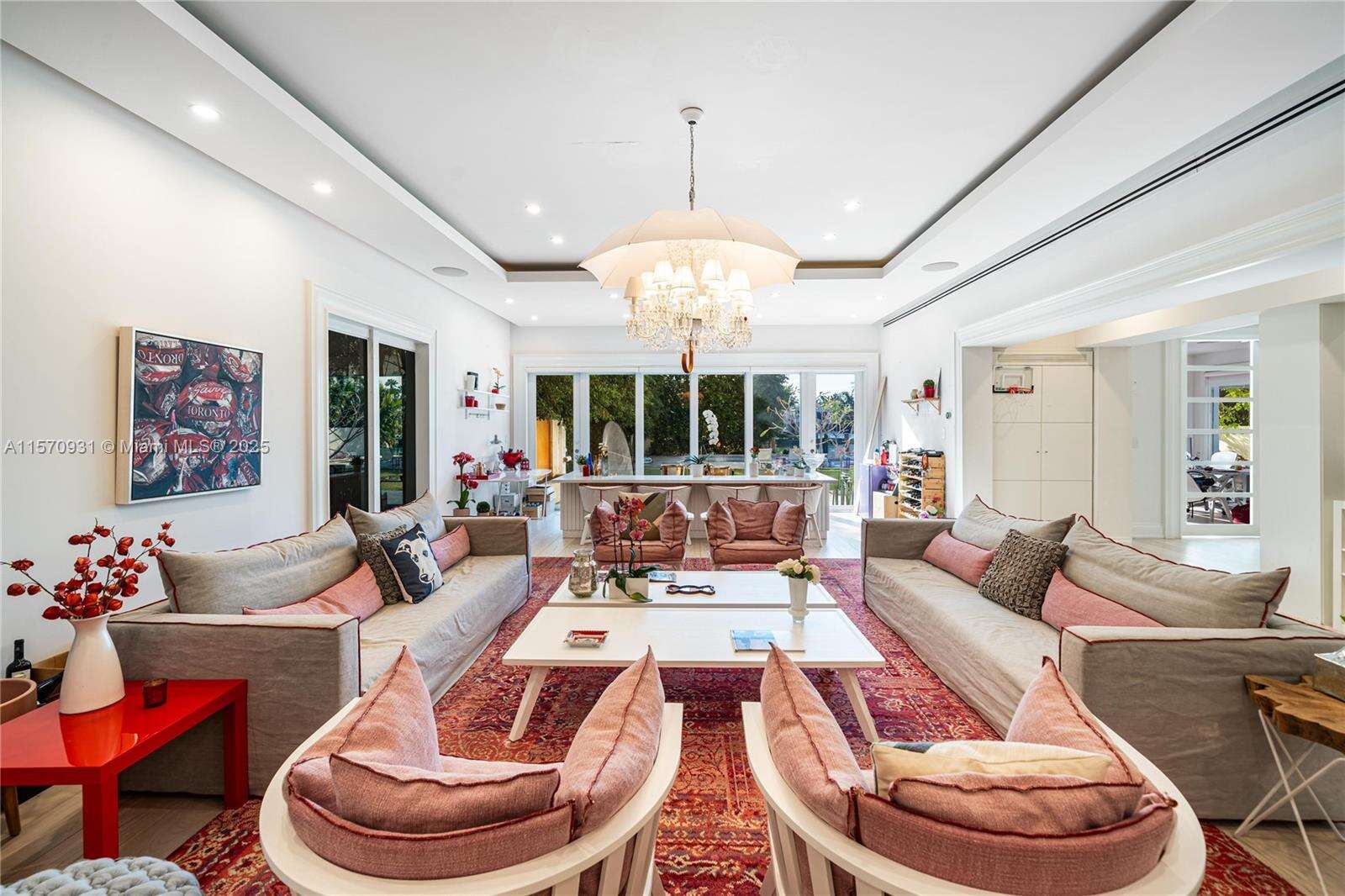 Gorgeous contemporary masterpiece nestled on this expansive 16,200 SF lot within the prestigious and guarded enclave Allison Island in Miami Beach. This Deco waterfront epitomizes perfection in every way. Completely renovated w/modern floor plan, perfect for entertaining. 6,200 sq, 7 bedrooms 5.5 bth + add'l bed/off/gym & 2 car gar. is move-in ready.Top-line Appliances & finishes with stunning water views, beautiful oversized pool w/gls tiles & LED lighting. 45 KW gas gen. w/auto transfer switch & powers entire home. Stunning SUNSET WATERVIEWS.
