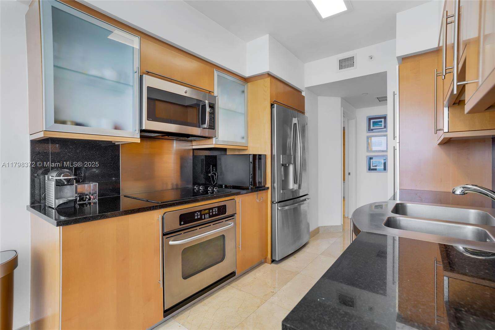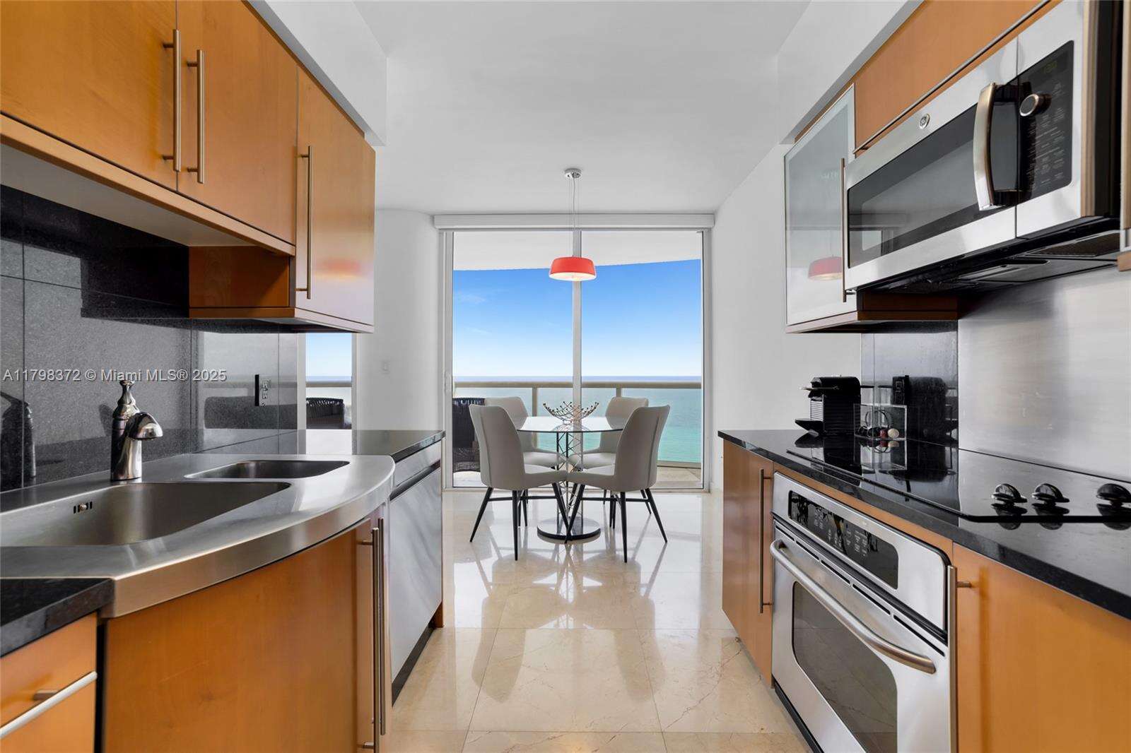 Stunning oceanfront condo rarely available and fully remodeled to perfection. This 2 bed, 2 bath residence offers breathtaking views, a fantastic split floor plan, and motorized blackout shades throughout. Enjoy built-in walk-in closets, dual sinks, a separate tub and shower in the primary suite, and an in-unit washer/dryer. The building has just unveiled its beautifully renovated pool and boasts resort-style amenities: beach service, valet, tennis courts, putting green, pickleball, sauna, state-of-the-art gym, billiards, and a striking lobby with attendant. Seamless access throughout with facial recognition security. A true coastal gem offering luxury, space, and comfort.