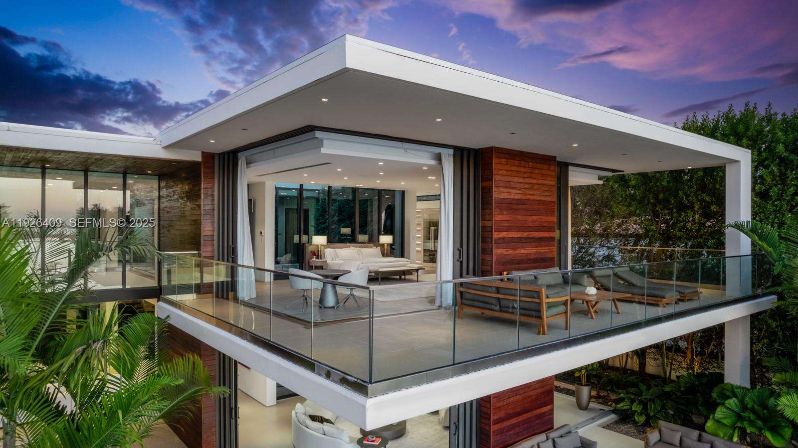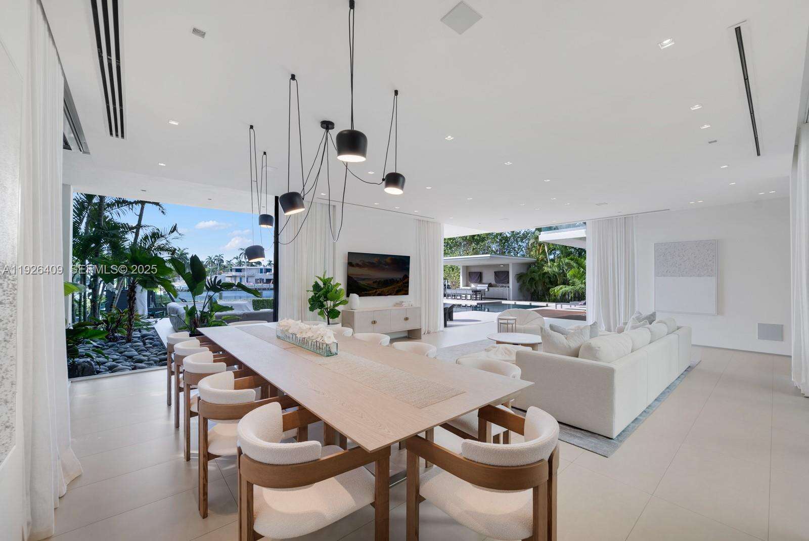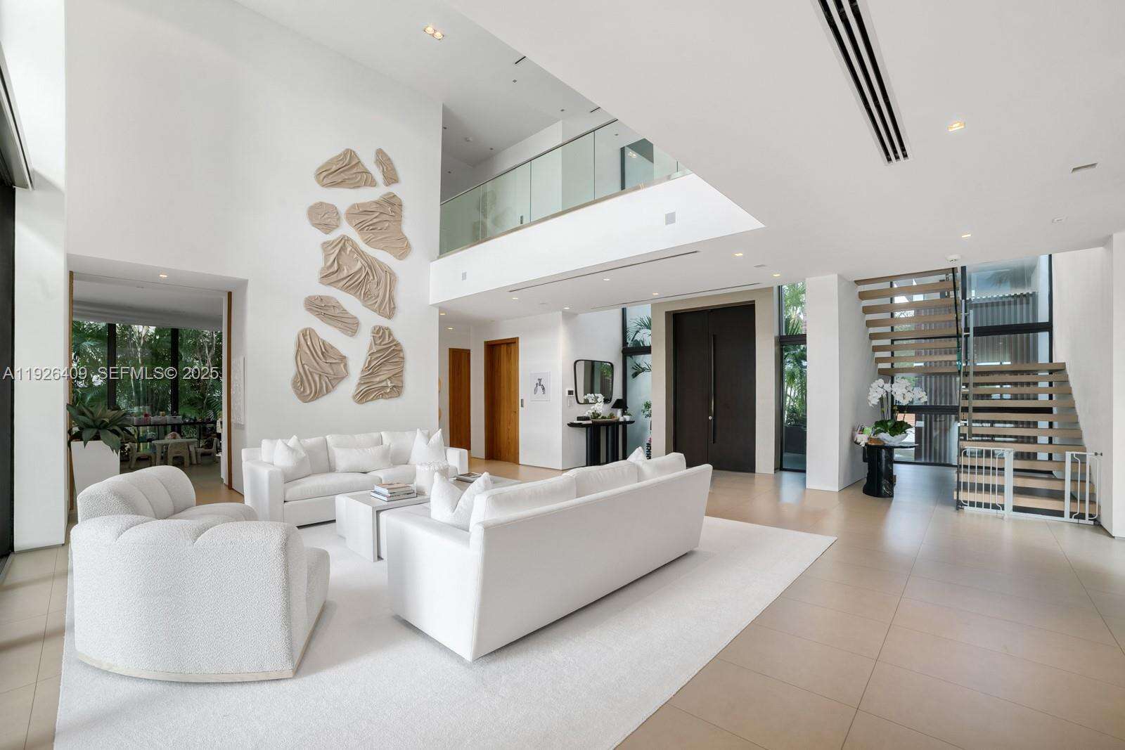 Tropical modern masterpiece on exclusive Allison Island, designed by acclaimed architecture & design firm Choeff Levy Fischman. The impressive residence spans 10,632 SF of interior space featuring 7 bedrooms, 9 full baths, and 2 half baths, a media room, wine cellar, and multiple living areas ideal for entertaining. The expansive primary suite includes dual spa-inspired baths, walk-in closets, a sitting area, floor-to-ceiling windows, and a private terrace offering stunning sunset views. Additional features include dramatic 22-foot ceilings, two family rooms, and a junior suite with a private terrace. The chef’s kitchen showcases custom Italian cabinetry with Sub-Zero and Wolf appliances, along with a separate staff/service kitchen and quarters. Situated on a 23,760 SF lot with 110 feet of water frontage, the home enjoys direct waterfront access and exceptional privacy. Allison Island offers one of Miami Beach’s most exclusive guard-gated communities, providing 24-hour security within an intimate luxury enclave.