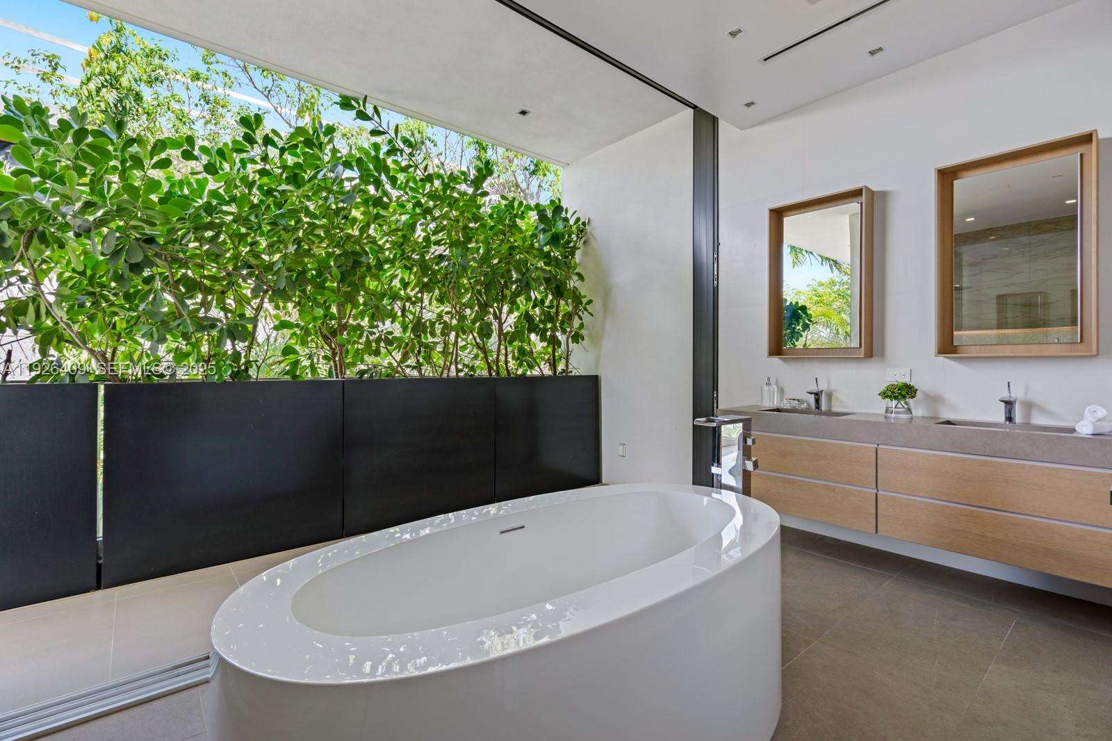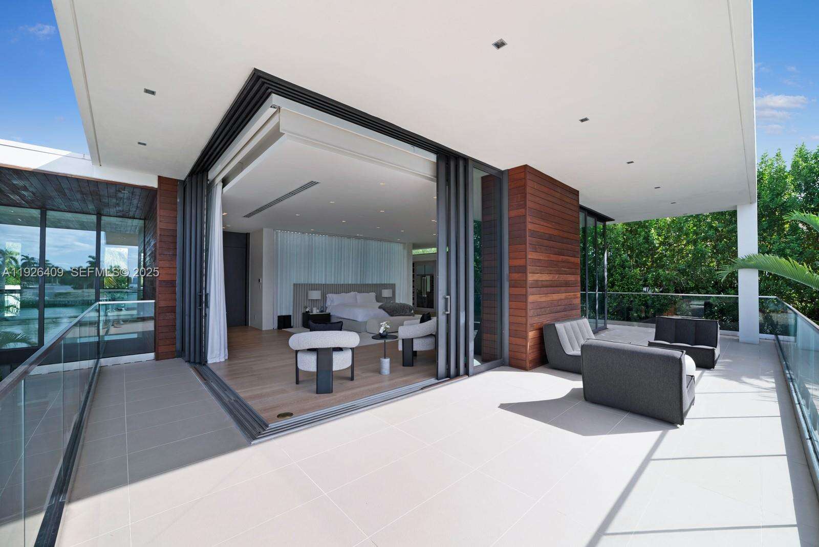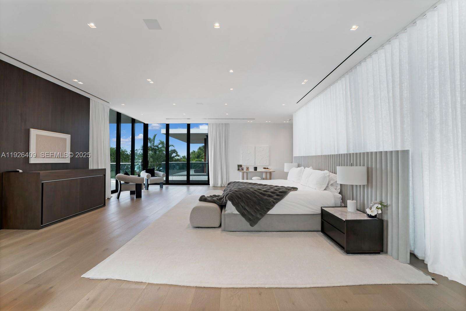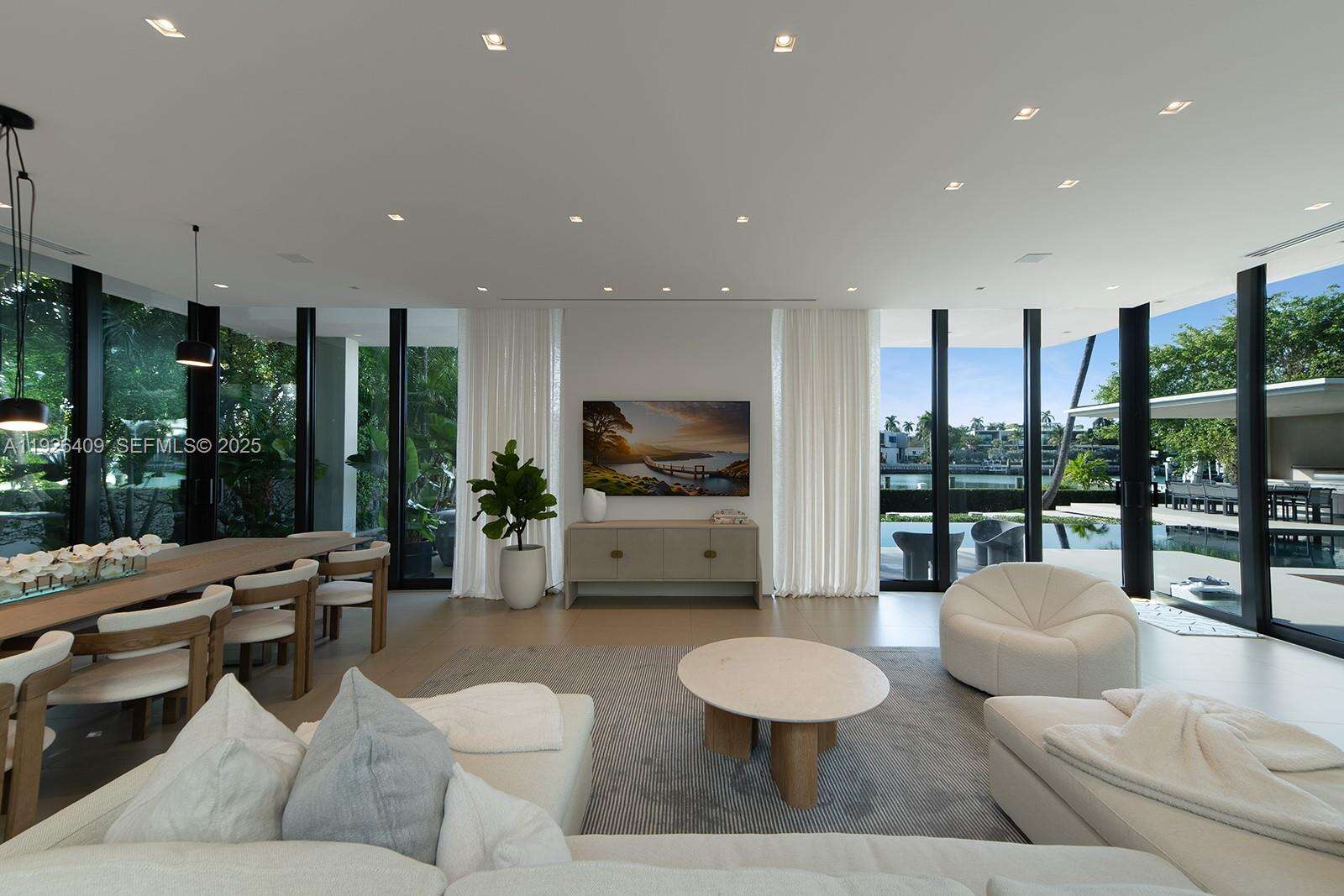 Tropical modern masterpiece on exclusive Allison Island, designed by acclaimed architecture & design firm Choeff Levy Fischman. The impressive residence spans 10,632 SF of interior space featuring 7 bedrooms, 9 full baths, and 2 half baths, a media room, wine cellar, and multiple living areas ideal for entertaining. The expansive primary suite includes dual spa-inspired baths, walk-in closets, a sitting area, floor-to-ceiling windows, and a private terrace offering stunning sunset views. Additional features include dramatic 22-foot ceilings, two family rooms, and a junior suite with a private terrace. The chef’s kitchen showcases custom Italian cabinetry with Sub-Zero and Wolf appliances, along with a separate staff/service kitchen and quarters. Situated on a 23,760 SF lot with 110 feet of water frontage, the home enjoys direct waterfront access and exceptional privacy. Allison Island offers one of Miami Beach’s most exclusive guard-gated communities, providing 24-hour security within an intimate luxury enclave.