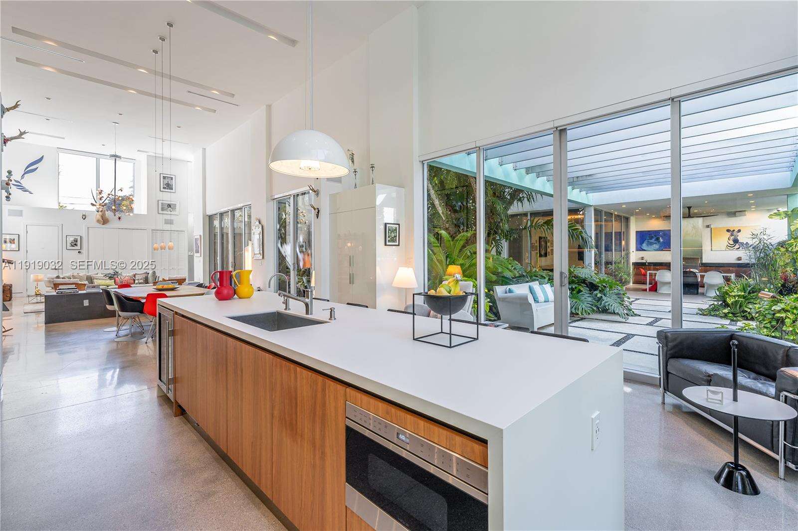A masterpiece of contemporary living designed by renowned architect Roney Mateu, this exceptional residence seamlessly blends modern interiors with lush tropical gardens on a 15,000+ SF corner lot. The main house offers 5 bedrooms and 4 1/2 baths, with soaring 20 ft ceilings and expansive glass walls that fill the home with natural light and create a gallery-like ambiance. Verdant landscaping surrounds the property, creating a true private oasis. The tranquil garden with sparkling pool, outdoor kitchen, and a private outdoor shower provide an effortless connection to nature and the perfect setting for Miami’s year-round indoor–outdoor lifestyle. At the heart of the home is a sleek MiaCucina kitchen equipped with premium Wolf and Sub-Zero appliances, ideal for cooking, hosting, and modern family living. A rare highlight is the detached guest house, featuring its own kitchen, full bath, and a 2-car garage below - an ideal space for an artist’s studio, home office, gallery, or guest retreat. Perfectly situated in one of Miami’s most desirable family neighborhoods, this residence is within walking distance to Gulliver Schools and minutes from other top academies, parks, and lifestyle amenities.