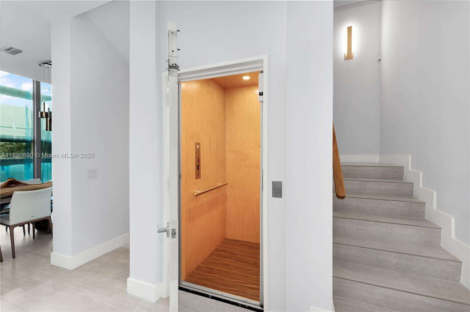 | Interior Features Built-in Features Closet Cabinetry Elevator Entrance Foyer Pantry Volume Ceilings Walk-In Closet(s) Den/Library/Office Storage Utility Room/Laundry |