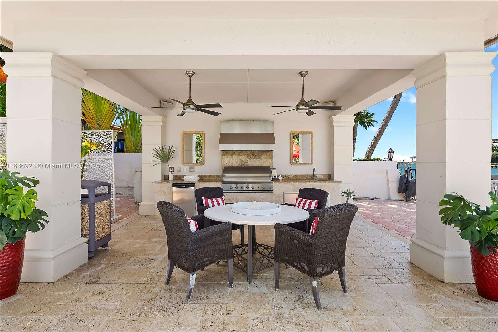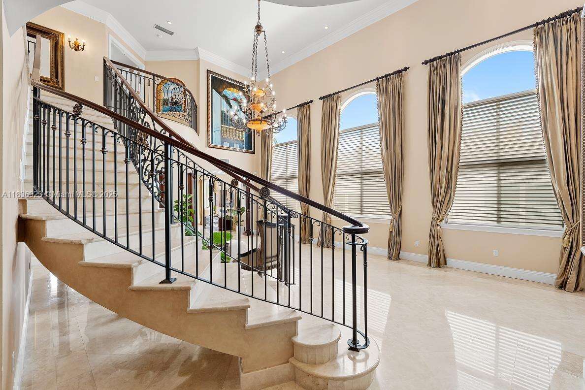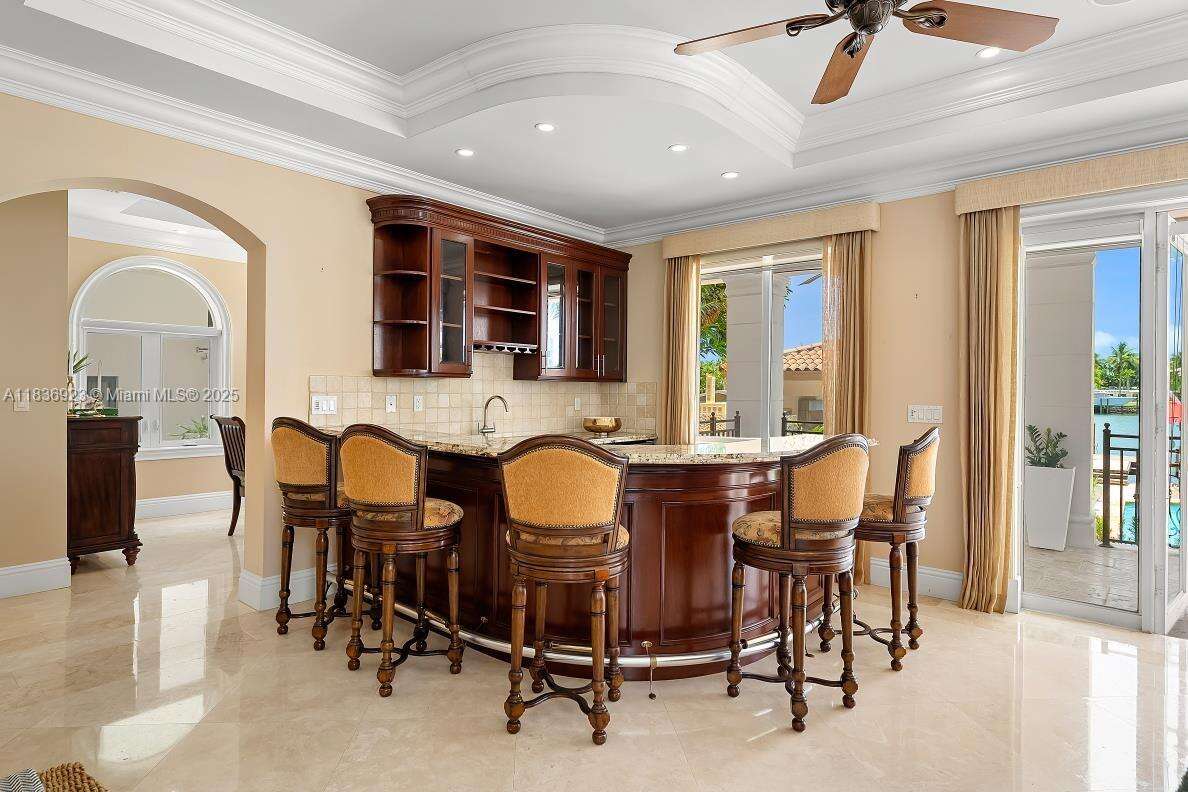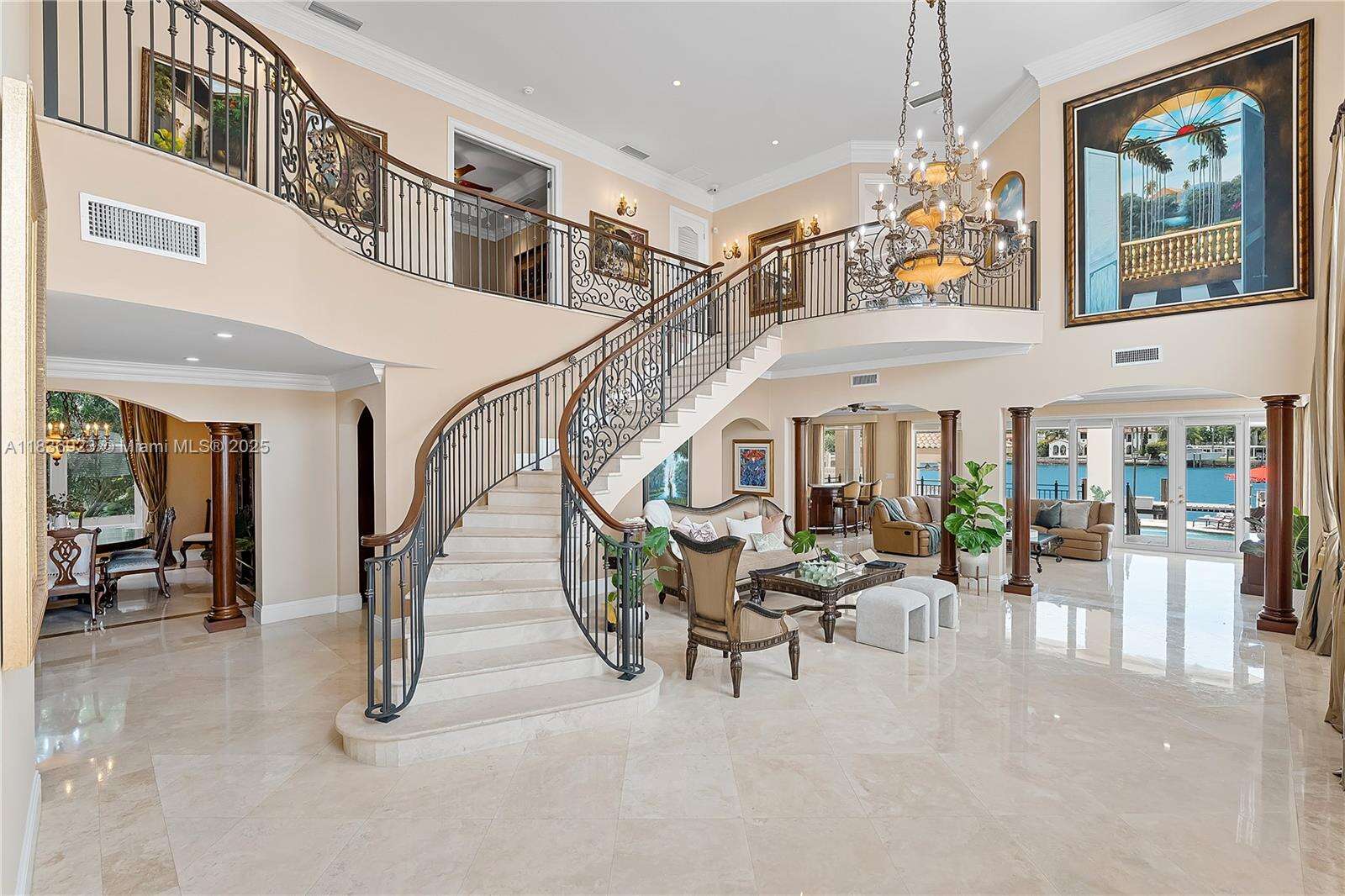Nestled on prestigious Hibiscus Island, this 6 beds 5 baths Mediterranean waterfront home captures timeless elegance fused with resort-style living. Step through the grand entryway into soaring high ceilings, a sweeping staircase, exceptional views of the water and your private oasis. Architectural details exude charm of a European seaside villa with arched and stone accents and spacious layout designed for entertaining and comfort. Features include a chef’s kitchen, grand primary suite with 2 balconies, elevator, summer kitchen and lush landscaping for privacy. Perfectly positioned to capture expansive views of Star Island, Biscayne Bay and Miami skyline, the home sits on 60 feet of prime waterfront and includes a private dock.
