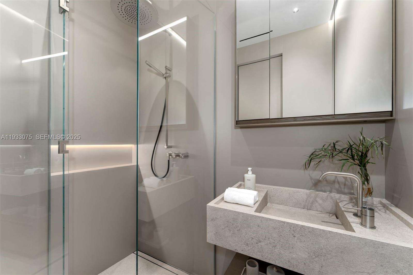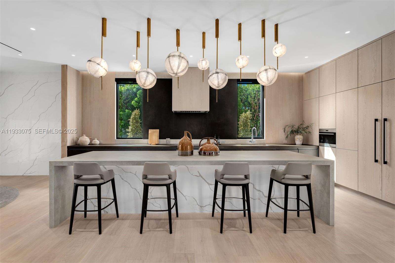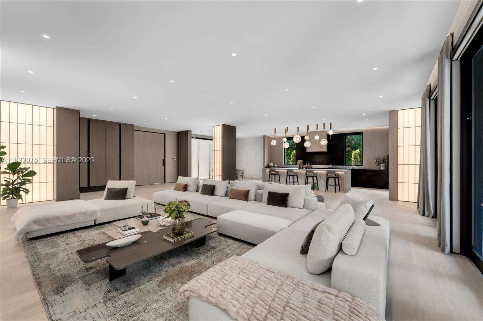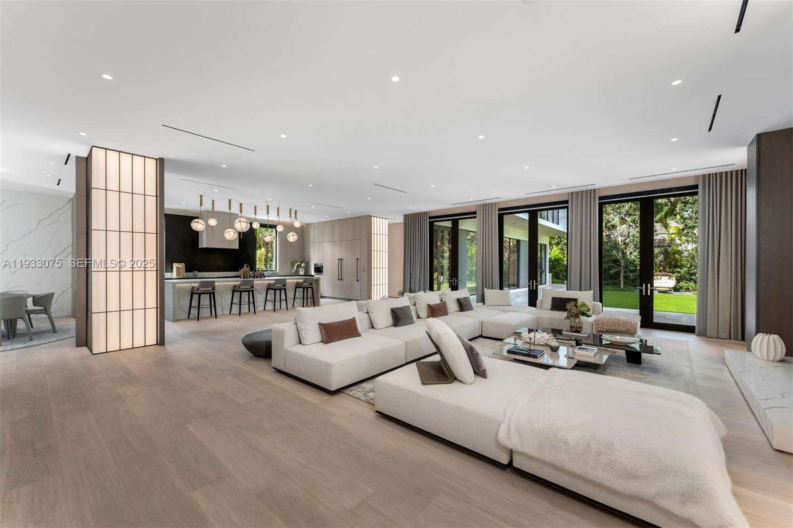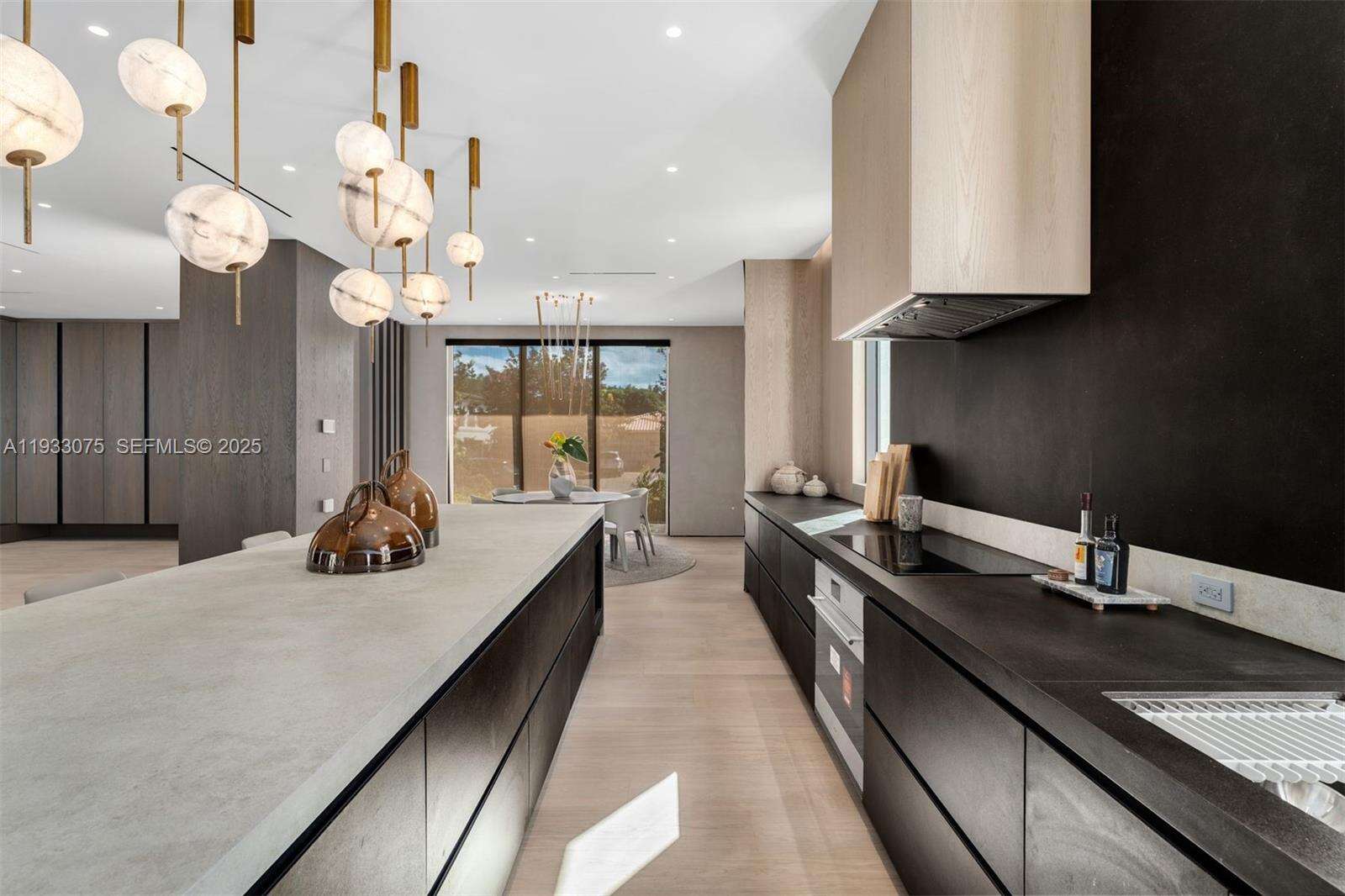 Welcome to a fully re-envisioned Bay Point masterpiece, designed by a world-renowned architect with uncompromising attention to detail. From the moment you arrive, the newly designed driveway frames the home in marble, setting the tone for what lies within. Every surface has been thoughtfully curated—from the fully custom kitchen with porcelain countertops to the layered stone and textural elements that define both the interior and exterior. The home is designed to feel seamless at every touchpoint, creating a refined, cohesive experience throughout. The well-crafted floor plan features European wood flooring, 10-foot ceilings, and a natural separation of five bedrooms and five-and-a-half baths. The entire second level is dedicated to a grand 1,000-square-foot primary suite with a custom office, dual closets, and a luxurious primary bath. The outdoor living experience is equally impressive, featuring new landscaping, an outdoor kitchen, a saltwater pool, and a sauna and cold plunge—creating a true longevity-focused retreat. Solar panels and a generator offer sustainable efficiency and added peace of mind. An exceptional opportunity to own a home where design, function, and lifestyle converge.