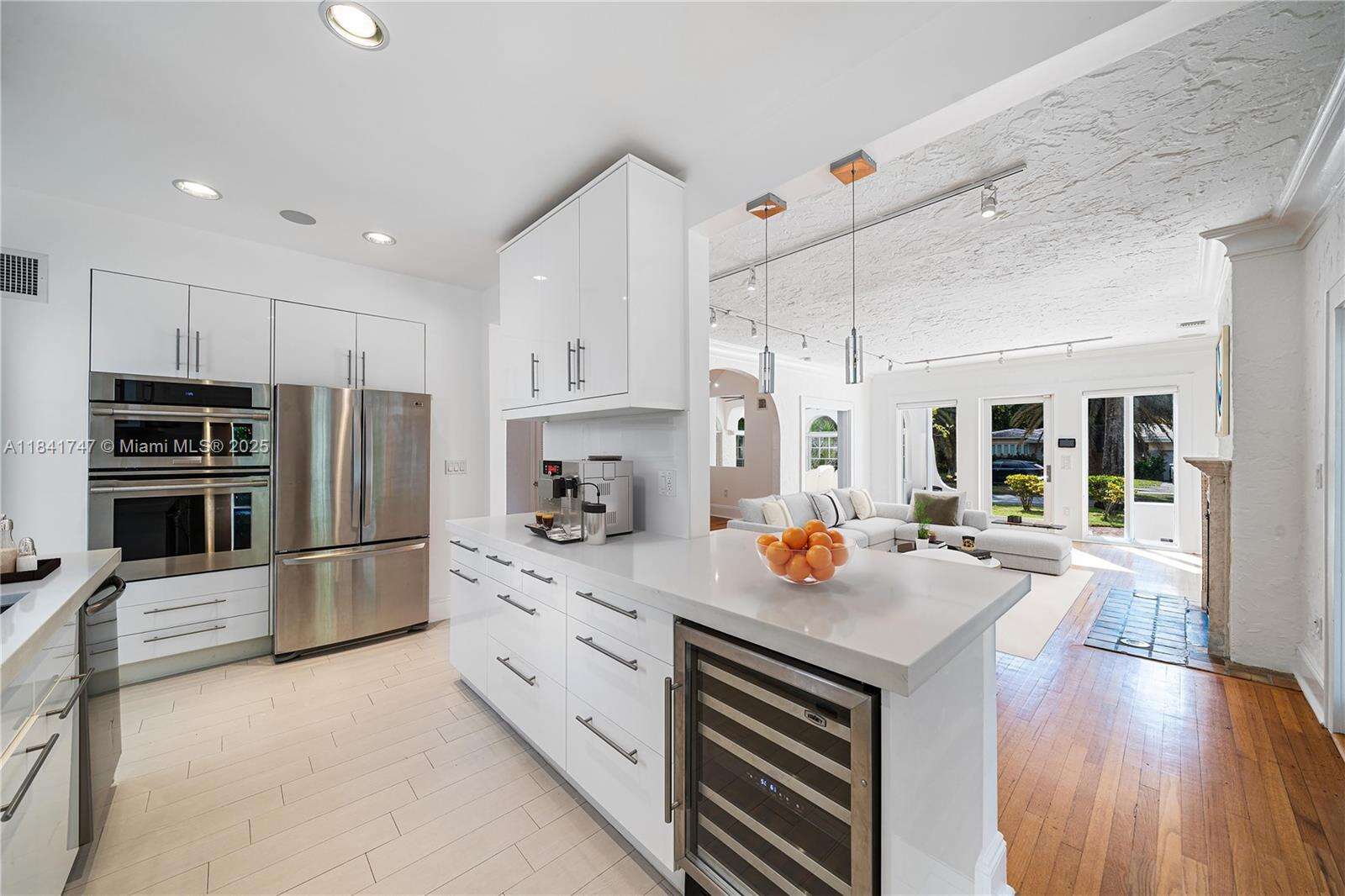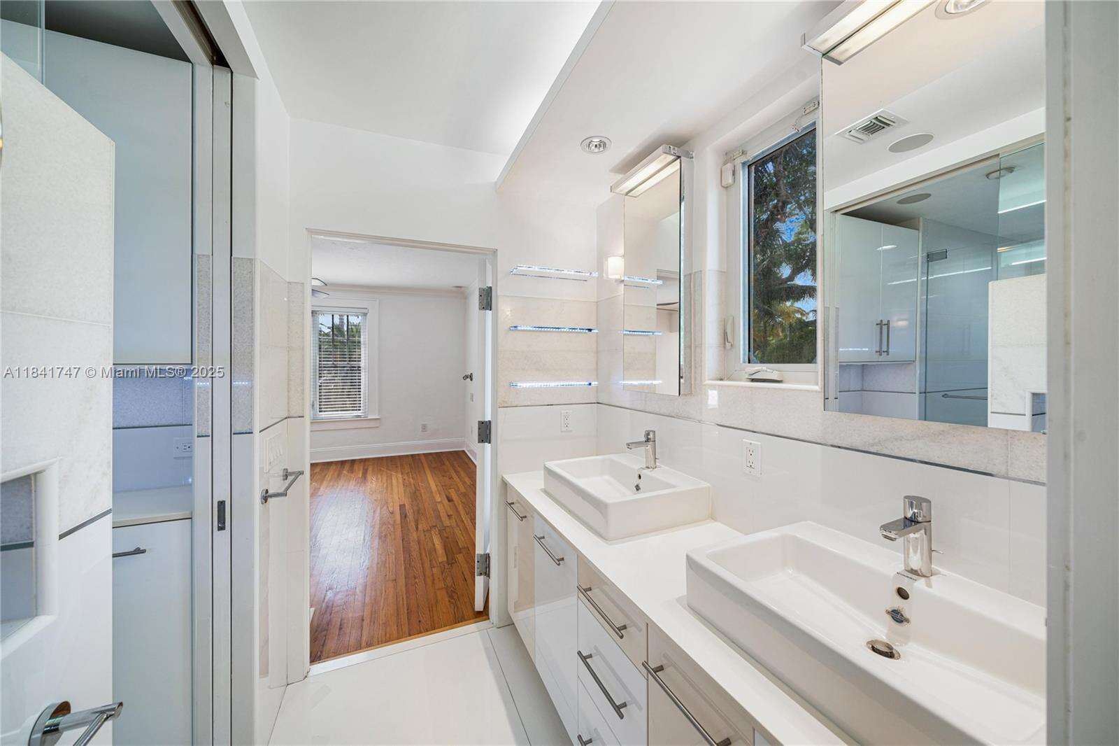 Grand residence in the heart of guard-gated Morningside, set on an oversized 10,038 SF lot just one block from the bay! This Mediterranean beauty was remodeled to perfection, offering 3 BD & 2.5 BA + 1/1 guest house. Boasting sophisticated interiors, a chic great room with fireplace, gleaming wood floors, a white & light eat-in kitchen with breakfast nook & wine fridge, & spacious bedrooms including the primary with sitting area & gorgeous bathrooms. Outside enjoy a covered patio, stunning pool, spa, outdoor shower, & summer kitchen. The guest house features a bedroom & bathroom, living room, kitchenette, ample storage, & central A/C. Perfect for extended family & overnight guests! Close to top schools: Cushman & Miami Country Day. 15 mins to MIA Airport!
