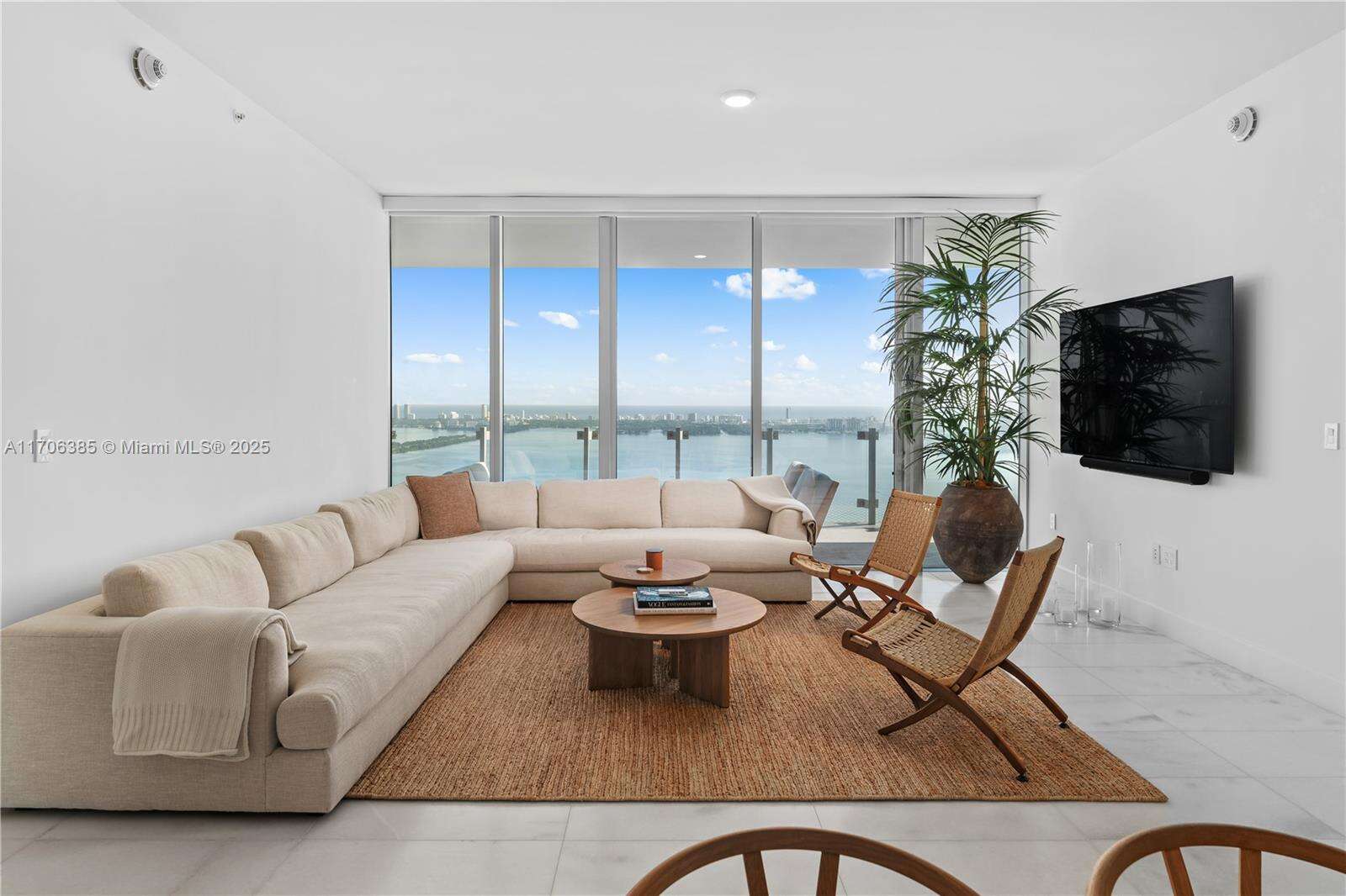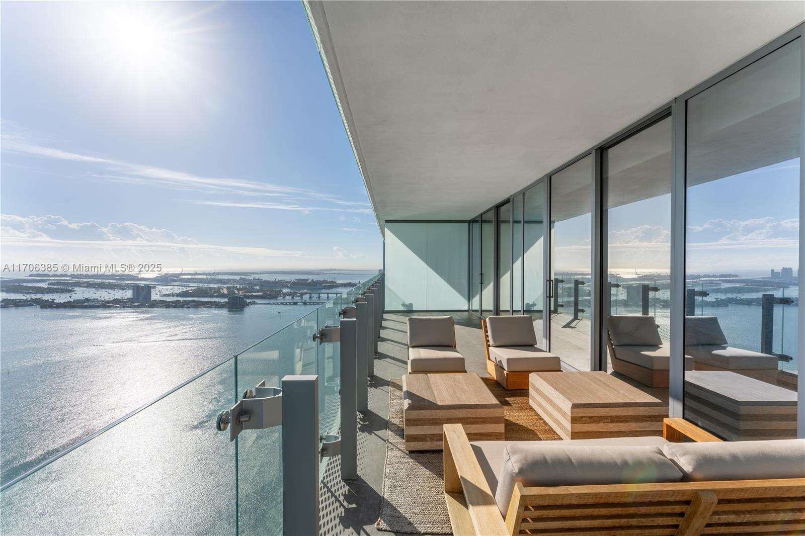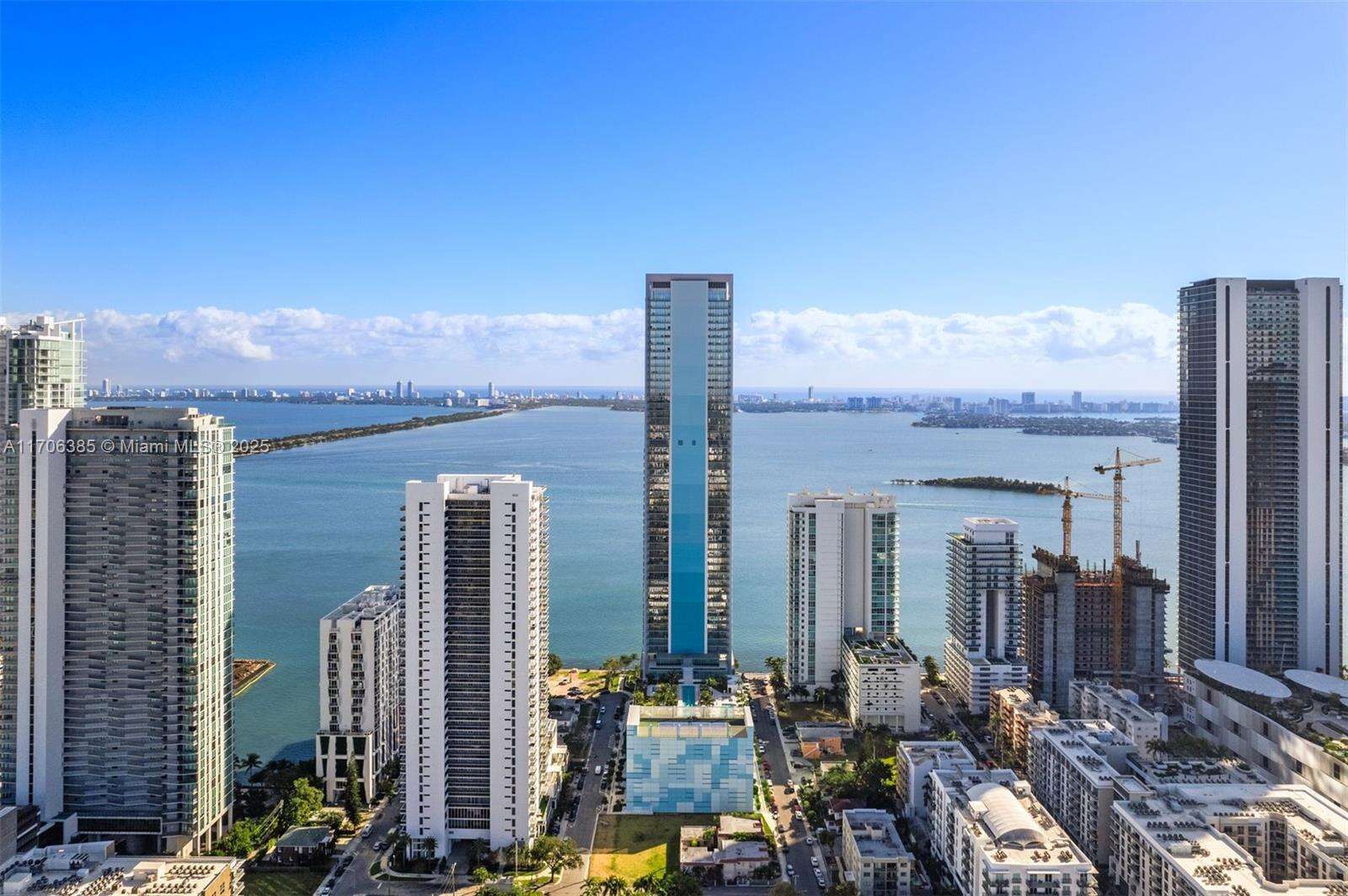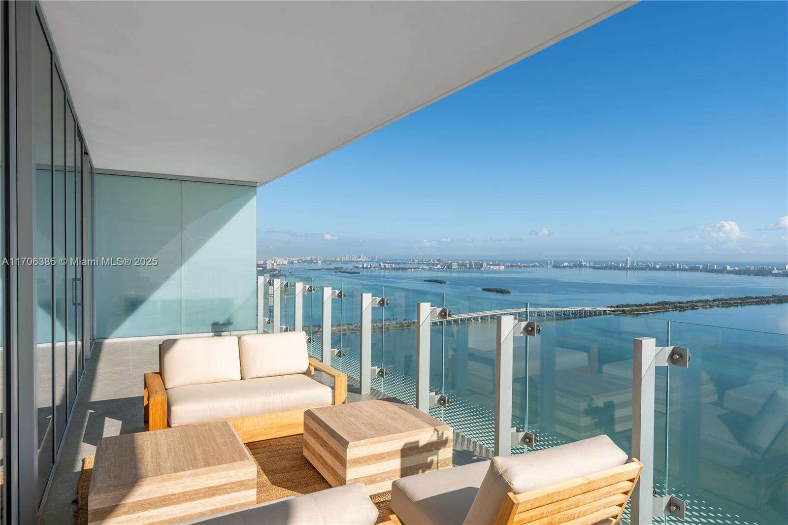 This exquisite 2-bed + Den, 3.5-bath residence offers nearly 2,500 sq. ft., with the den having a closet and full bath, easily convertible to a 3rd bedroom (see rendering—design by VD8 Studio). Enjoy stunning east-facing Biscayne Bay views from floor-to-ceiling windows and a spacious 500 sq. ft. balcony. Features include custom Italian cabinetry, premium appliances, motorized blinds, spa-like primary bath, and custom closet. Includes 2 garage spaces. World-class amenities: infinity pool, fitness center, spa, tennis, playroom, and theater.