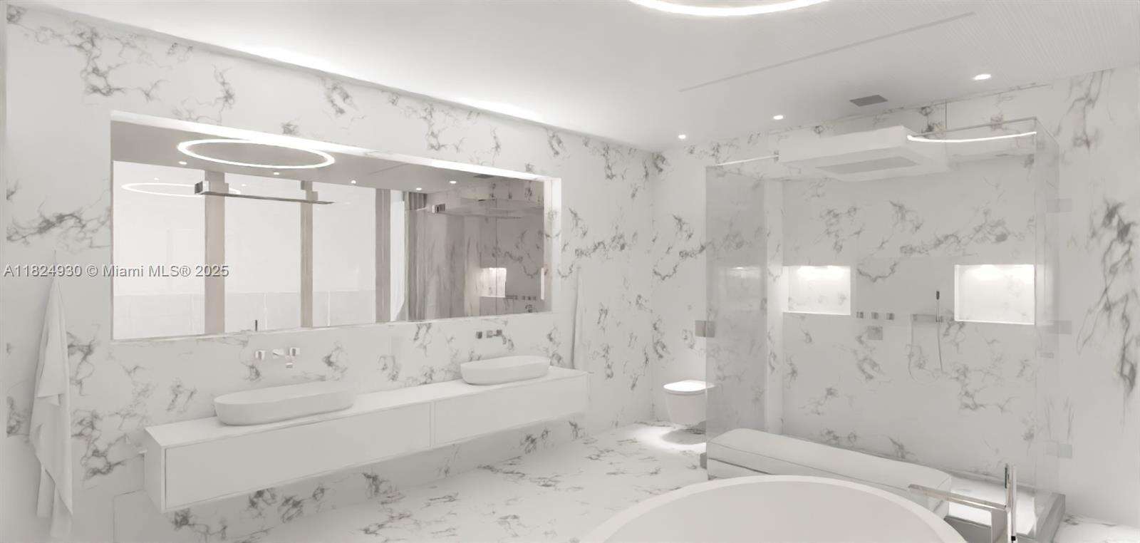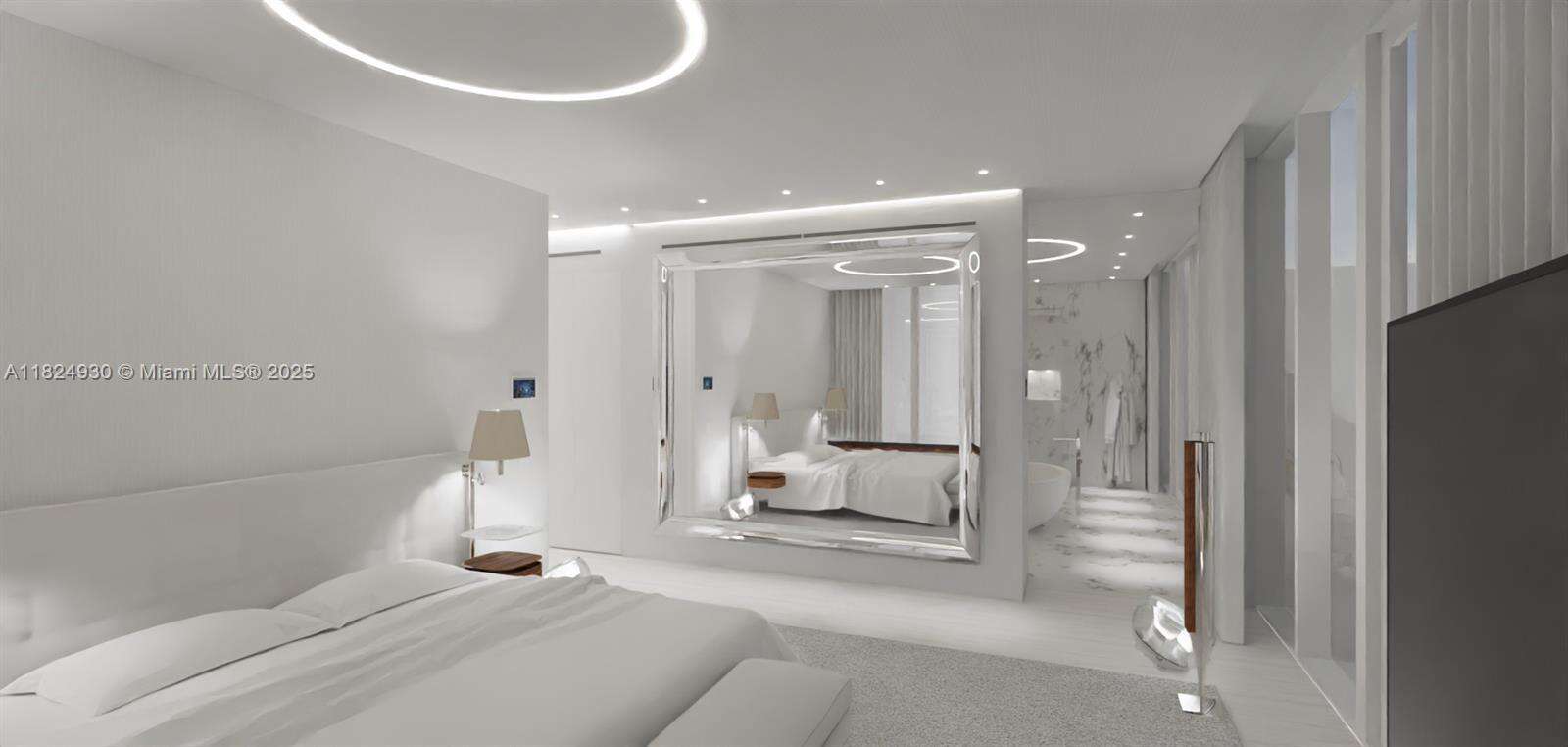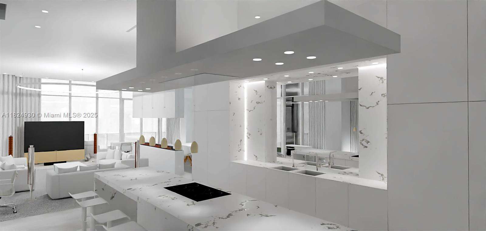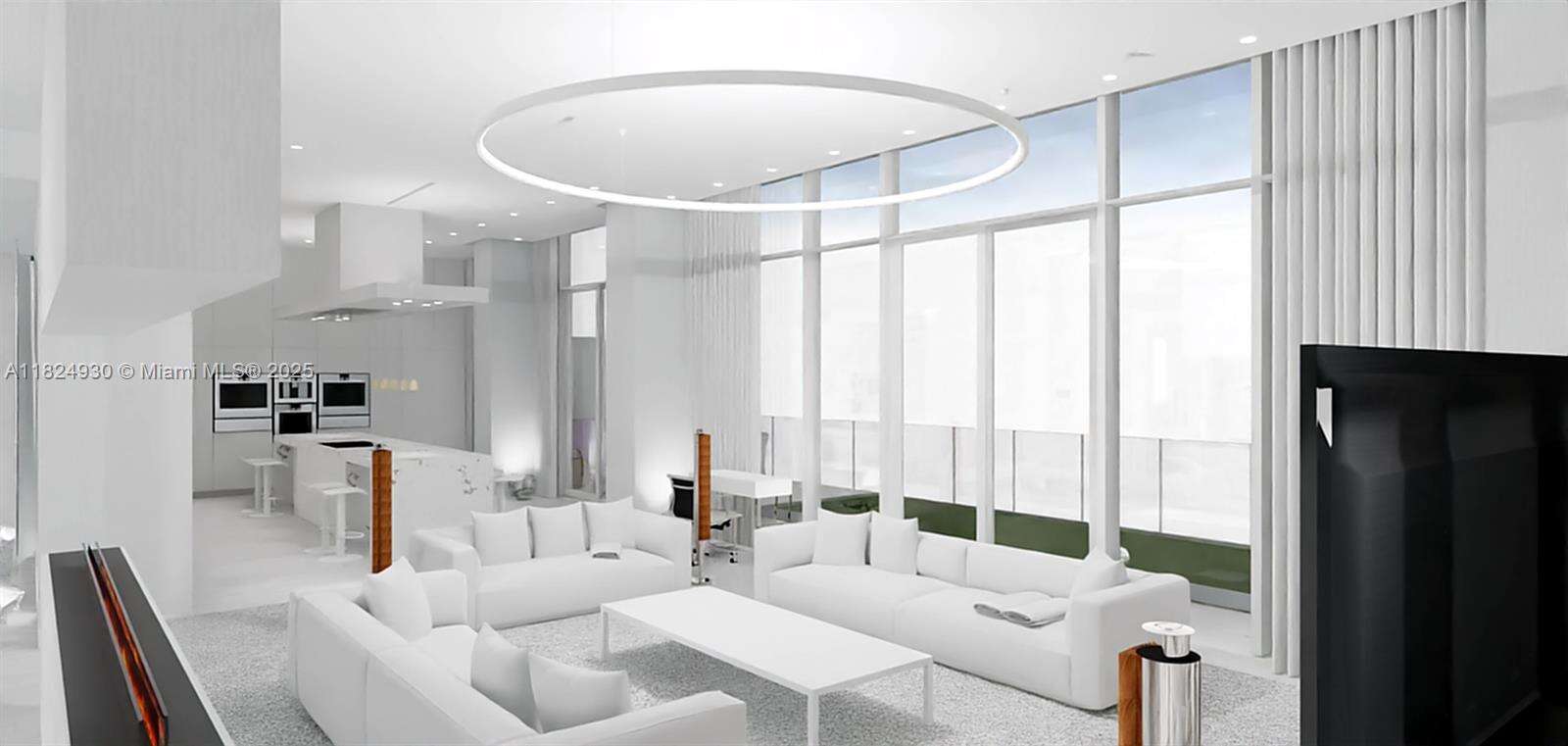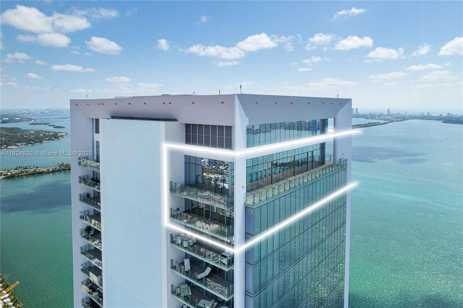 Penthouse 2 at Missoni Baia in Miami’s Edgewater offers refined modern luxury with panoramic views from Biscayne Bay to the city skyline. This rare south-facing residence spans two floors and approx. 7,000 sq ft, including a 2,700 sq ft wraparound terrace up to 12 feet deep, ideal for elevated outdoor living. The upper level features 13-foot ceilings and open-plan living/dining areas, ready for custom or curated designer finishes. A sleek staircase leads to five spacious bedrooms, including a lavish corner master suite and a private theater. Offered with architectural plans and an optional luxury package: Poggenpohl kitchen, designer baths, premium lighting, Crestron tech, top flooring, furnishings, and a Louis Vuitton pool table, defining elite Miami living.