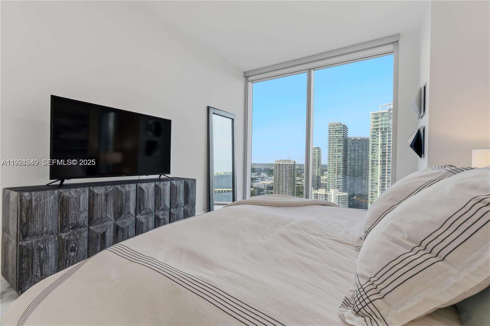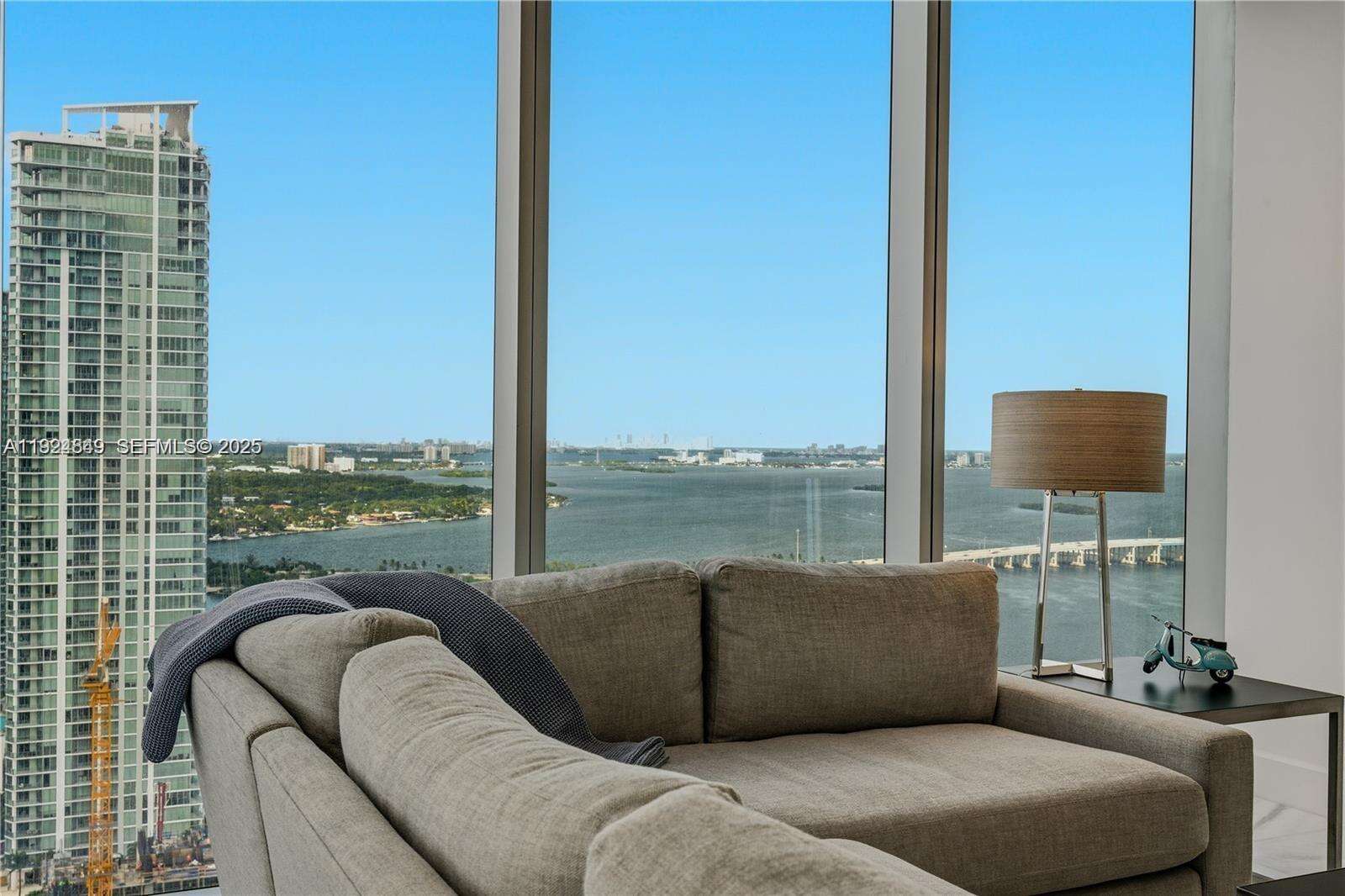 Missoni Baia residence 3406 offers sweeping views of Biscayne Bay and gorgeous sunsets from both the living area and primary bedroom. This two bedroom, two bath home features marble floors throughout, floor to ceiling glass, electric shades and a generous terrace perfect for outdoor dining. The open kitchen is finished with Italian cabinetry, premium appliances and a built in wine cooler, flowing into a comfortable living and dining space that is ideal for both everyday living and entertaining. The primary suite includes custom closets and a spa style bath with glass enclosed shower and soaking tub, while the split second bedroom works perfectly for guests or a home office. Missoni Baia is a resort style bayfront tower in Edgewater with multiple pools including an Olympic length lap pool, expansive fitness center, spa with sauna and steam rooms, bayfront lounge, kids room, pet spa, tennis court, concierge and valet. Prime location just minutes to Design District, Wynwood, Miami Beach, Brickell and Miami International Airport.
