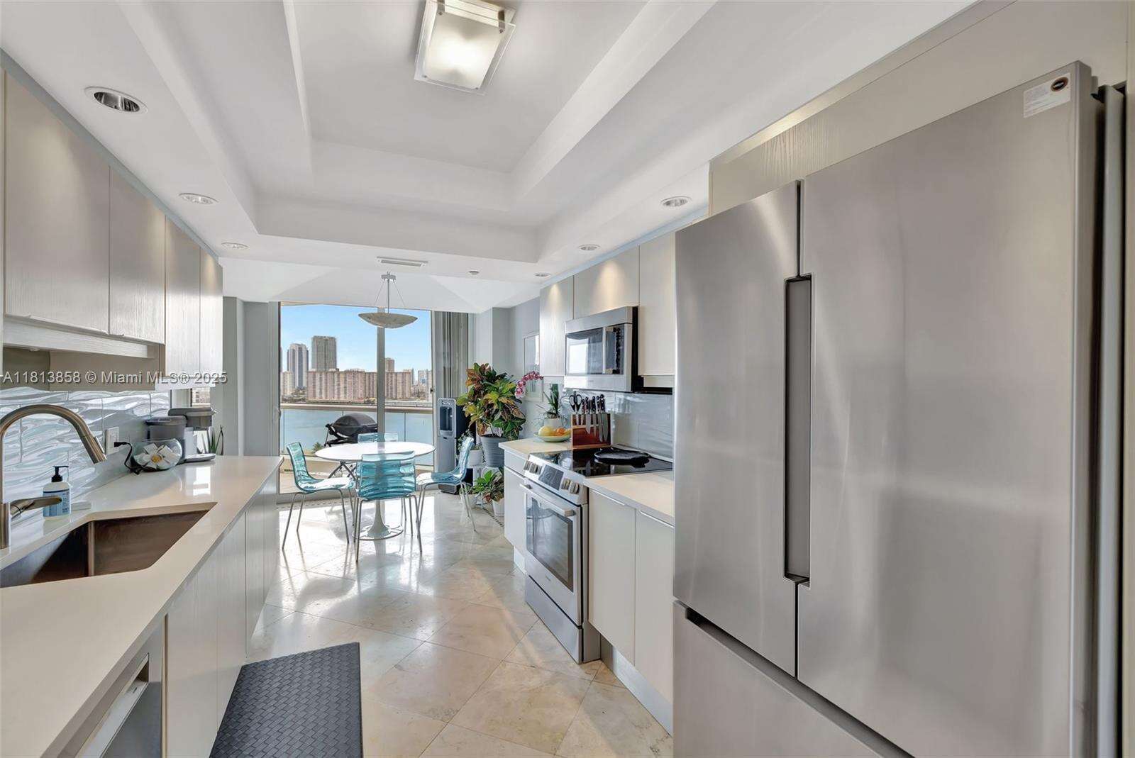 UNIQUE 2,070 SQ FT 2 BED /2 BATH + POWDER ROOM + SEPARATE LAUNDRY ROOM. CORNER UNIT W/ WRAP AROUND TERRACE. ONLY A FEW LIKE THIS IN THE BUILDING. AMAZING DIRECT OCEAN AND INTRACOASTAL VIEWS. ELEGANT MARBLE FLOORING IN LIVING AREAS & PORCELAIN WOOD LOOK TILE IN BEDROOMS. SMOOTH CEILINGS, CUSTOM CLOSETS, S/S APPLIANCES, QUARTZ COUNTERTOPS. 2ND WALK IN CLOSET HAS BEEN CONVERTED TO OFFICE. REMODELED LOBBY, NEW GYM, PARTY ROOM, CARD ROOM, GAME ROOM & BUSINESS CENTER. LIVE IN PRESTIGIOUS WILLIAMS ISLAND WITH FULL AMENITIES: 15 TENNIS COURTS, 4 PICKLEBALL COURTS, 4 DINING OUTLETS, COMMUNITY POOL , STARBUCKS, STATE OF THE ART SPA, MARINA, WALK/JOG PATH, DOG PARK, KIDS PLAYGROUND, COURTESY BUS, SYNAGOGUE, AVENTURA CHARTER SCHOOLS ***7000 BUILDING HAS THE LOWEST MONTHLY HOA ON THE ISLAND.***
