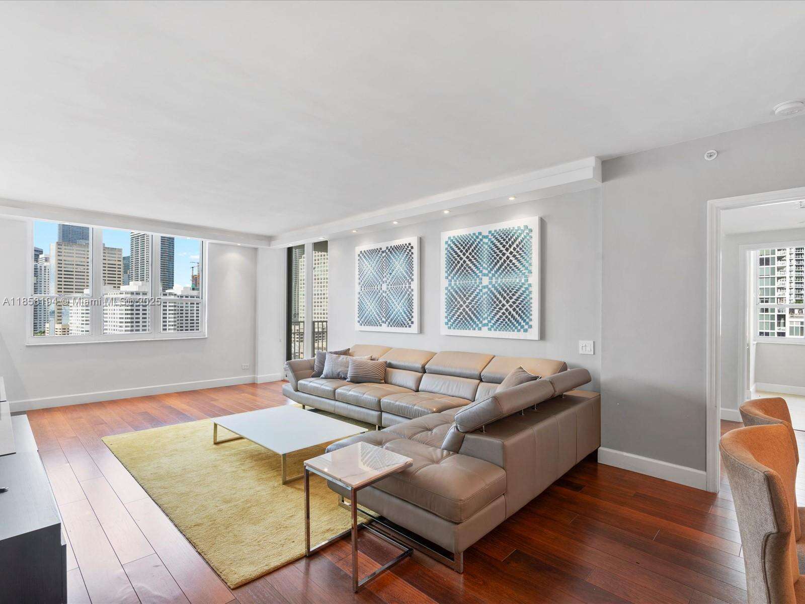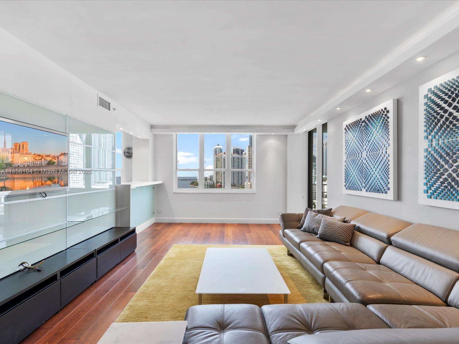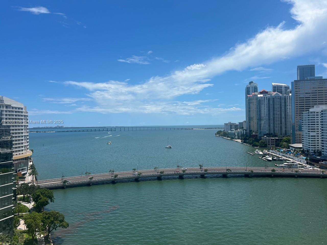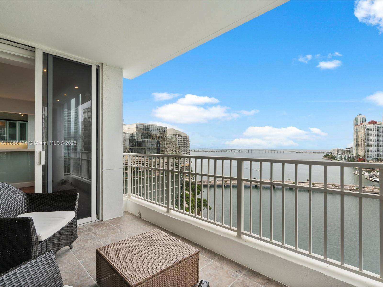 Stunning, Panoramic Water Views of the bay and city skyline, spacious updated corner residence, two balconies, lots of natural light, wood floors, open kitchen to living area, two parking spots, storage unit, pool, 2 story fitness gym, 24-hour concierge, valet, walking/jogging trail, guard-gated private island, exclusive Brickell Key, walking distance to Brickell City Centre, local dinning, shopping, and entertainment, close to airport.