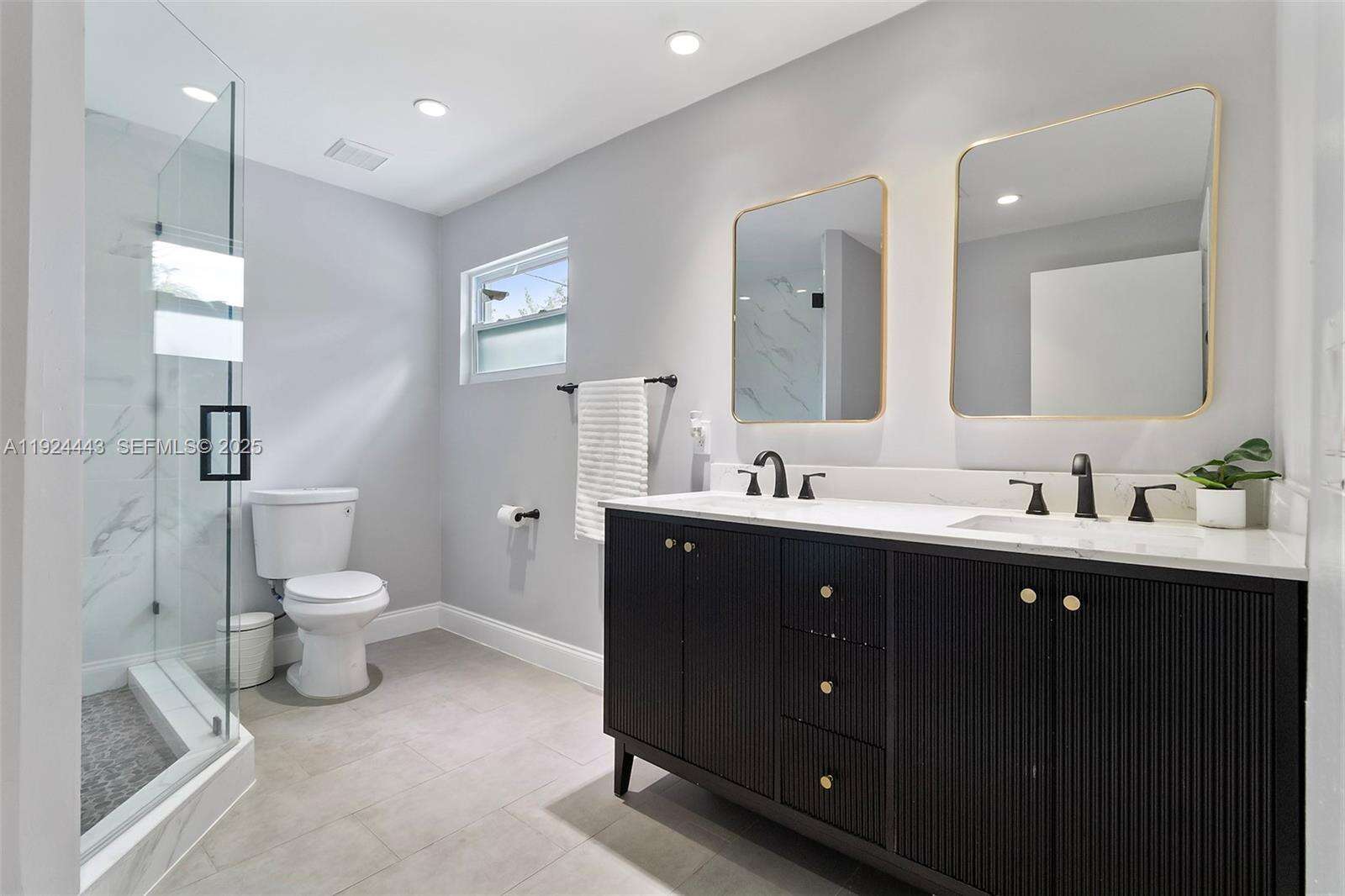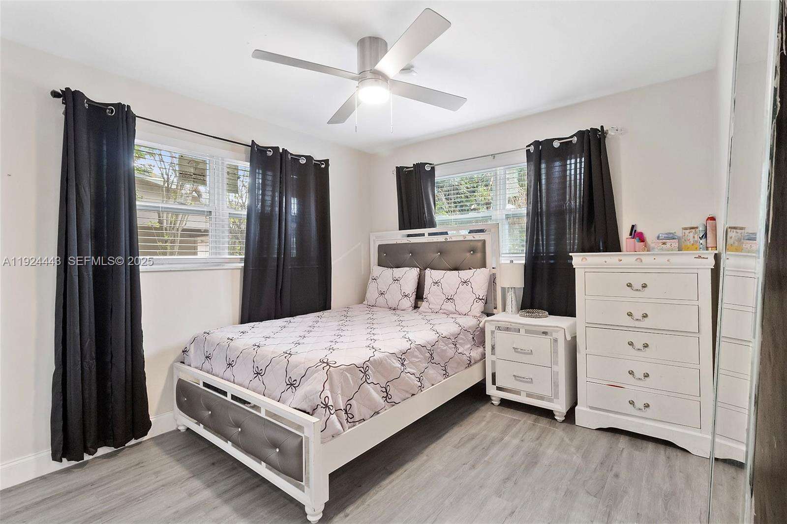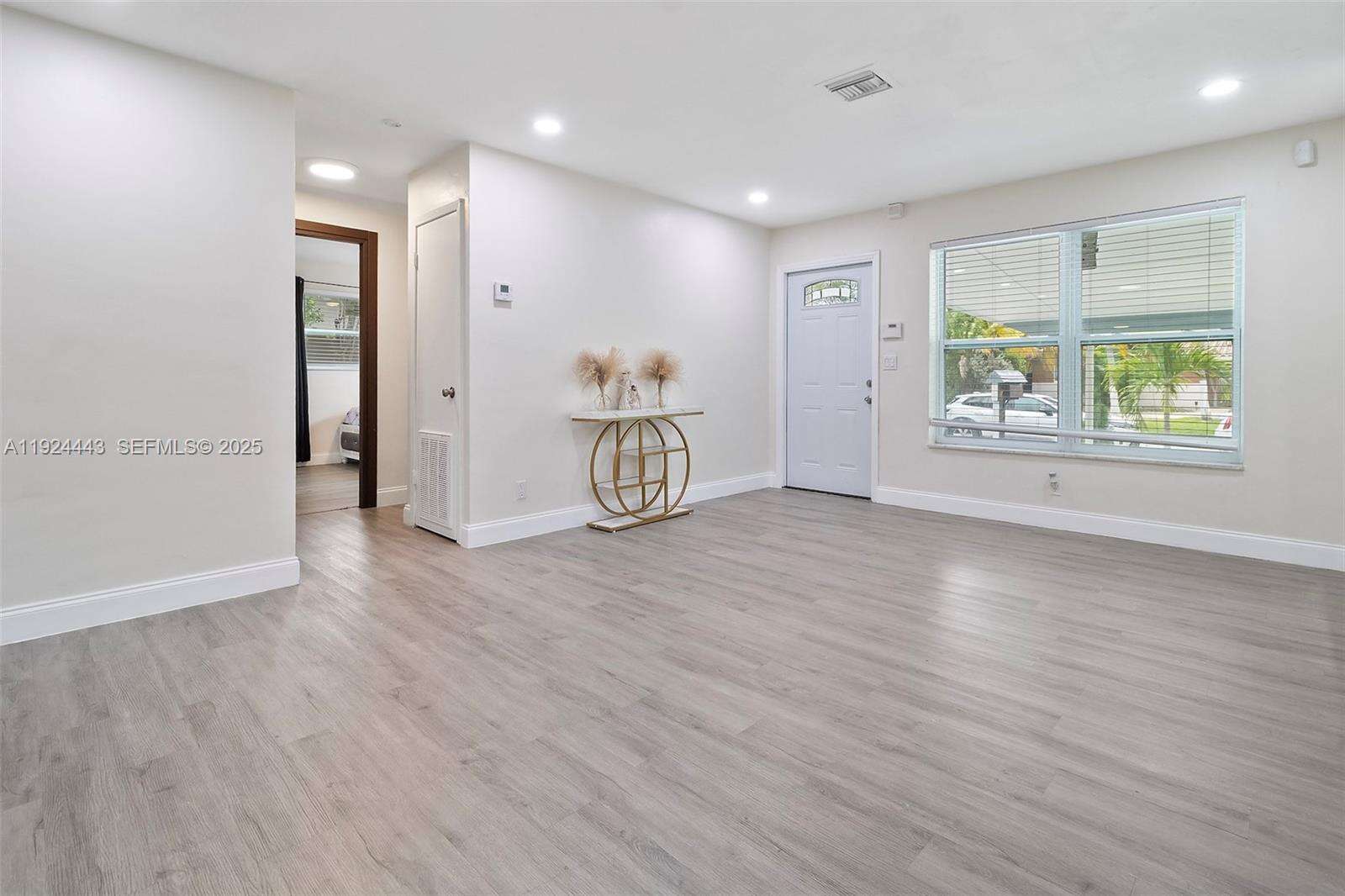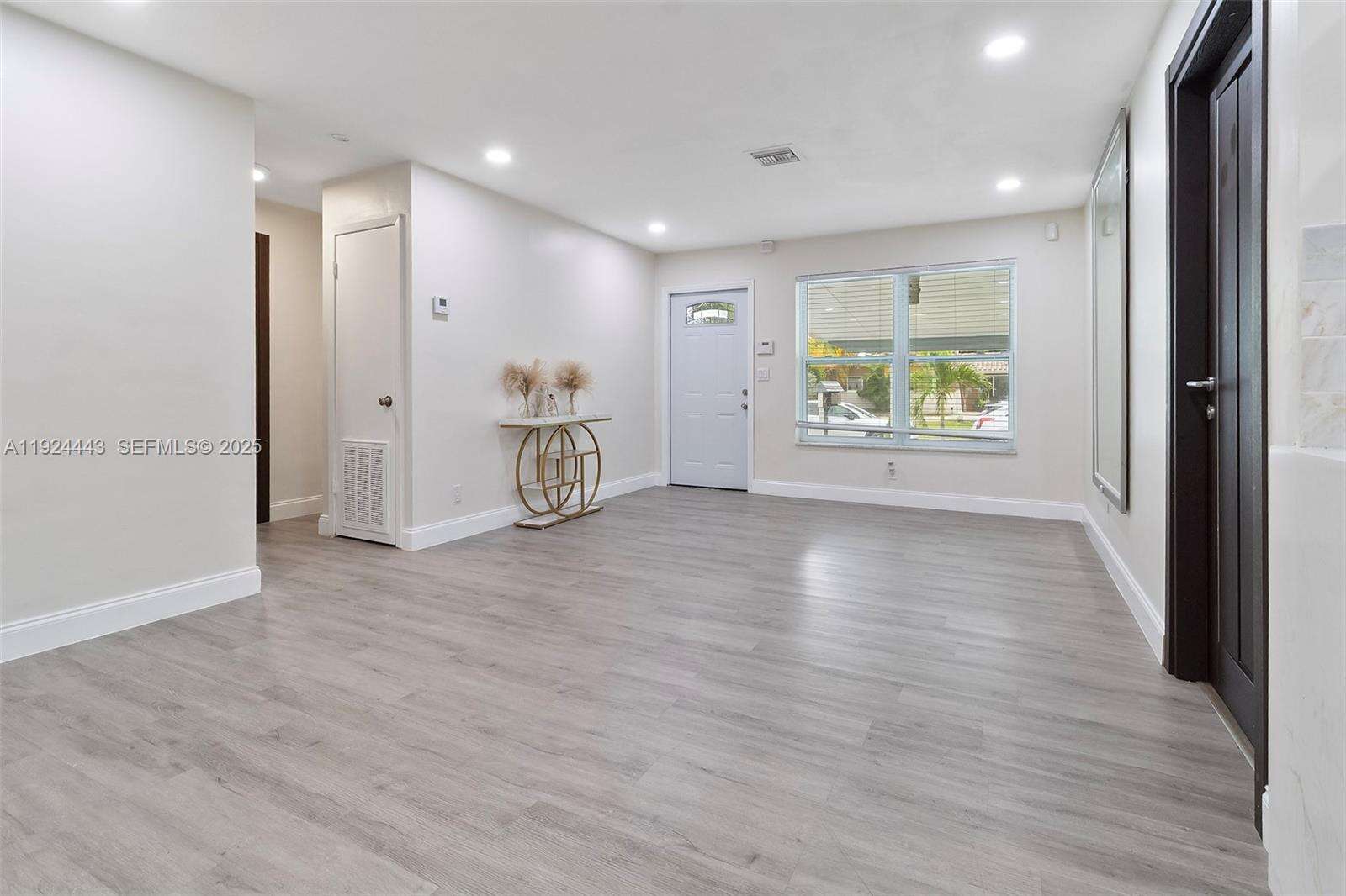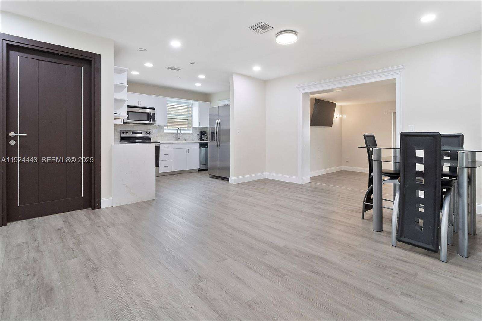 Stunning modern renovation of single-family home in a booming area of Hallandale Beach. Property includes 3 bedrooms and 2 bathrooms. Master bedroom has a walk-in closet with large attached bathroom with double vanity sink. Renovations include new roof, new hurricane windows/doors, new waterproof flooring, quartz countertops in kitchen, appliances, washer/dryer, updated bathrooms and kitchen, lighting improvements, and paved driveway. Property has open layout with designated dining area, living room, and entertainment room. Covered patio and shed in backyard along with a new PVC fence. Landscaping improvements give the property great curb appeal. This property won't last long, so come and take a look!