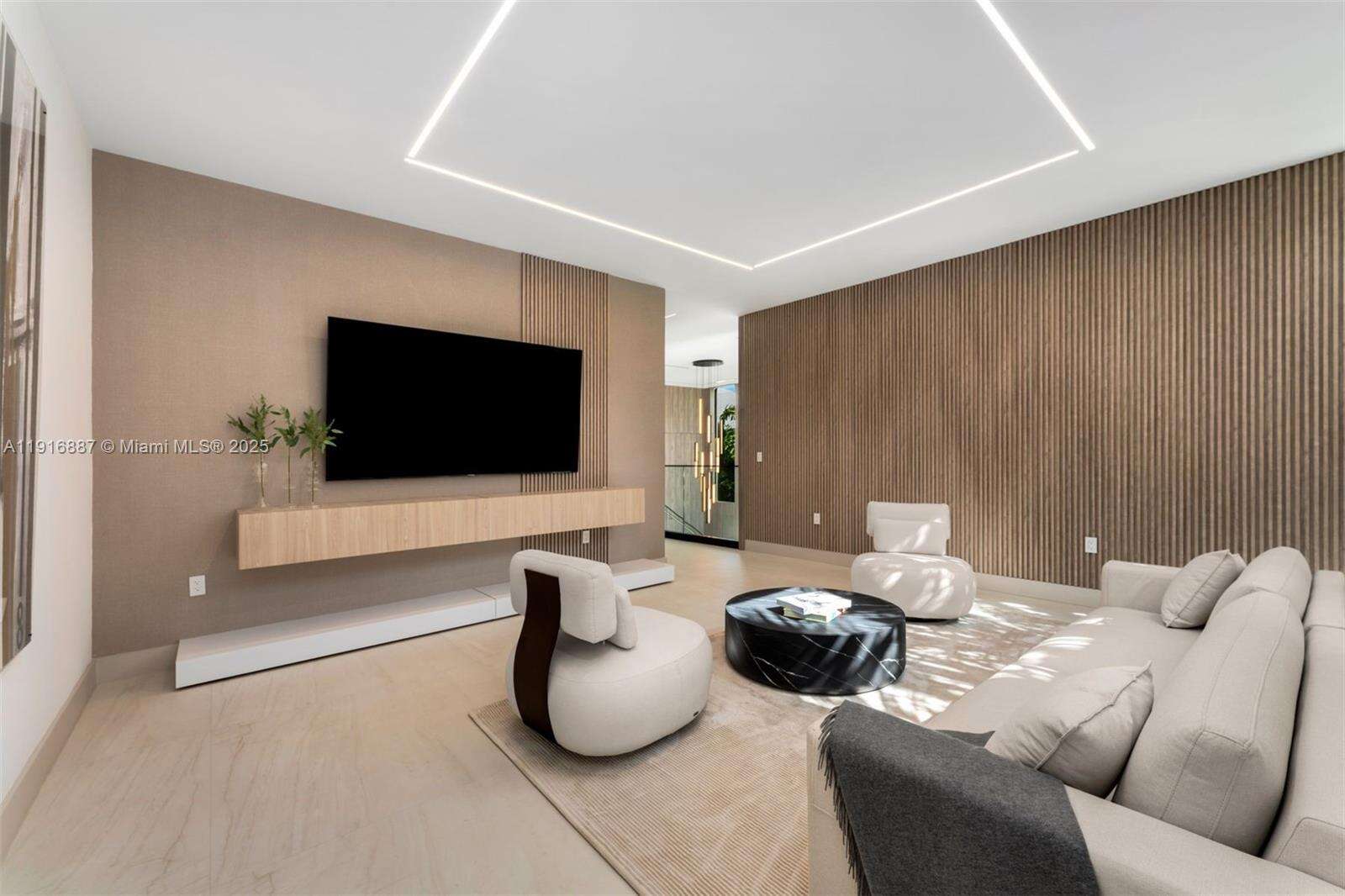 Experience refined modern waterfront living on exclusive, guard-gated Belle Meade Island. This brand-new 8,210 SF architectural residence sits on a 17,000 SF lot with 52 ft. of water frontage, new seawall, private dock, and direct access to Biscayne Bay. A dramatic pivot door and floor-to-ceiling glass capture stunning natural light and water views. Features 6 bedrooms, 7.5 baths, elevator, theater, gym, sauna, office, wellness room overlooking the pool, and 3-car A/C garage. Gourmet chef’s kitchen with custom cabinetry and top-of-the-line appliances. Luxe primary suite with spa bath, boutique closet, and private terrace. Outdoor oasis with heated pool, spa, and expansive landscaped yard for resort-style living.