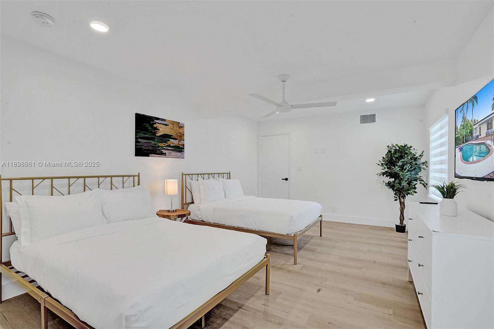 Embrace the best of coastal living in this bright and spacious 7-bedroom, 5-bath home, ideally located just a short walk from Hollywood Beach and the Intracoastal. Set on one of Hollywood’s most desirable streets, this 1953 gem offers 4,197 sq ft of living space on an oversized 18,040 sq ft lot. Inside, enjoy sun-filled interiors, sleek modern bathrooms, warm wood flooring, and a versatile Florida room perfect for relaxing or entertaining. With its generous layout and expansive yard ready for your dream outdoor oasis, this property combines timeless charm, space, and an unbeatable location.