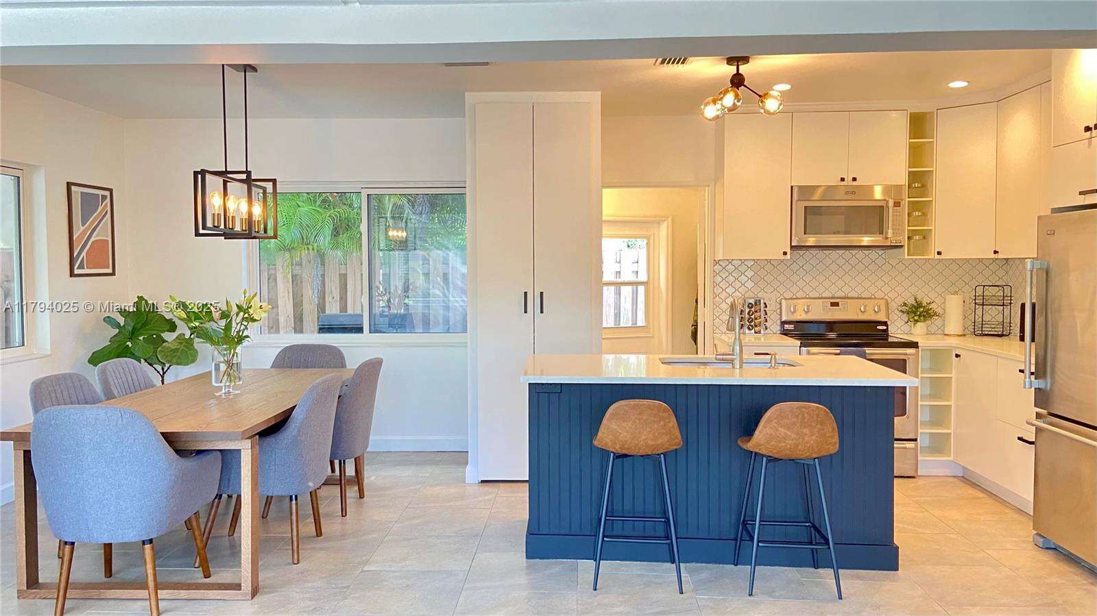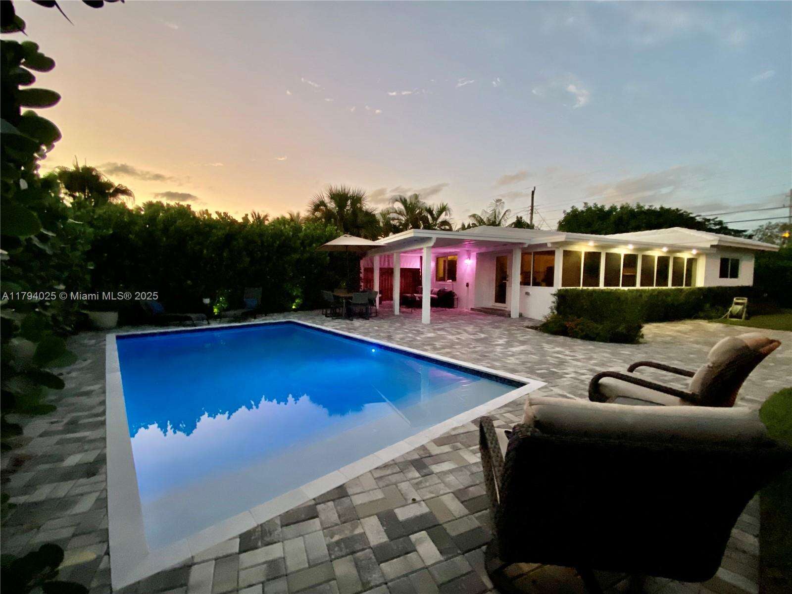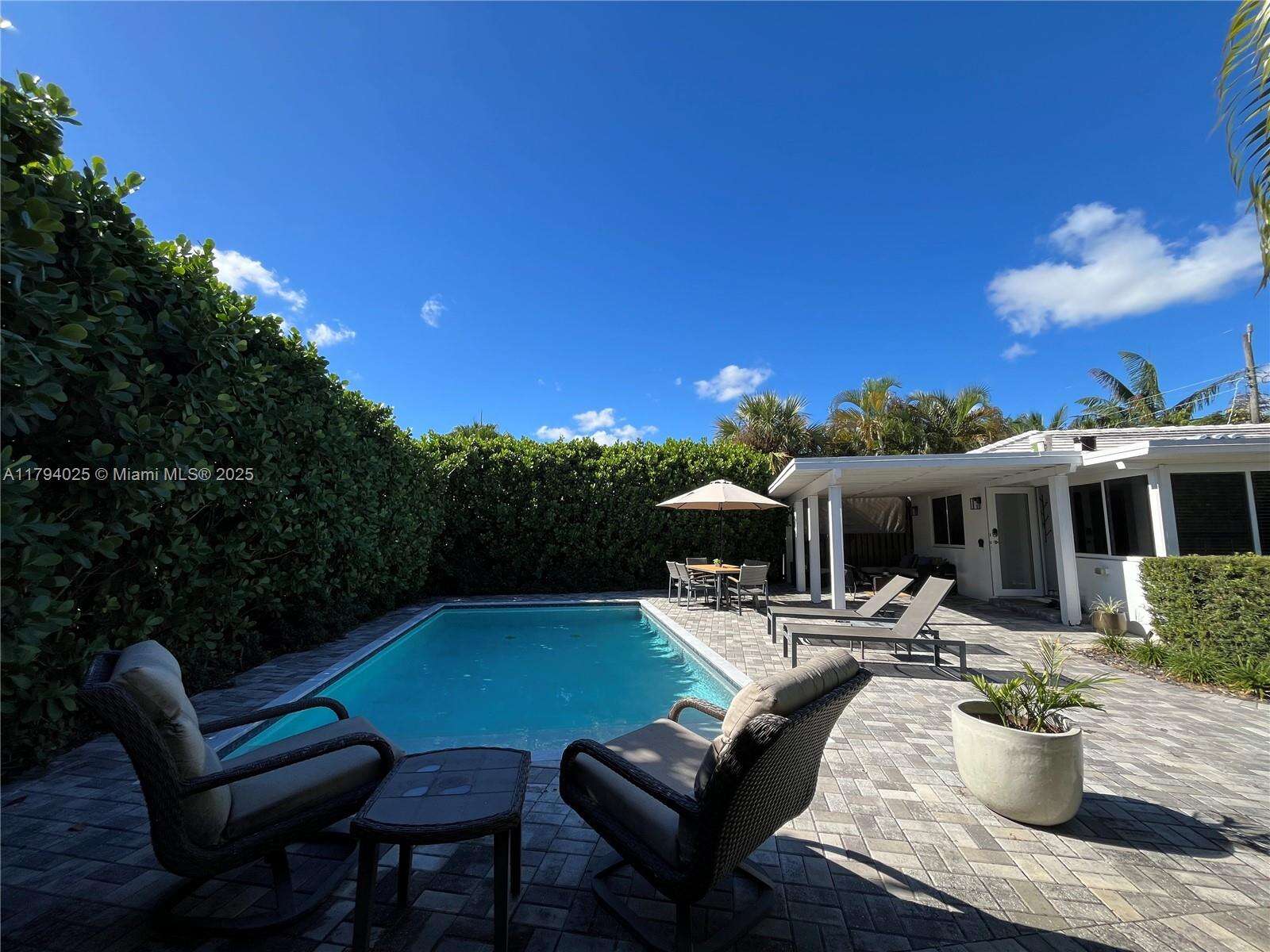 PRICE REDUCTION, LAST AVAILABLE SHOWINGS FROM TUESDAY 11/11 - FRIDAY 11/14 ONLY. NEW ROOF INSTALLED IN 2024 & IMPACT WINDOWS/DOORS THROUGHOUT - Bright and modern 2-bedroom, 2-bathroom home located Middle River Terrace, great opportunity for investment which can be sold fully furnished. Mid-century character / modern updates / turnkey property ideal for a primary residence, second home, or high-performing vacation rental. Fully enclosed fenced property with massive privacy hedges, heated pool & spacious paved deck.