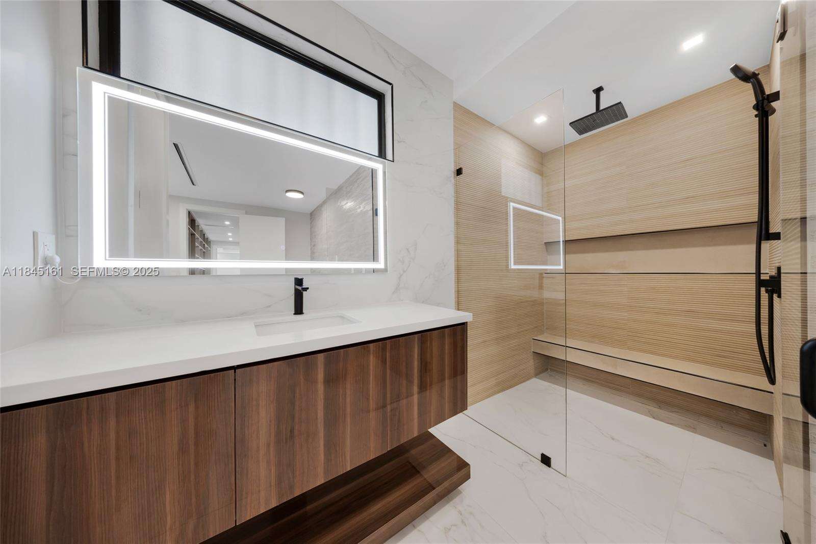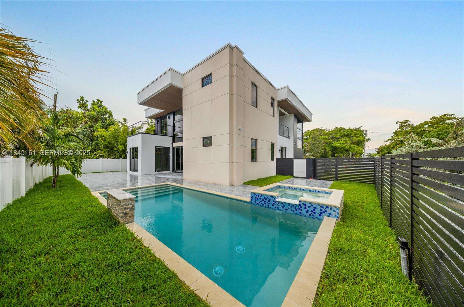 Spectacular brand-new construction offering 3,184 sq ft of refined living and 5,224 sq ft total in Victoria Park. This 5-bed /4.5-bath modern estate features a glass bridge connecting both wings, soaring ceilings, polished porcelain floors, and floor-to-ceiling impact glass. Gourmet kitchen with custom cabinetry, quartz waterfall counters, premium Jen Air appliances, and Liebherr wine fridge. Spacious master suite with oversized walk-in closet and spa-style bath. First-floor office opens to a private “secret garden” balcony. Backyard oasis boasts a pool with a jacuzzi and waterfall, lush landscaping, and covered patio. Two skylights, floating stairway, butler pantry, and dimmable lighting throughout complete this exceptional residence designed for elevated living.