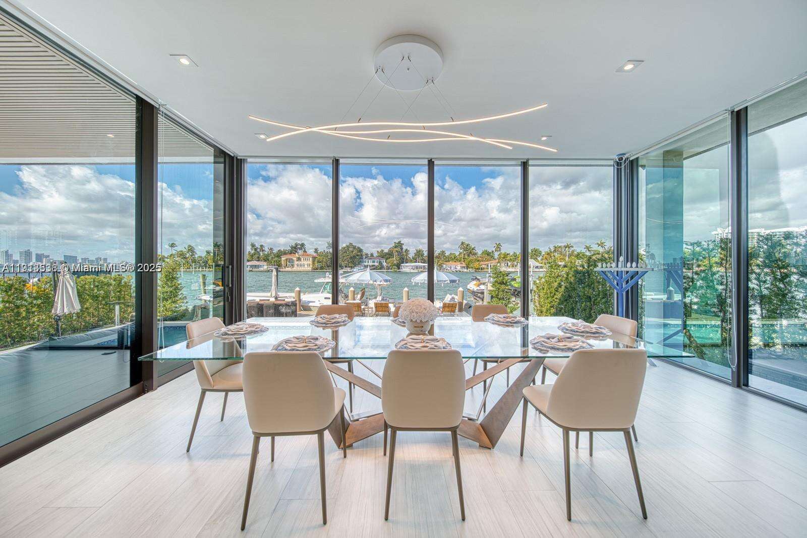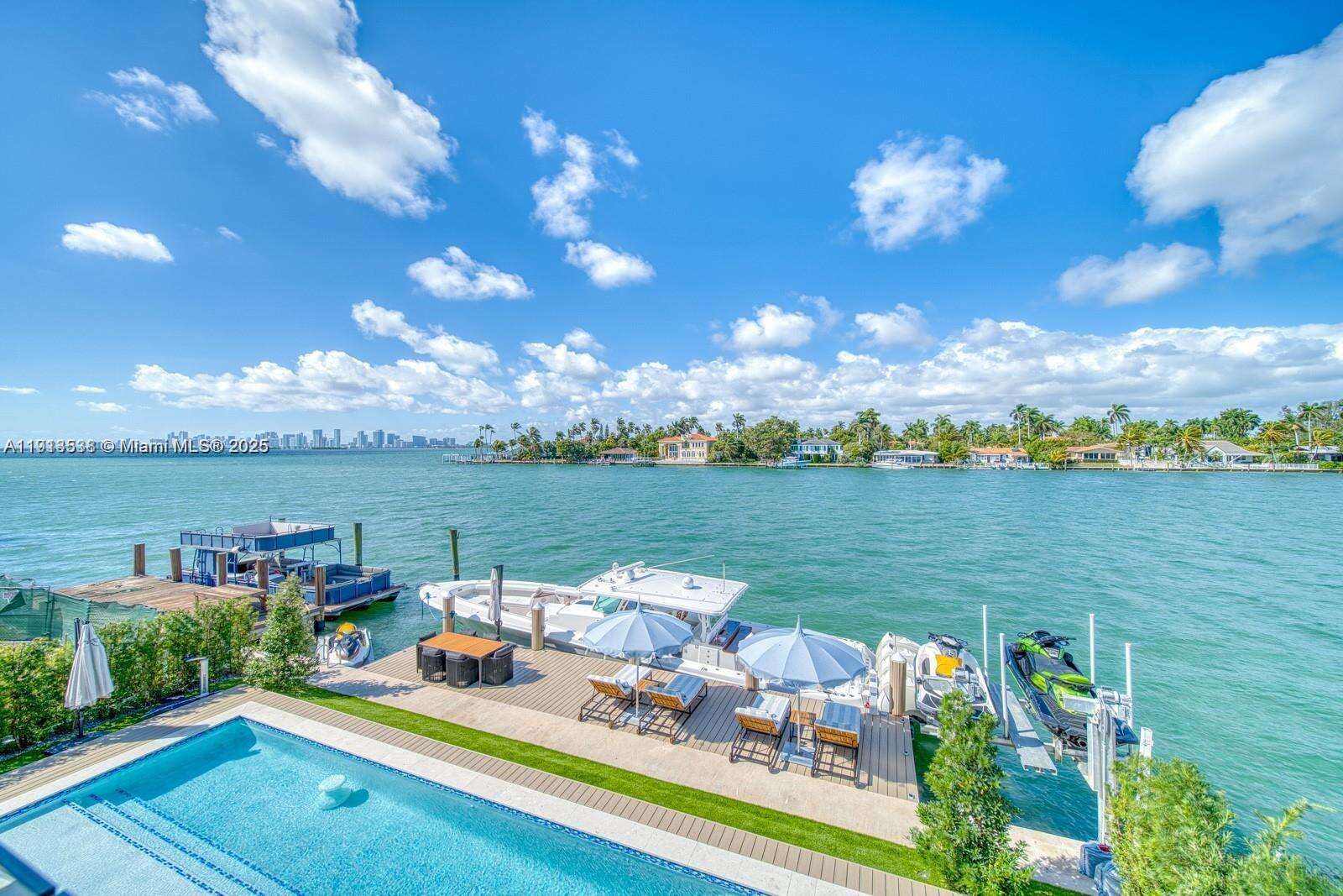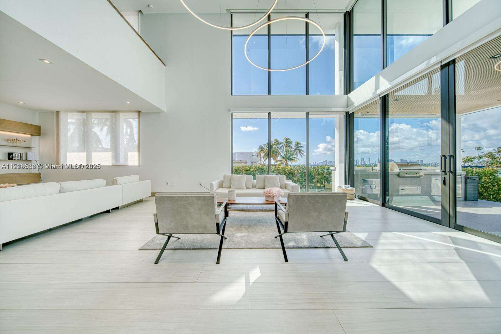 Discover unparalleled waterfront luxury in this 2022 modern masterpiece showcasing mesmerizing Biscayne Bay and Miami skyline views. The residence features soaring double-height ceilings, expansive glass walls, a chef’s gourmet kitchen, and a serene bayfront primary suite. Enjoy six ensuite guest rooms, resort-style pool, summer kitchen, rooftop terrace, and 60-ft dock. Located in North Bay Village