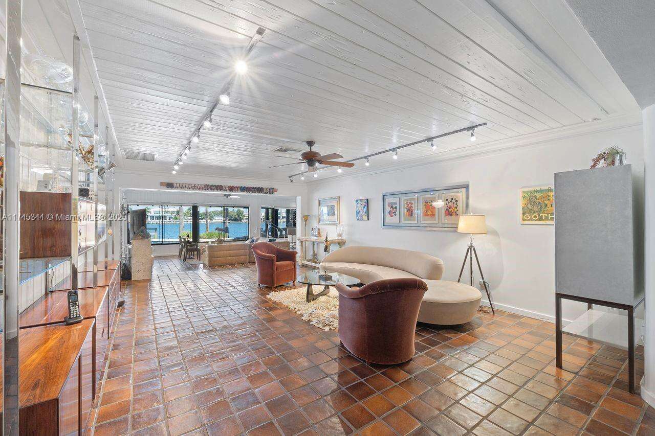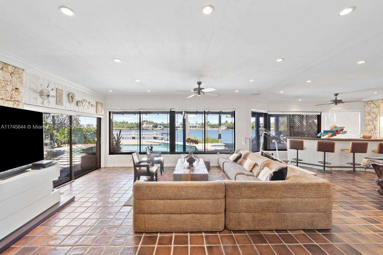 This exceptional waterfront Miami Beach residence on expansive Biscayne Bay epitomizes luxury living. Bring your boat, dock it, and unwind by the pool. Boasting four bedrooms and approximately 4,026 sq. ft., this spacious home is an ideal sanctuary for family life. The grand living area features a bar, pool table, and both a living room and Florida room, each with breathtaking water views. A two-car carport graces the front. Designed by renowned architect Barry Sugerman, this property is just 15 minutes from South Beach and Bal Harbour, nestled on a guarded island near Normandy Isle Golf Course.
