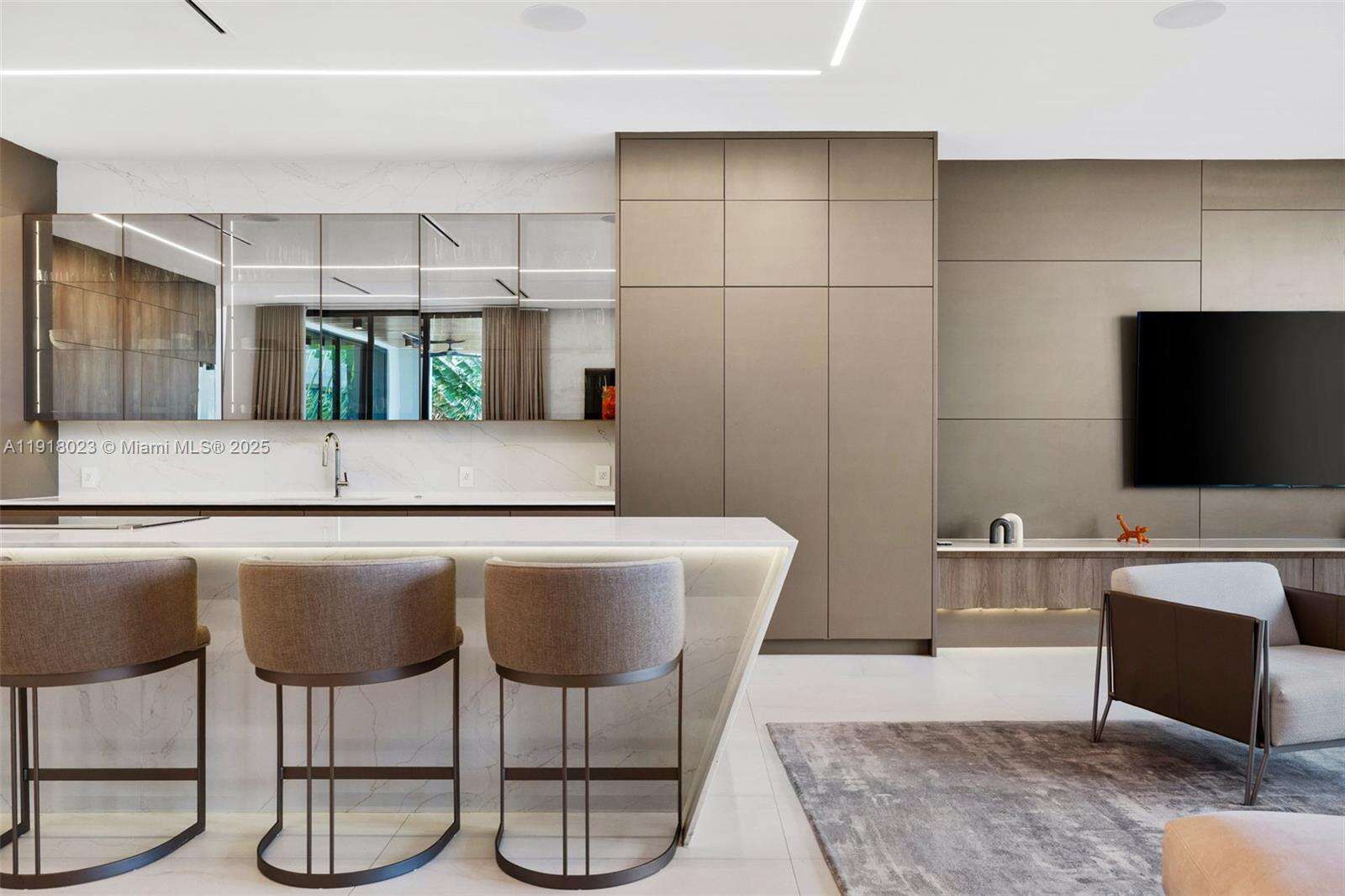 | Interior Features First Floor Entry Bar Built-in Features Closet Cabinetry Cooking Island Elevator Entrance Foyer Volume Ceilings Walk-In Closet(s) Den/Library/Office Family Room Media Room Storage |