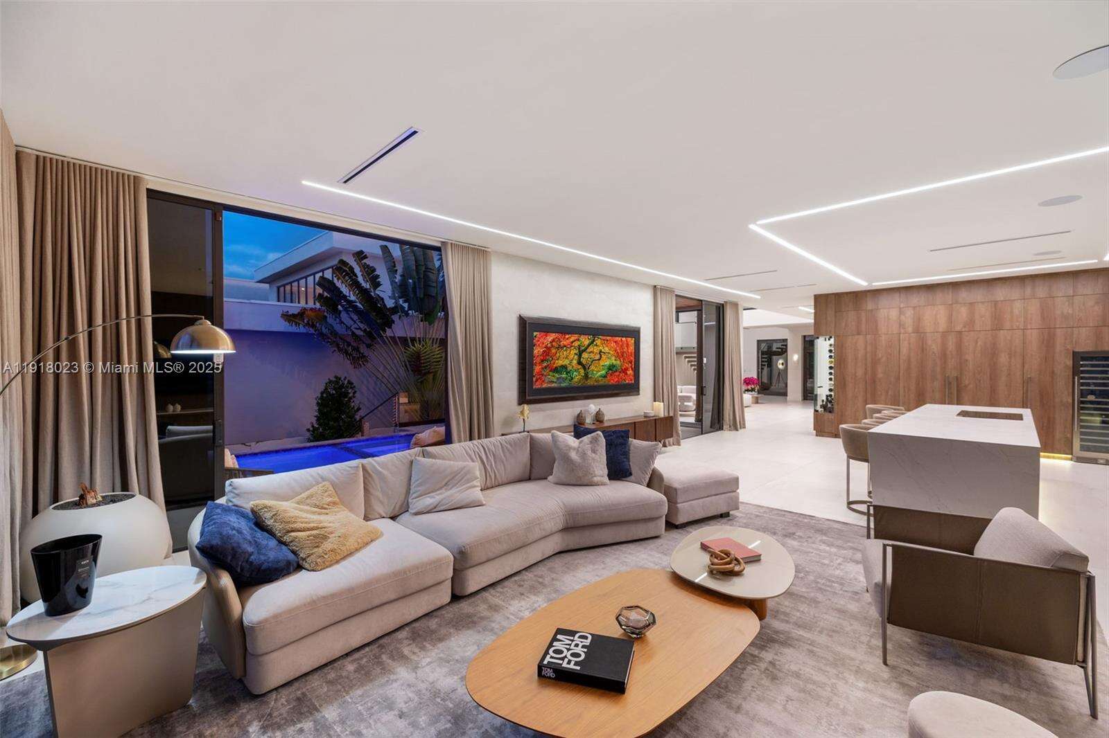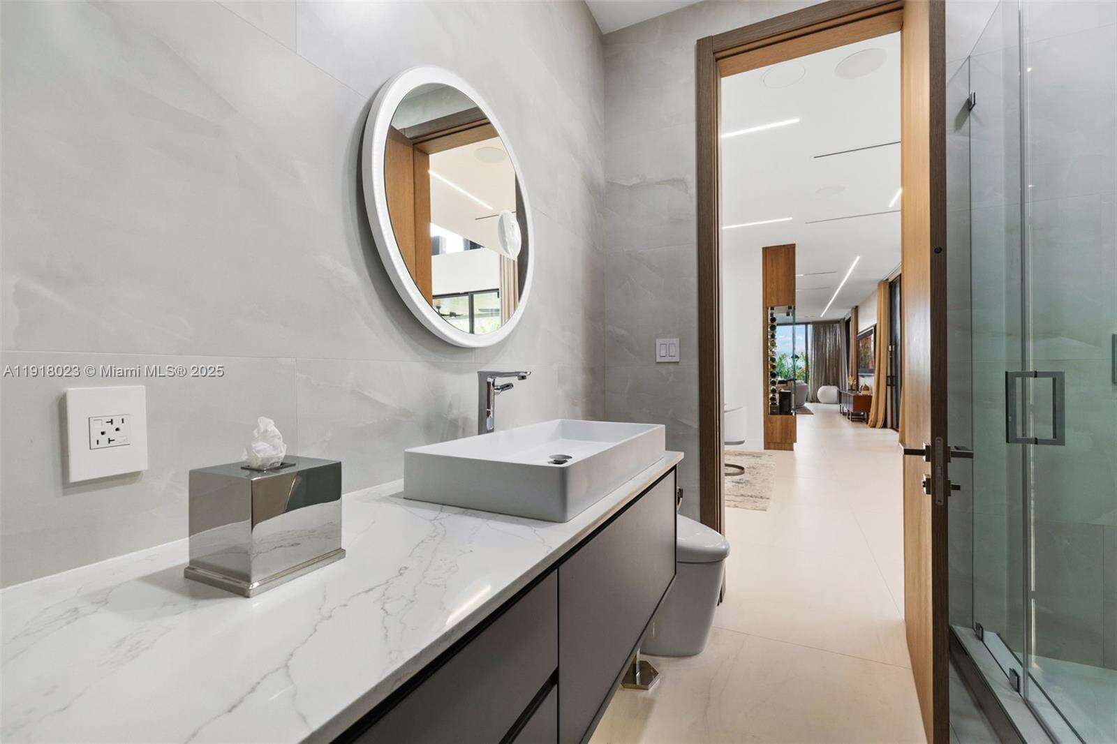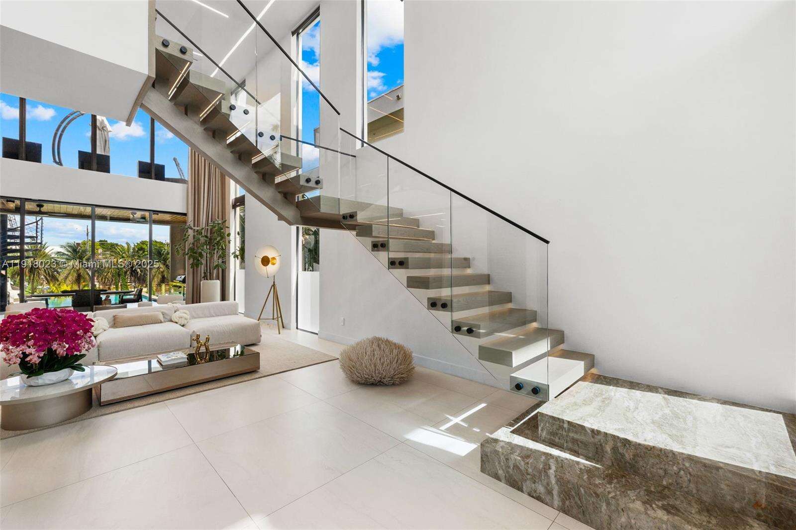 Belle Meade's newest masterpiece has arrived. With over 50 feet on the water, this 2023 build redefines luxurious living with its sharp architecture and unbelievable lineup of extraordinary features. Enjoy your private boat dock, wine cellar, movie theater, floating infinity pool, and state-of-the-art finishes. The soaring ceilings and massive windows frame your picture-perfect views and simultaneously allow the home to fill with natural light throughout the day. The blended use of glass, stone, ceramic, and wood accents in the interior spaces and living areas are immaculate. Upstairs the bedrooms are oversized. All with en-suite bathrooms and custom walk-in closets. The primary looks out on the water, with a floating tub and glass shower. With 10-foot sliding doors leading to the summer kitchen, the home embraces true indoor-outdoor living wrapped in luscious privacy landscaping. The house is equipped with a 2 car garage, and a lift. Gated community.