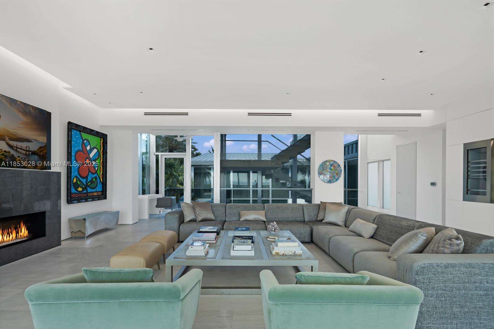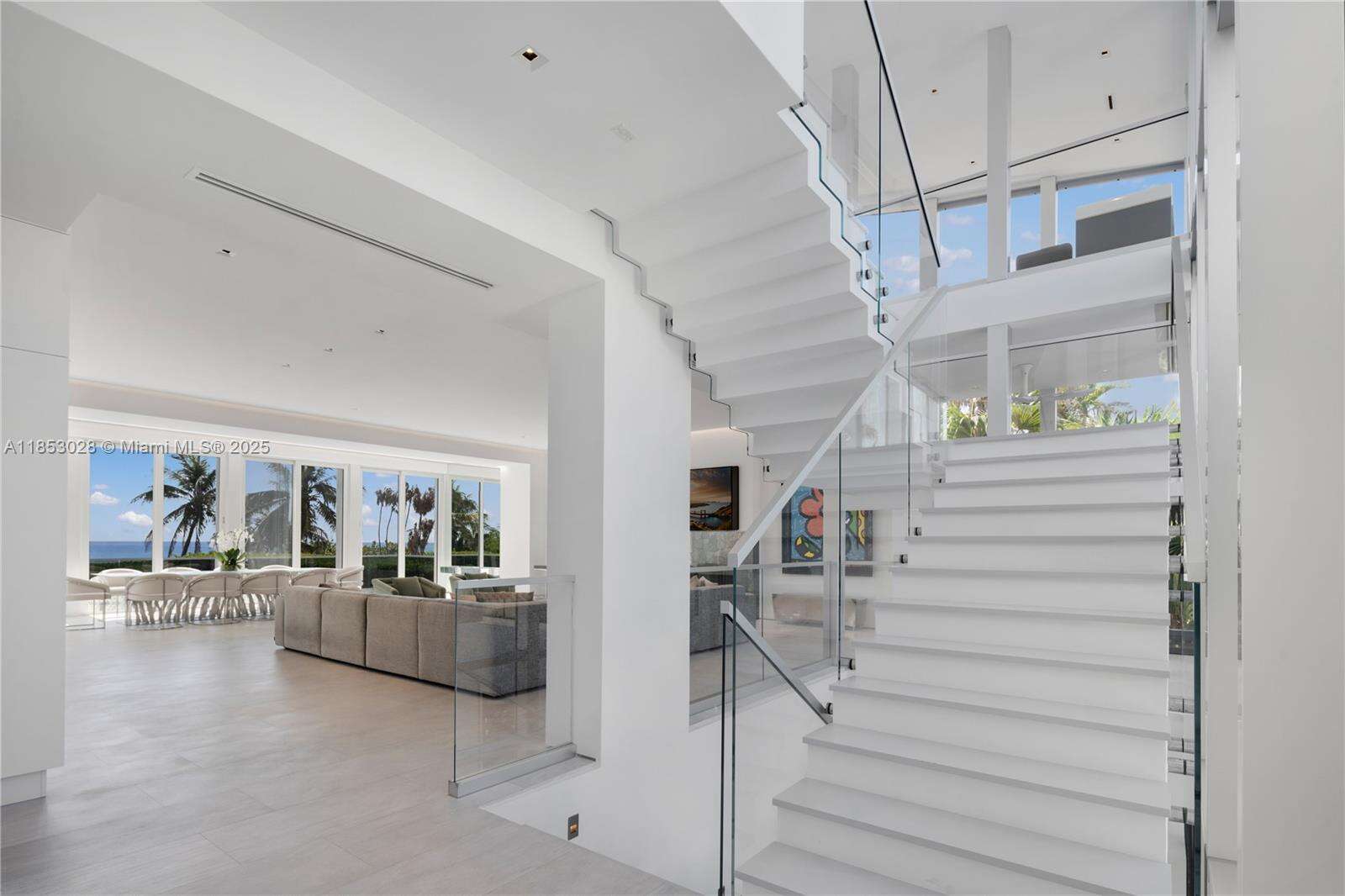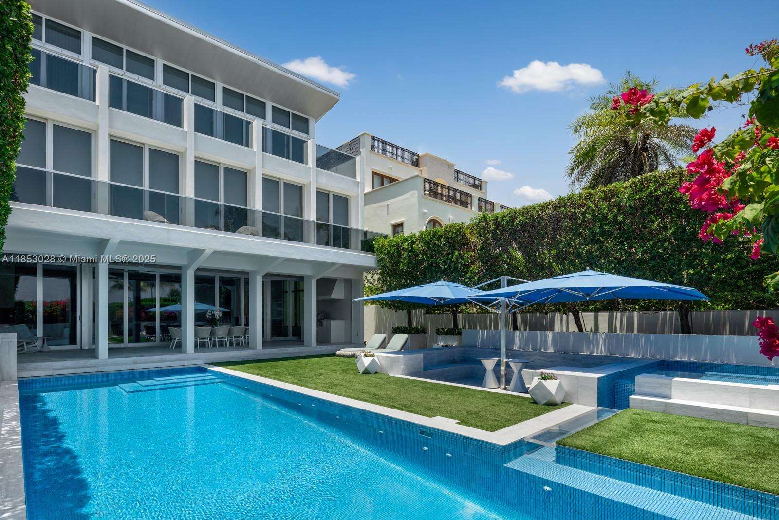 Rising above Miami Beach’s only oceanfront enclave, this contemporary estate by Ramon Pacheco & Coastal Construction spans 3 levels w soaring 11–14’ ceilings, walls of glass & an interior water courtyard. Dual chef’s kitchens w Wolf, Sub-Zero & Gaggenau appliances, multiple entertaining areas, wine cellar & full smart home automation define modern sophistication. The 3rd-floor primary suite offers a private oceanfront terrace & spa bath, while a steam shower at pool level provides the ultimate in relaxation. Outdoors, an updated saltwater pool, summer kitchen, firepit, sunken lounge & refinished stone terraces create a resort-like escape. Enhancements include new A/C, TVs & AV, brand-new driveway, onyx kitchen counter tops, full-house generator, water purification & 2-car A/C garage.