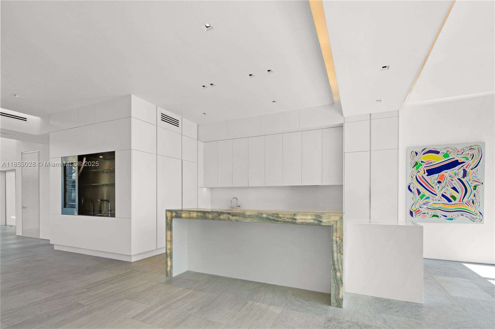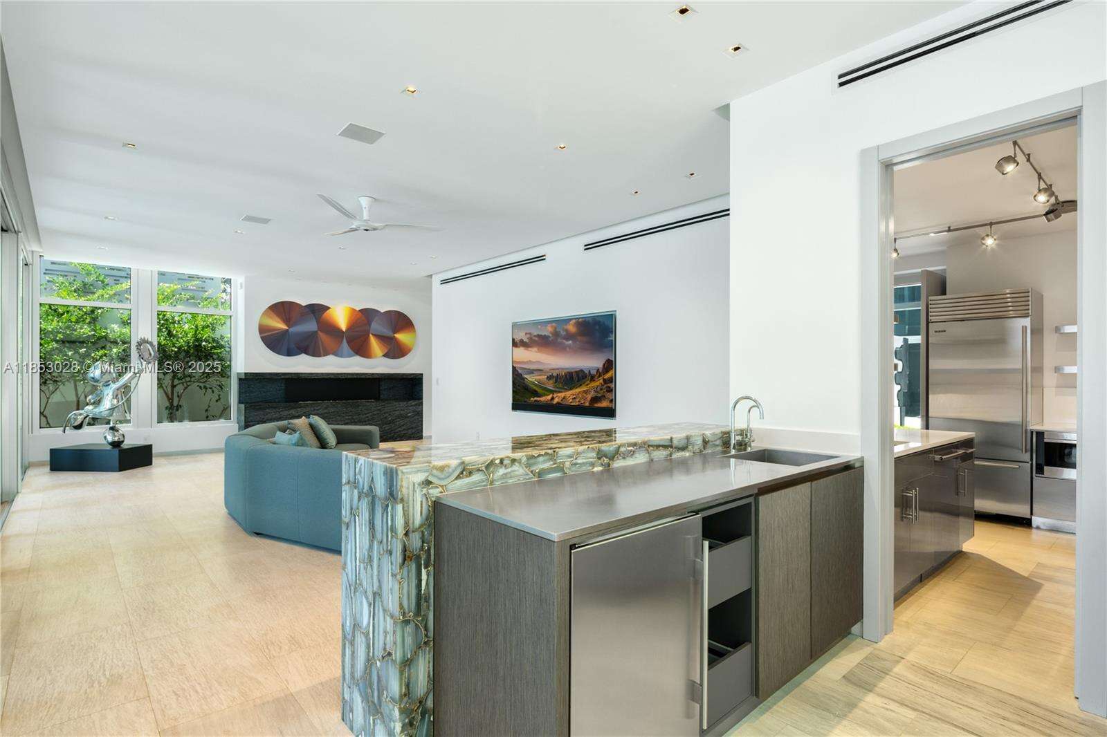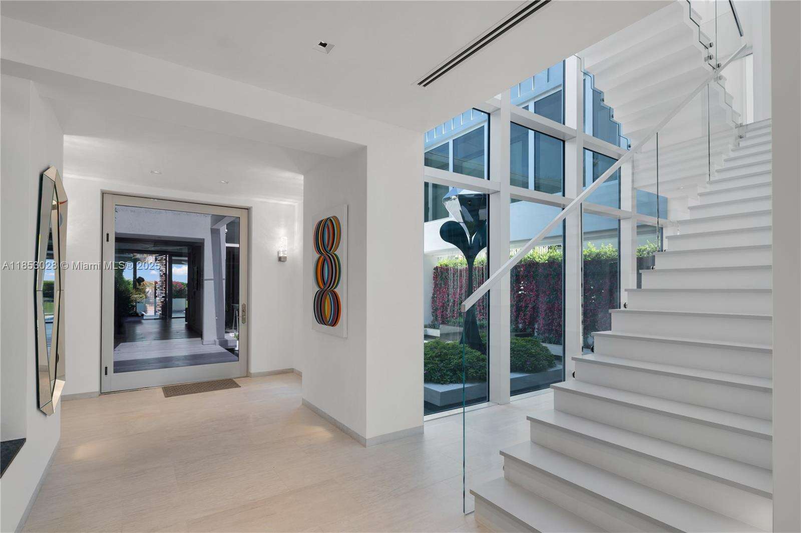 Rising above Miami Beach’s only oceanfront enclave, this contemporary estate by Ramon Pacheco & Coastal Construction spans 3 levels w soaring 11–14’ ceilings, walls of glass & an interior water courtyard. Dual chef’s kitchens w Wolf, Sub-Zero & Gaggenau appliances, multiple entertaining areas, wine cellar & full smart home automation define modern sophistication. The 3rd-floor primary suite offers a private oceanfront terrace & spa bath, while a steam shower at pool level provides the ultimate in relaxation. Outdoors, an updated saltwater pool, summer kitchen, firepit, sunken lounge & refinished stone terraces create a resort-like escape. Enhancements include new A/C, TVs & AV, brand-new driveway, onyx kitchen counter tops, full-house generator, water purification & 2-car A/C garage.