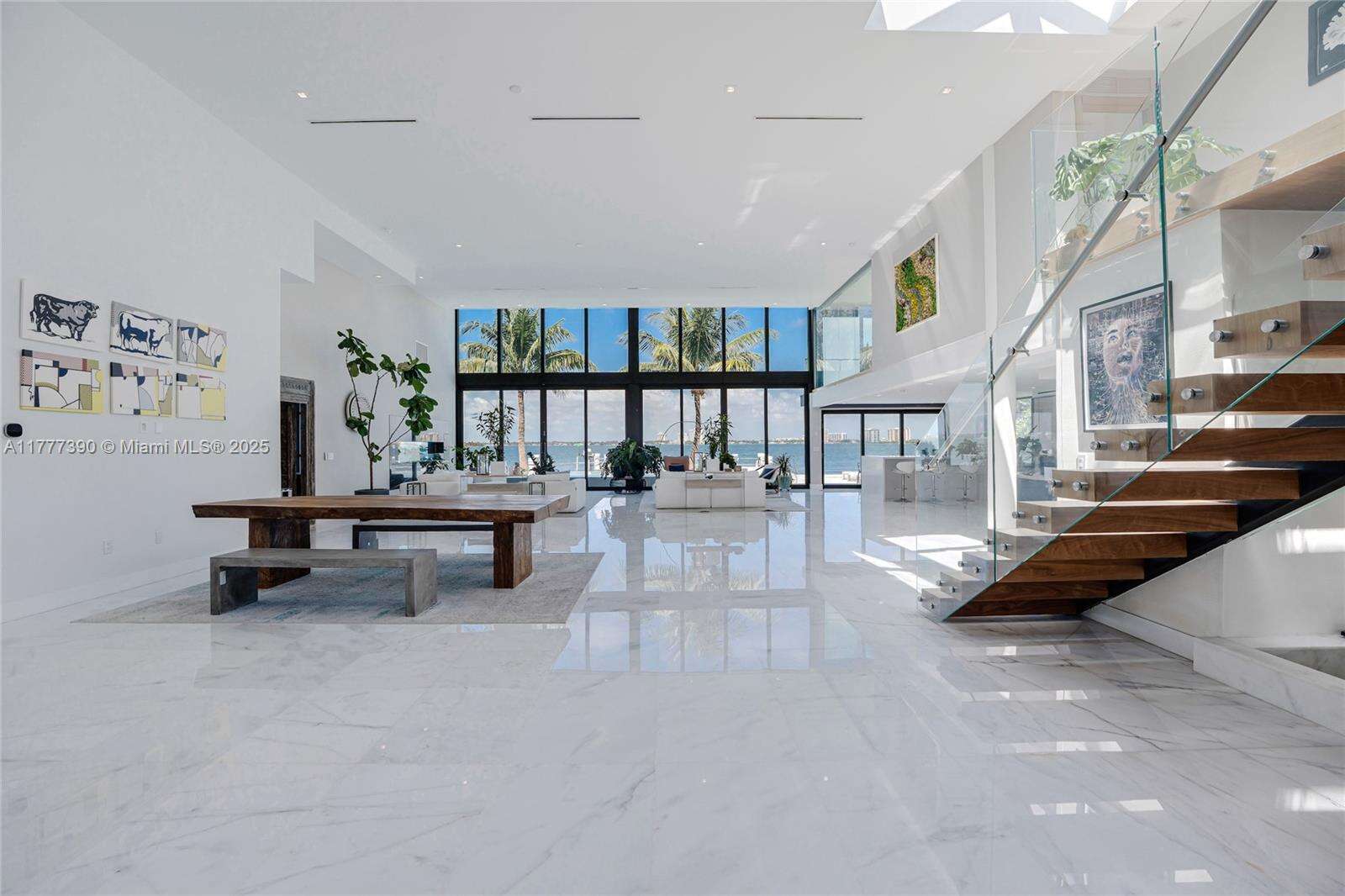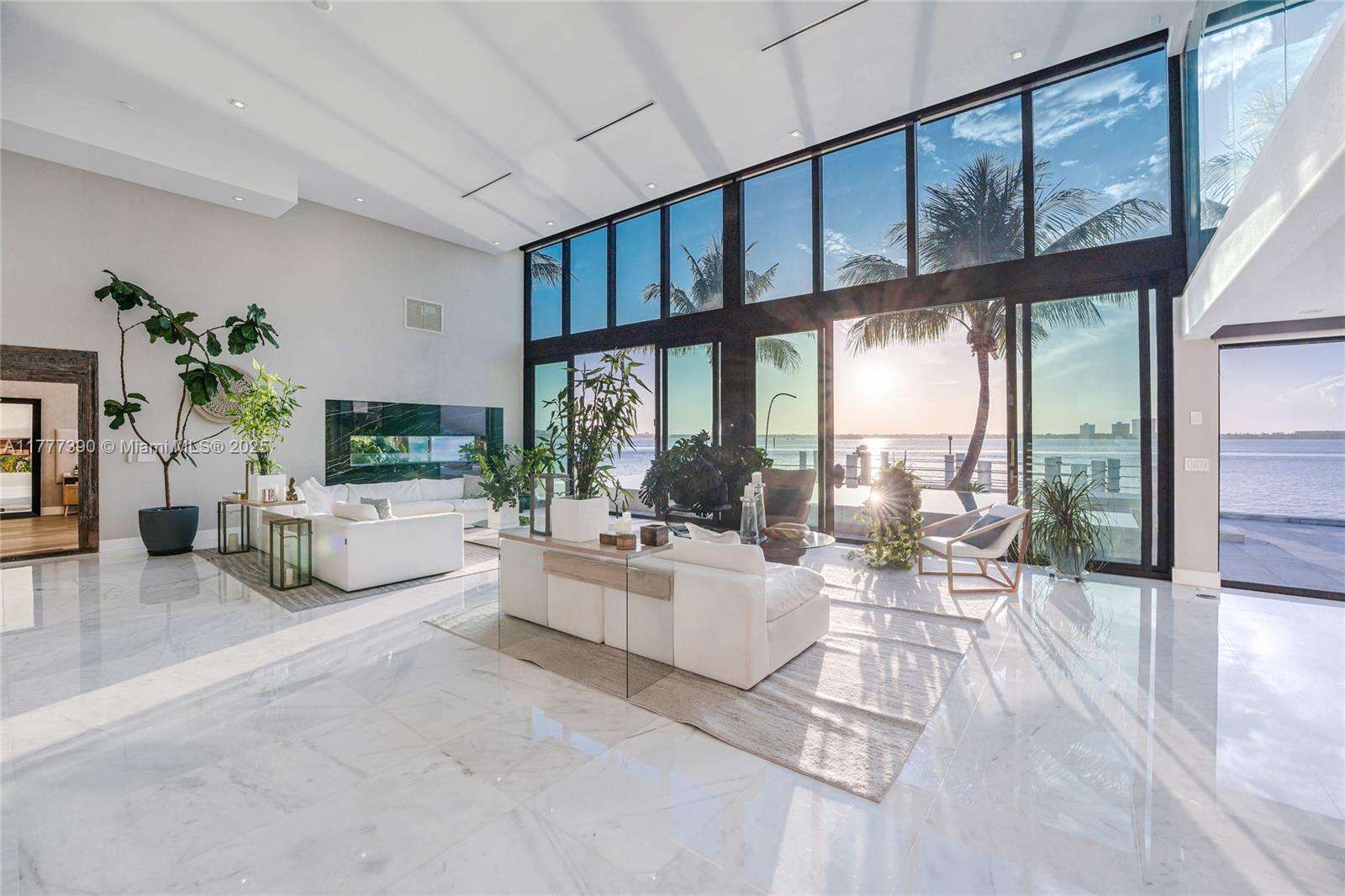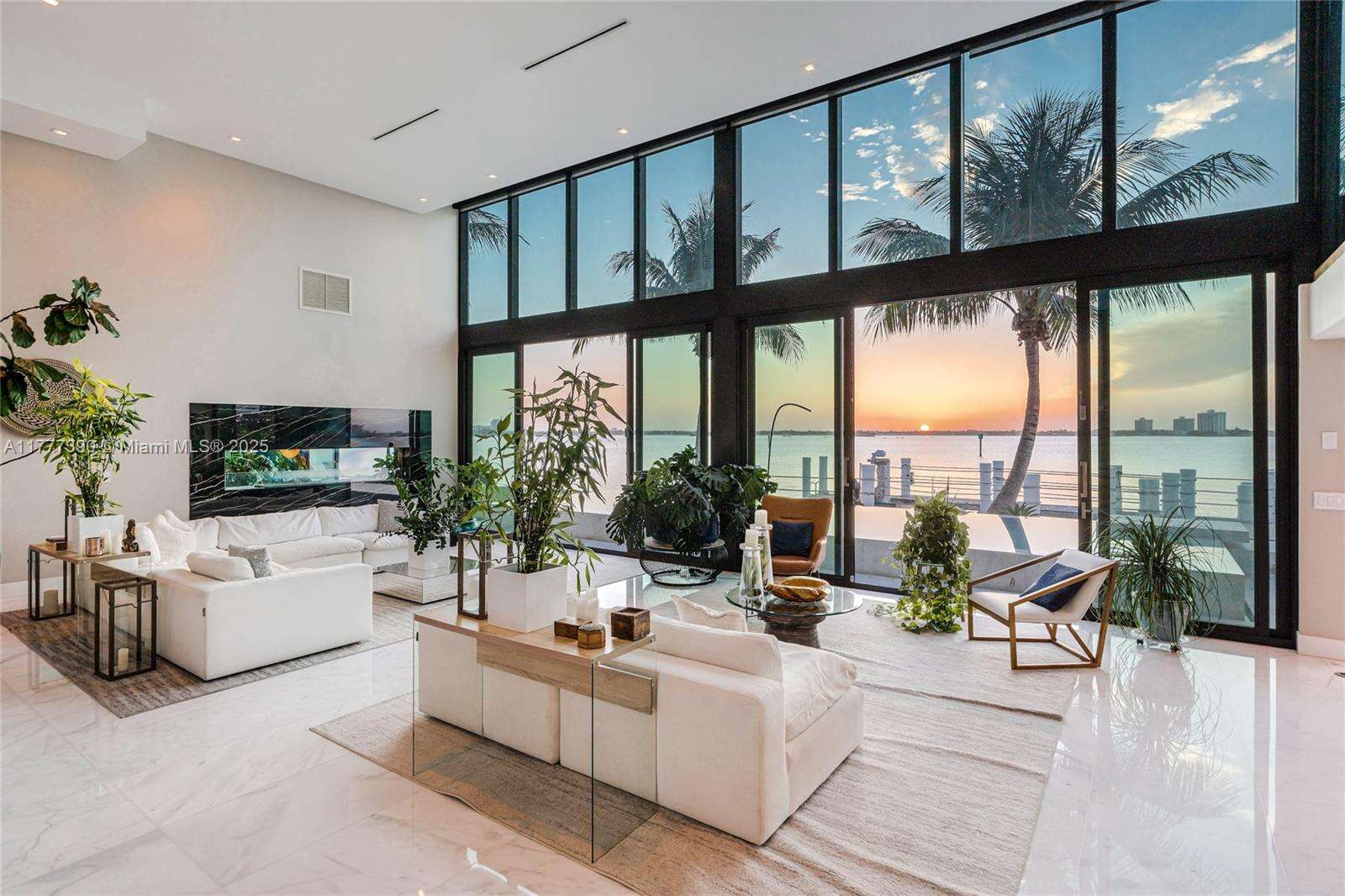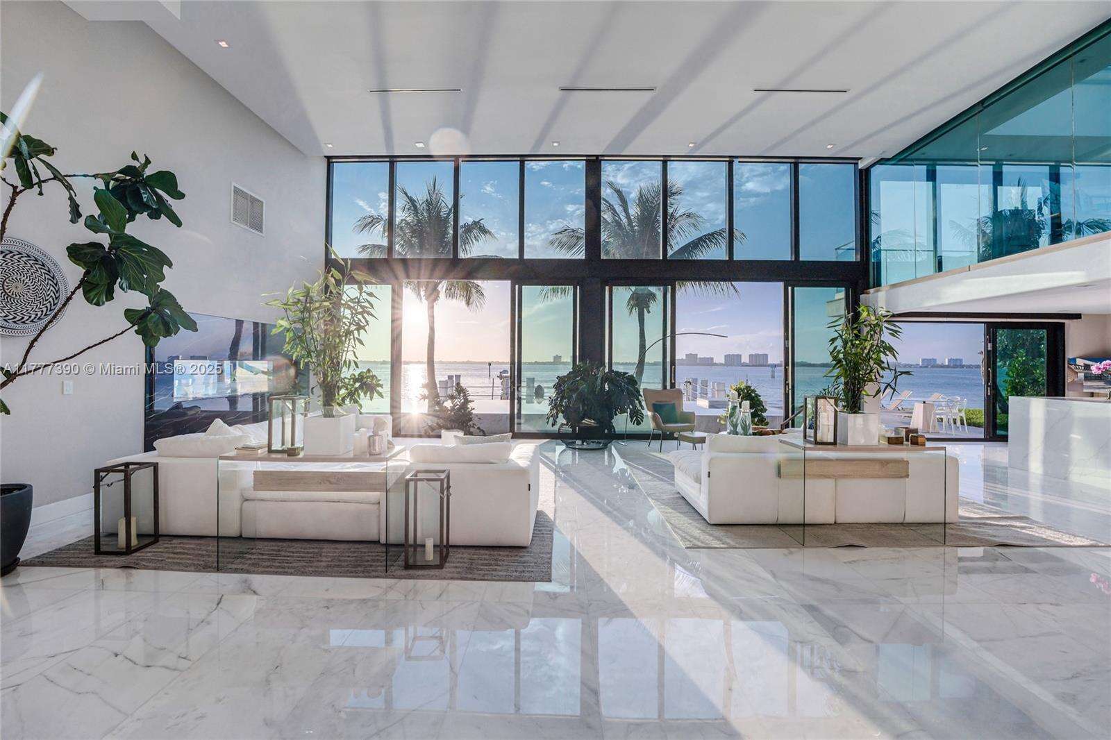 Welcome to an extraordinary waterfront retreat in the heart of the gated community of Biscayne Point Island, where stunning breathtaking wide water views capture unforgettable sunsets. Originally designed by renowned architect Barry Sugarman, this designer residence seamlessly blends modern waterfront living with a boater’s paradise. Featuring 98 feet of water frontage, this 5 bedroom, 6.5 bath residence is a sanctuary for boating enthusiasts, boasting a stunning primary suite, rare 16-foot-high ceilings, multiple entertaining spaces, and an expansive living room designed to impress. Thoughtfully crafted with sophistication and comfort in mind, the home exudes elegance and timeless charm.