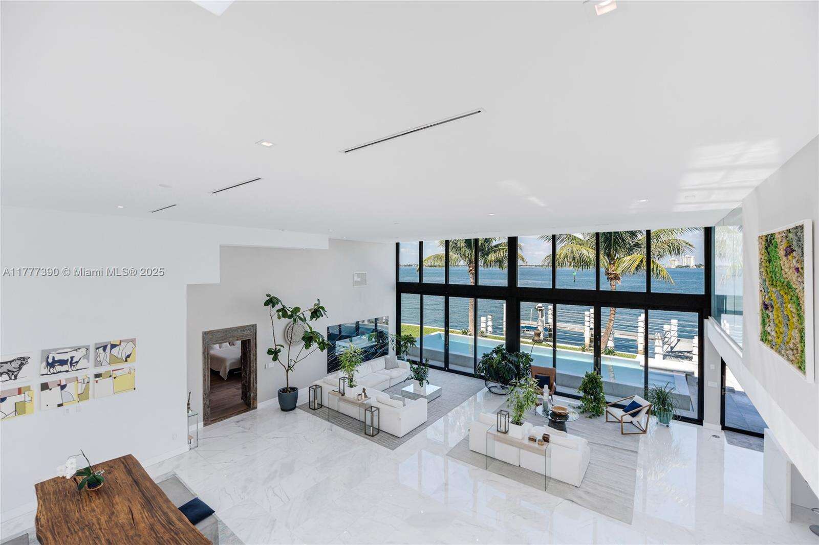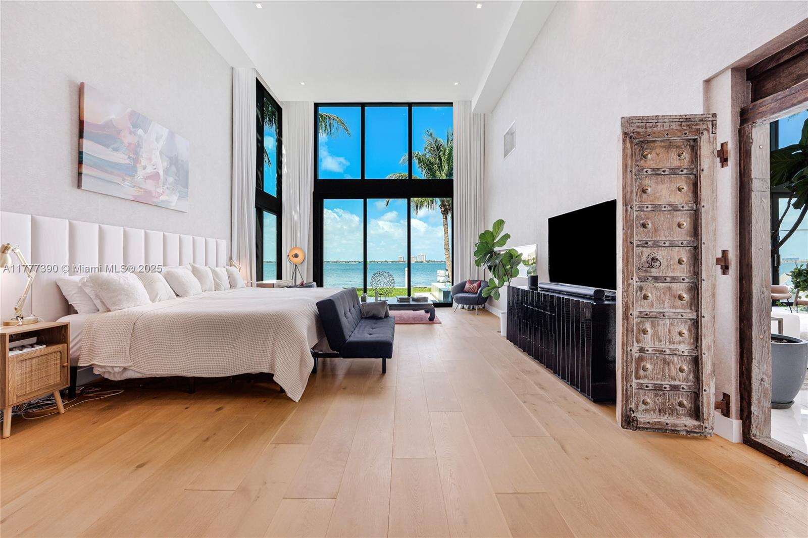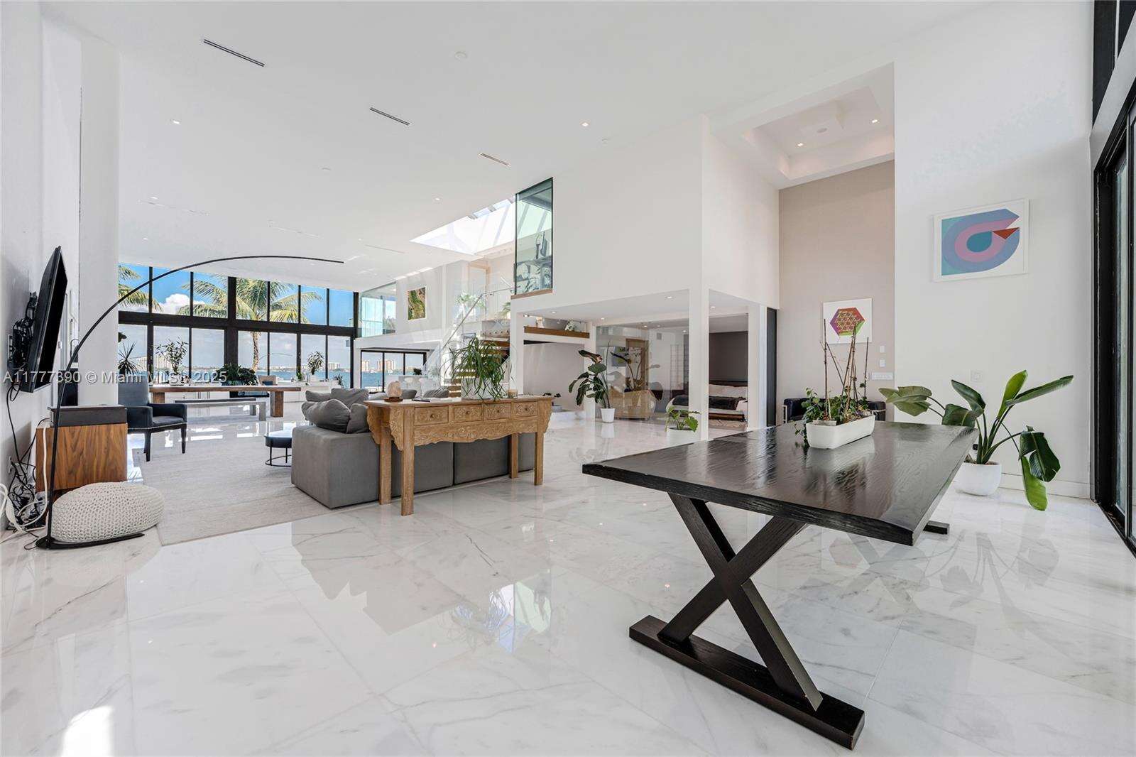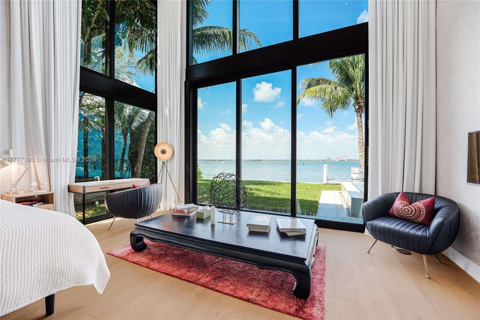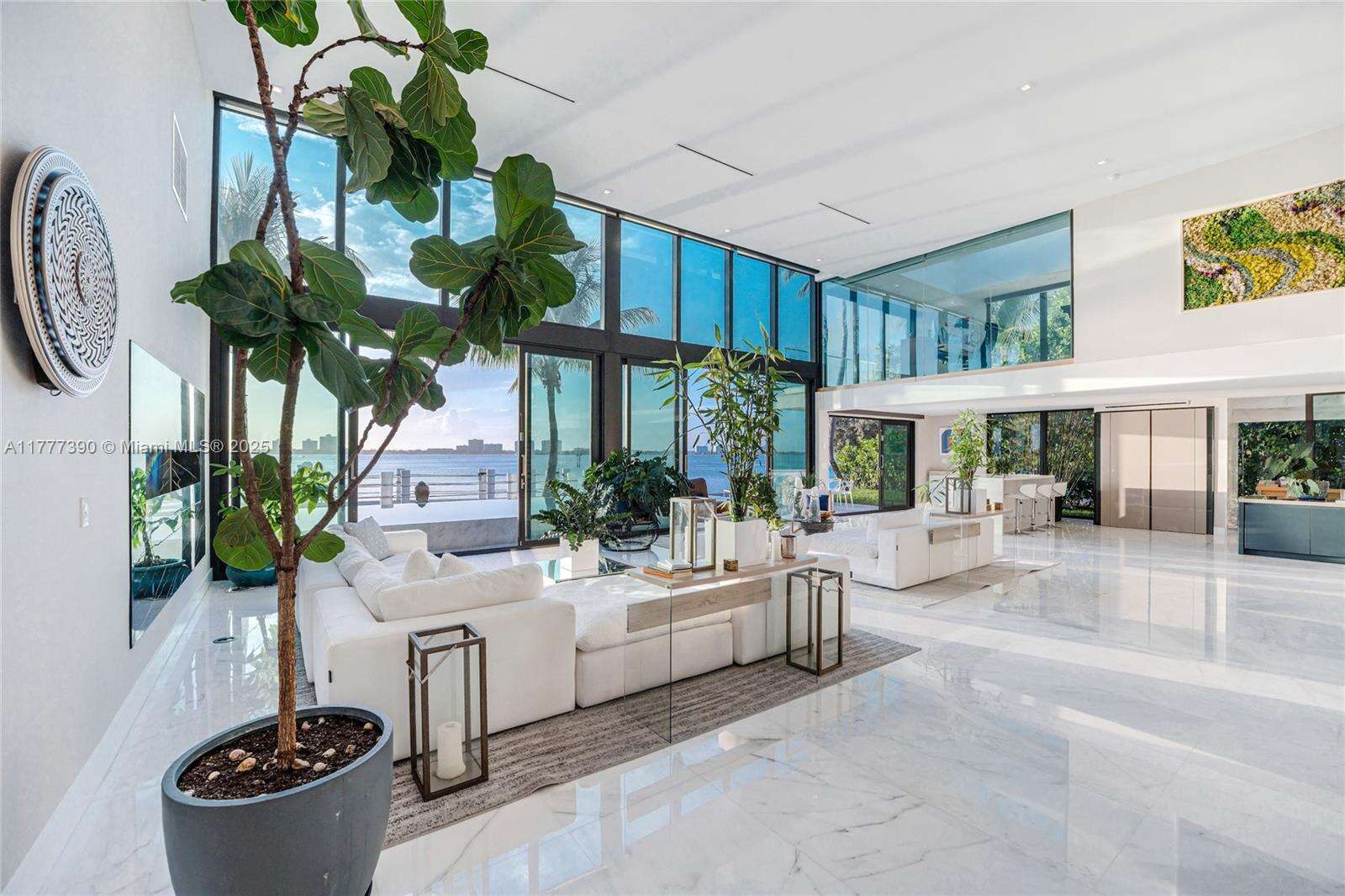 Welcome to an extraordinary waterfront retreat in the heart of the gated community of Biscayne Point Island, where stunning breathtaking wide water views capture unforgettable sunsets. Originally designed by renowned architect Barry Sugarman, this designer residence seamlessly blends modern waterfront living with a boater’s paradise. Featuring 98 feet of water frontage, this 5 bedroom, 6.5 bath residence is a sanctuary for boating enthusiasts, boasting a stunning primary suite, rare 16-foot-high ceilings, multiple entertaining spaces, and an expansive living room designed to impress. Thoughtfully crafted with sophistication and comfort in mind, the home exudes elegance and timeless charm.
