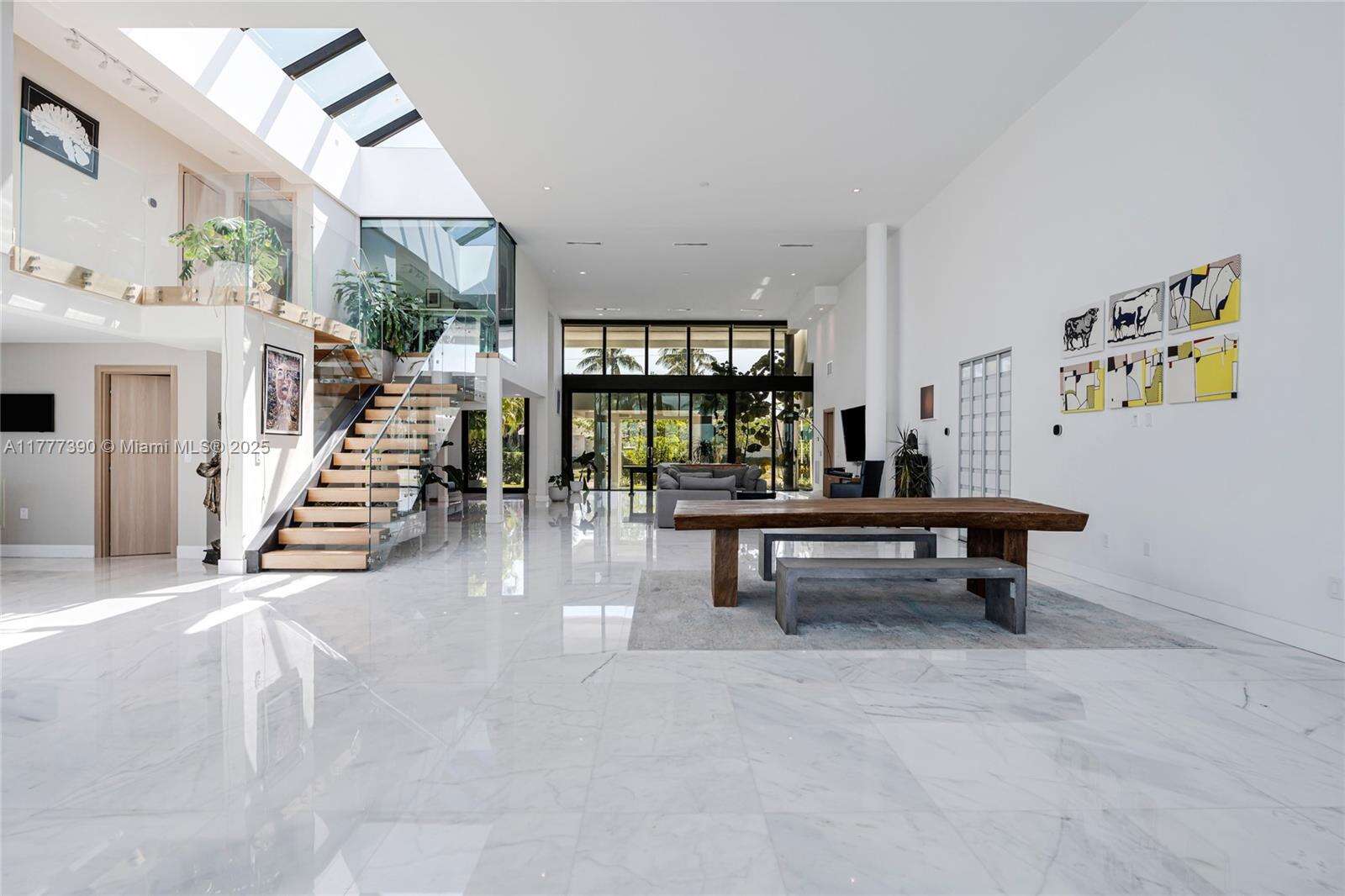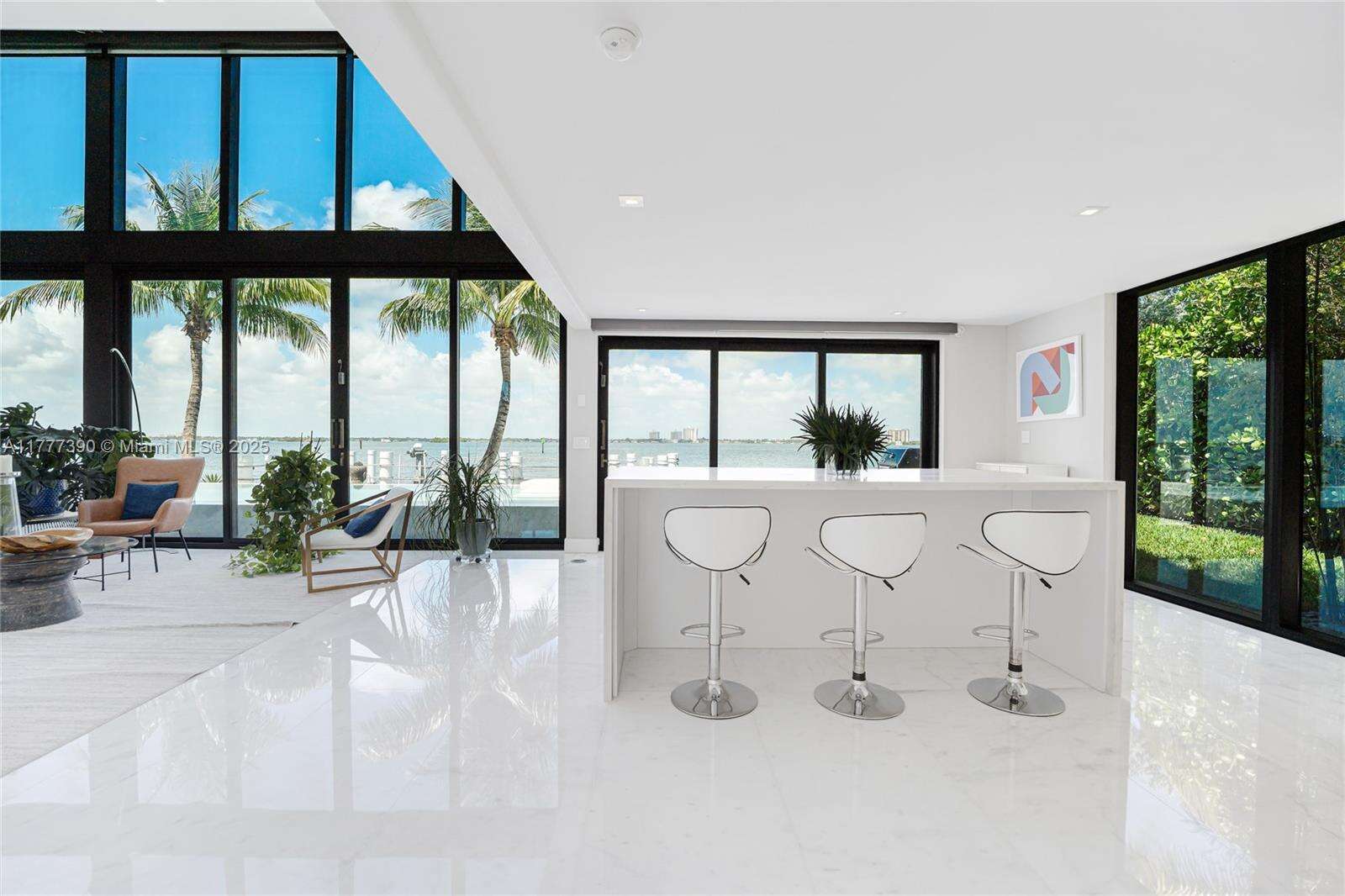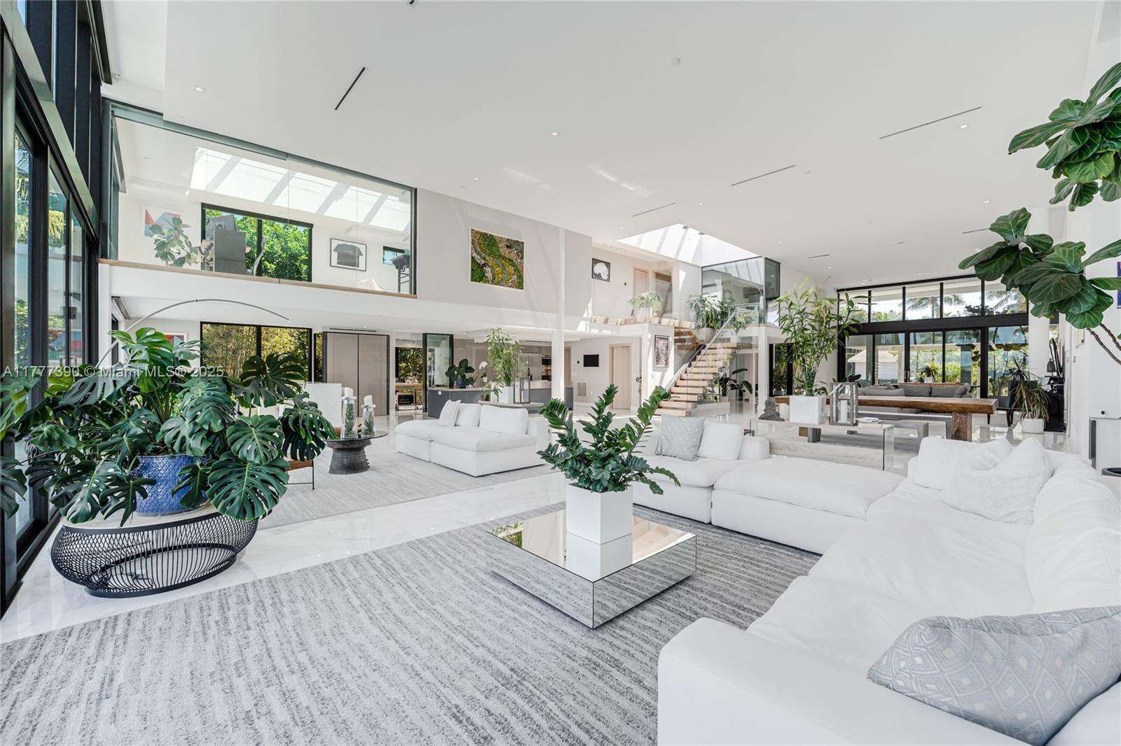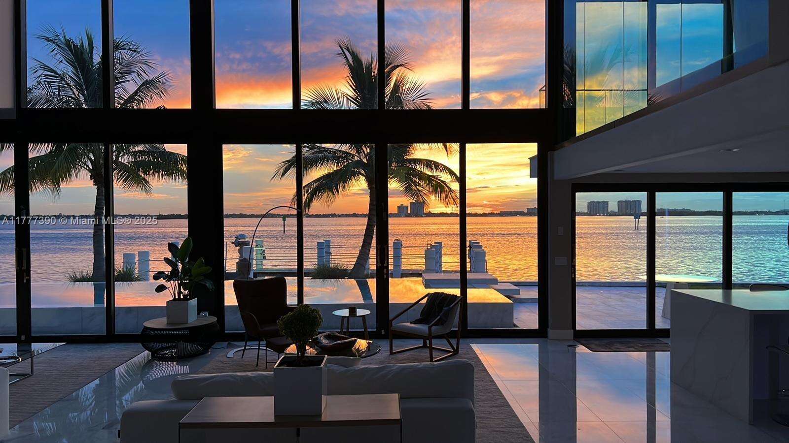 Welcome to an extraordinary waterfront retreat in the heart of the gated community of Biscayne Point Island, where stunning breathtaking wide water views capture unforgettable sunsets. Originally designed by renowned architect Barry Sugarman, this designer residence seamlessly blends modern waterfront living with a boater’s paradise. Featuring 98 feet of water frontage, this 5 bedroom, 6.5 bath residence is a sanctuary for boating enthusiasts, boasting a stunning primary suite, rare 16-foot-high ceilings, multiple entertaining spaces, and an expansive living room designed to impress. Thoughtfully crafted with sophistication and comfort in mind, the home exudes elegance and timeless charm.