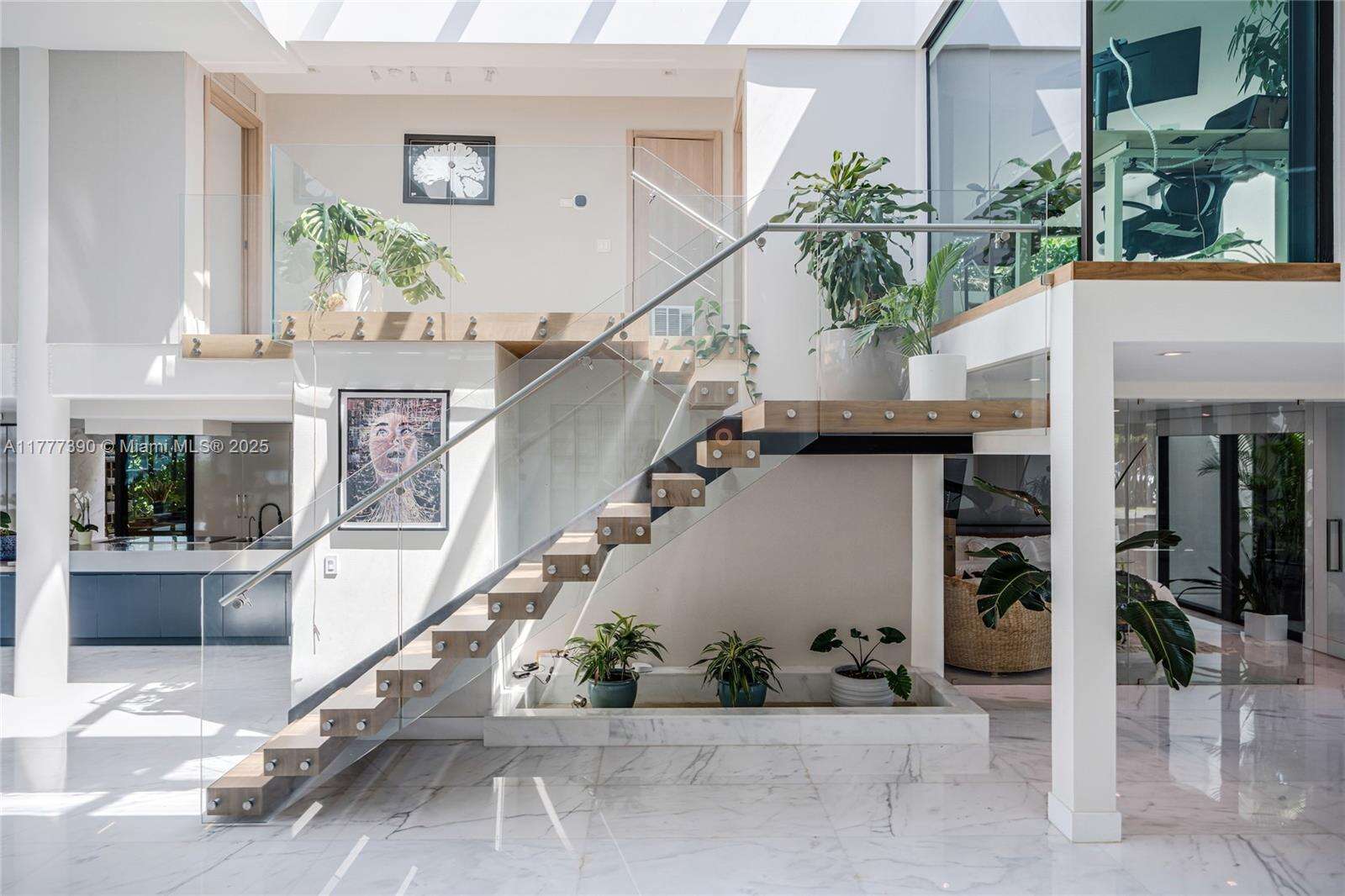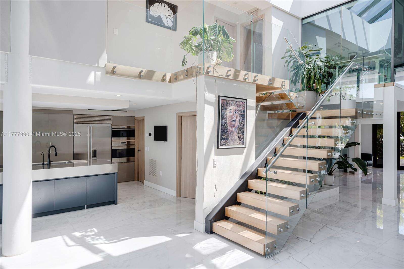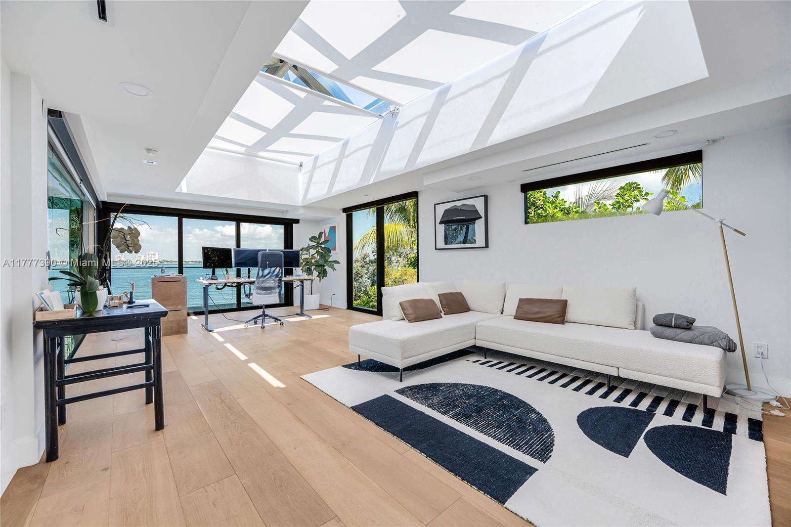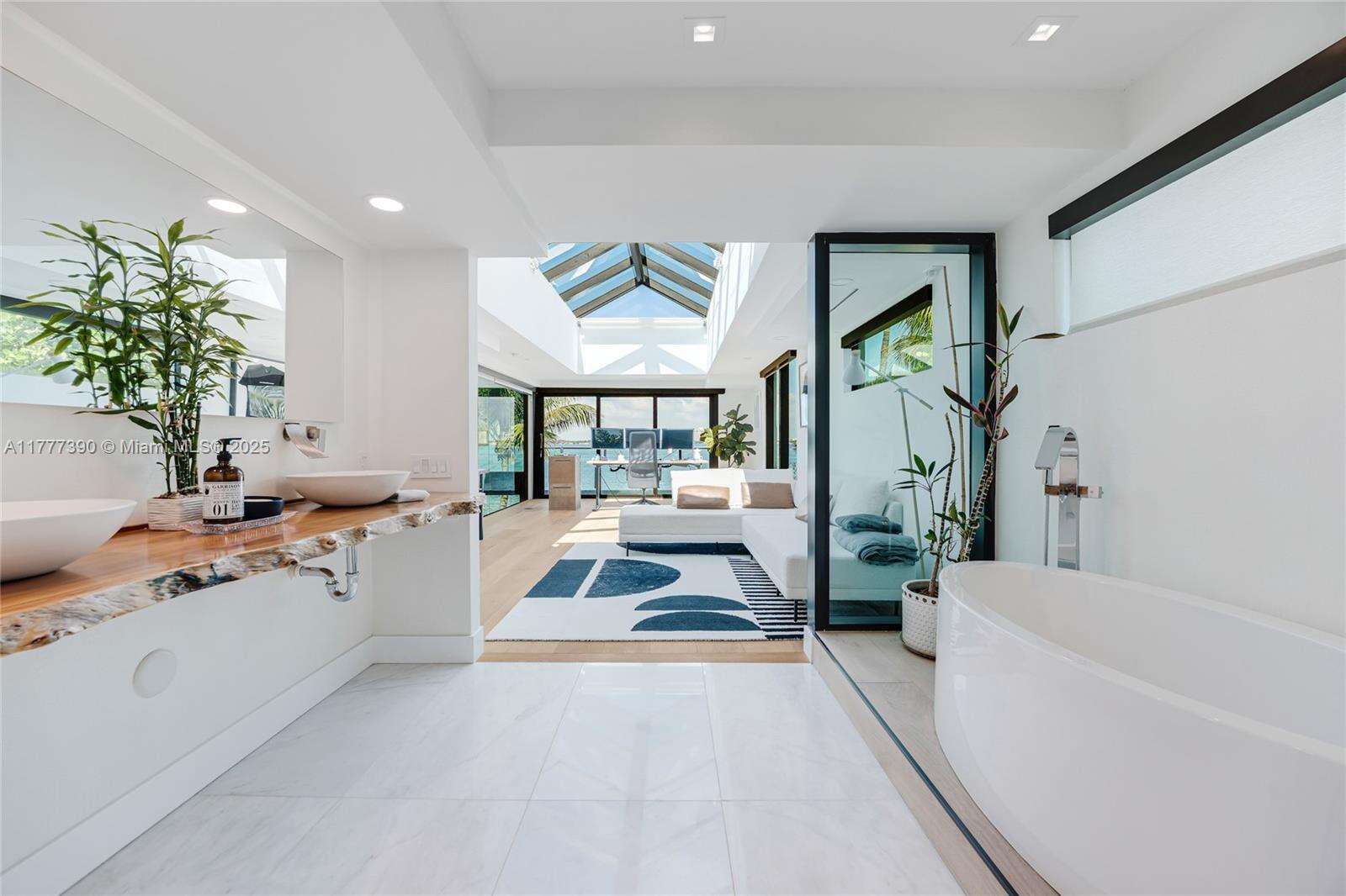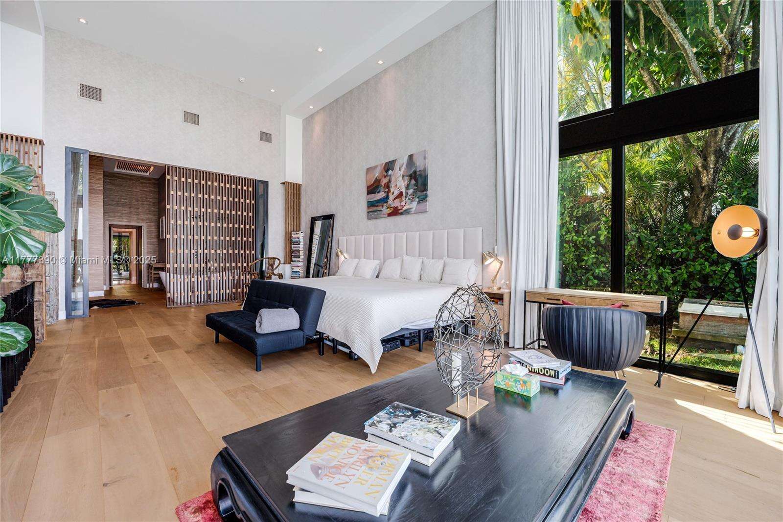 Welcome to an extraordinary waterfront retreat in the heart of the gated community of Biscayne Point Island, where stunning breathtaking wide water views capture unforgettable sunsets. Originally designed by renowned architect Barry Sugarman, this designer residence seamlessly blends modern waterfront living with a boater’s paradise. Featuring 98 feet of water frontage, this 5 bedroom, 6.5 bath residence is a sanctuary for boating enthusiasts, boasting a stunning primary suite, rare 16-foot-high ceilings, multiple entertaining spaces, and an expansive living room designed to impress. Thoughtfully crafted with sophistication and comfort in mind, the home exudes elegance and timeless charm.