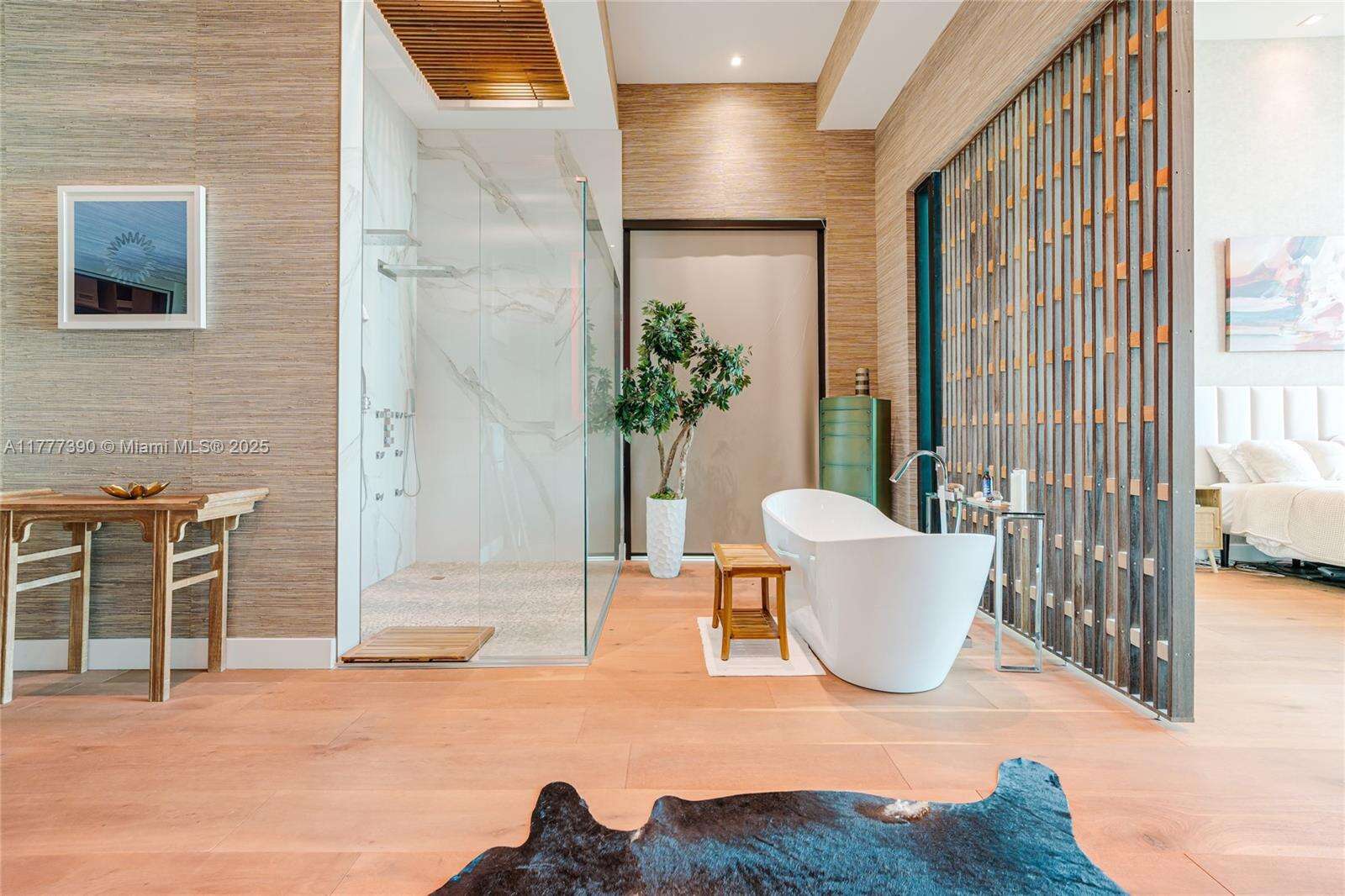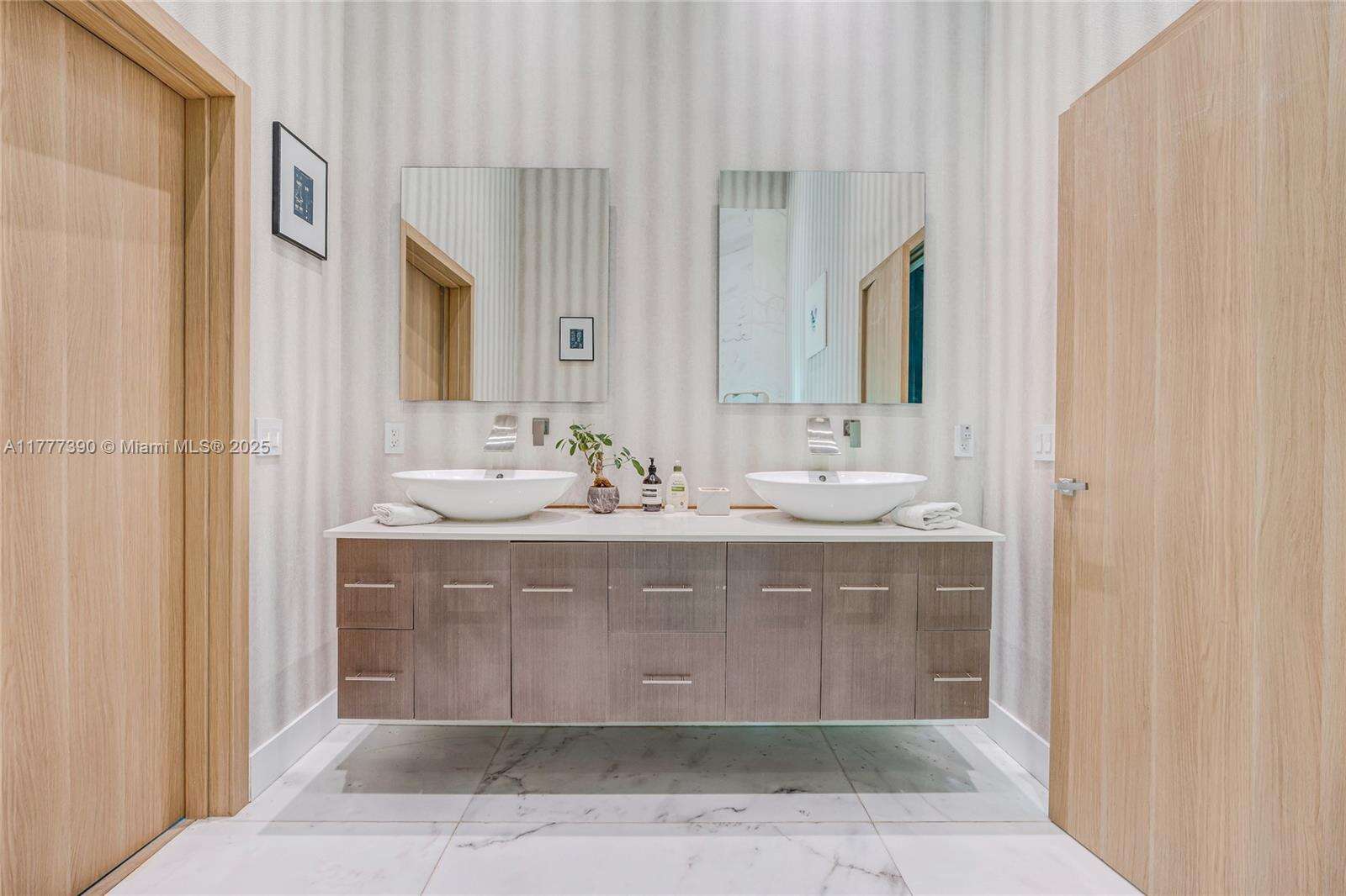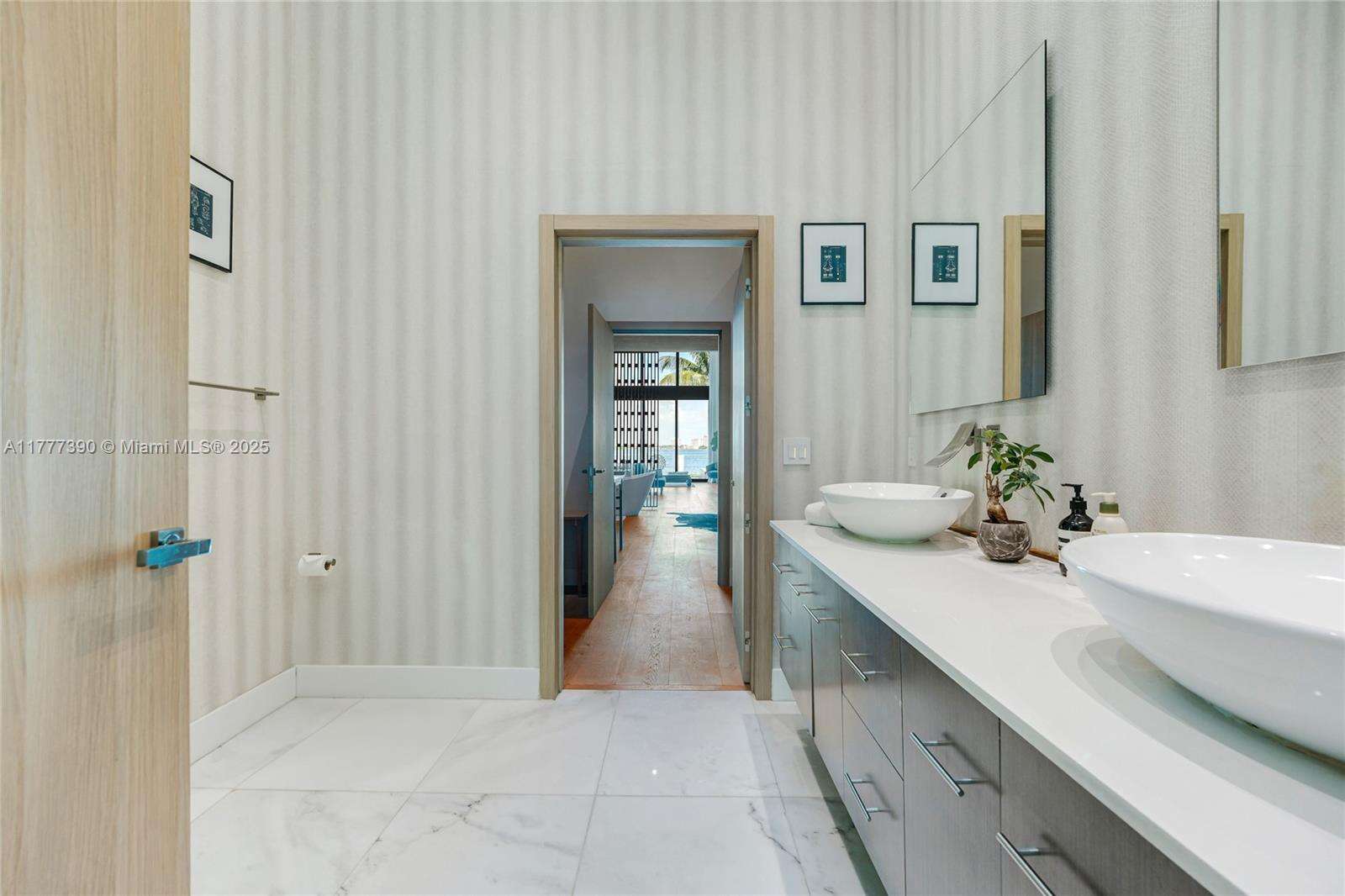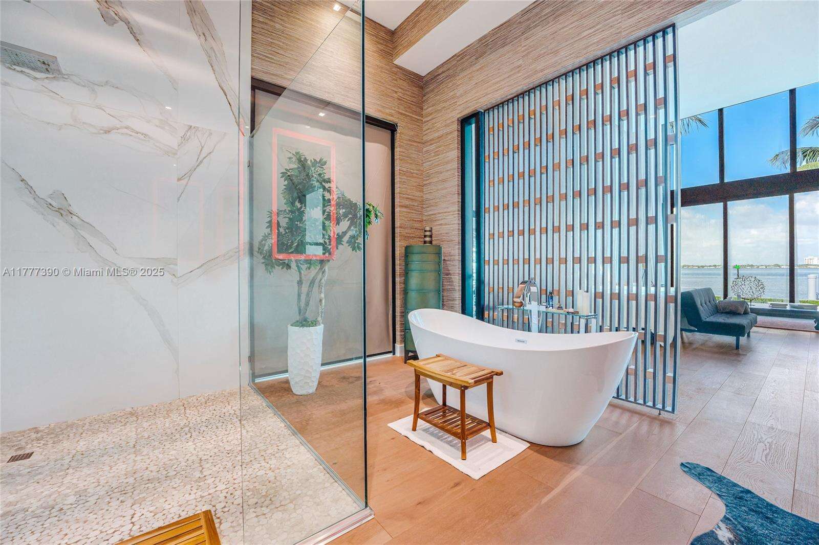 Welcome to an extraordinary waterfront retreat in the heart of the gated community of Biscayne Point Island, where stunning breathtaking wide water views capture unforgettable sunsets. Originally designed by renowned architect Barry Sugarman, this designer residence seamlessly blends modern waterfront living with a boater’s paradise. Featuring 98 feet of water frontage, this 5 bedroom, 6.5 bath residence is a sanctuary for boating enthusiasts, boasting a stunning primary suite, rare 16-foot-high ceilings, multiple entertaining spaces, and an expansive living room designed to impress. Thoughtfully crafted with sophistication and comfort in mind, the home exudes elegance and timeless charm.