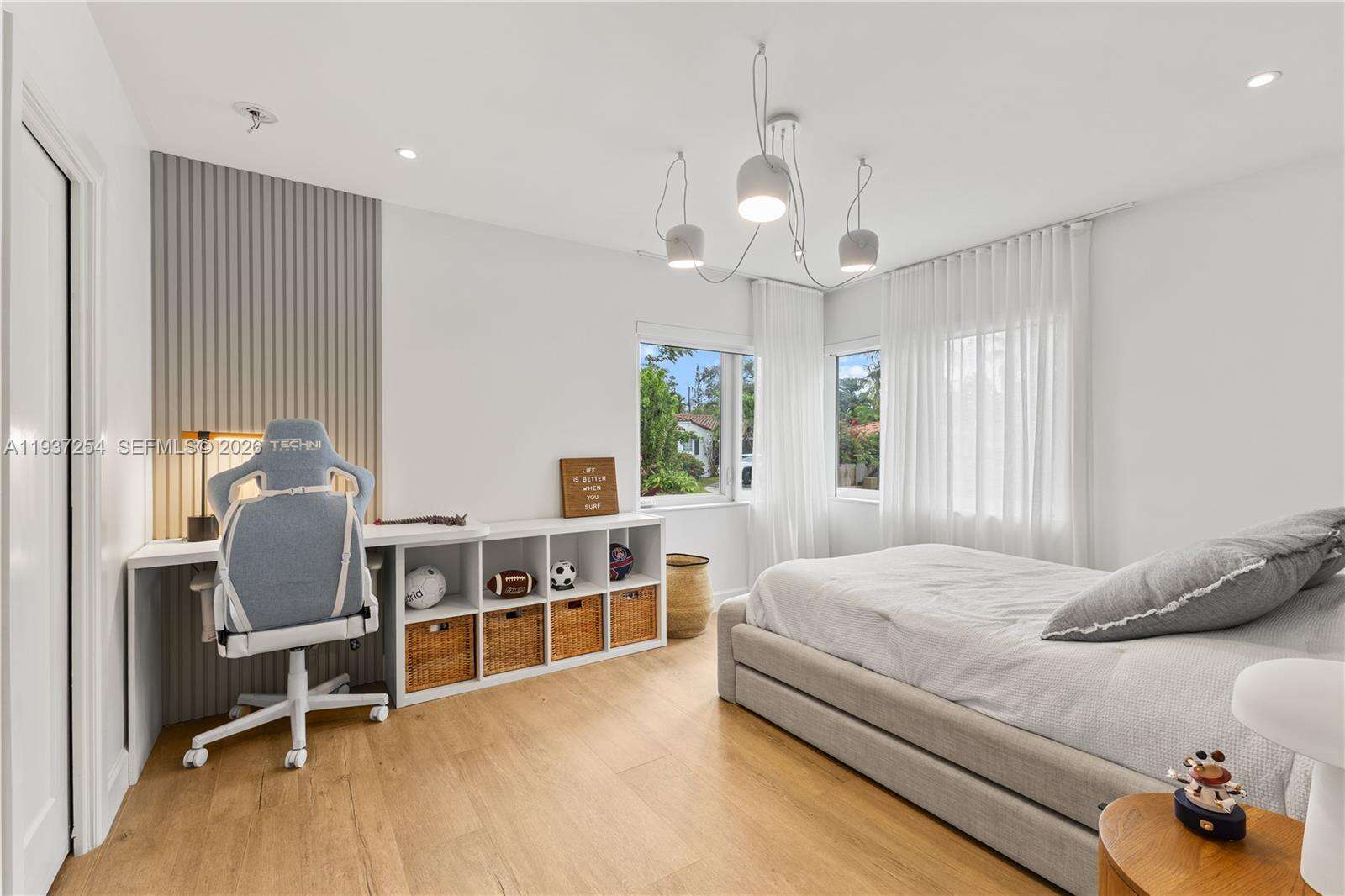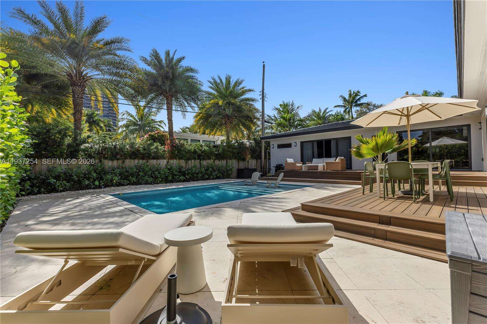 OPEN HOUSE - SUNDAY FEB 15th from 1 to 4 PM. Welcome to this beautifully renovated and fully furnished residence offering modern luxury with 4 bedrooms and 3.5 bathrooms. The home features porcelain tile floors, recessed lighting, custom millwork, and bespoke closets throughout. Originally a 1,300 SF home, it has been thoughtfully expanded to 2,478 SF, including a stunning 600 SF primary suite. The addition also incorporates a formal dining room, laundry room, a fourth bedroom with en-suite bath, and a convenient cabana bath. The chef’s kitchen is equipped with Thermador appliances, custom cabinetry, and premium finishes. Additional upgrades include central A/C with two new units, new propane tank, new hot water heater, and updated PVC plumbing. The exterior offers a private backyard oasis with a new heated pool, new deck, refinished semi-circle driveway, additional side driveway, new landscaping, tiled front porch, and a new privacy fence. The property is pre-wired for a generator. Offered fully furnished, the home includes a curated selection of high-end furniture from Pottery Barn, West Elm, Crate & Barrel, and other top-tier brands, allowing for a truly turnkey, move-in-ready experience.The owner thoughtfully designed and renovated the entire home for his family, including one son and one daughter. Due to an unexpected company relocation, the property is now being sold as-is and fully furnished.