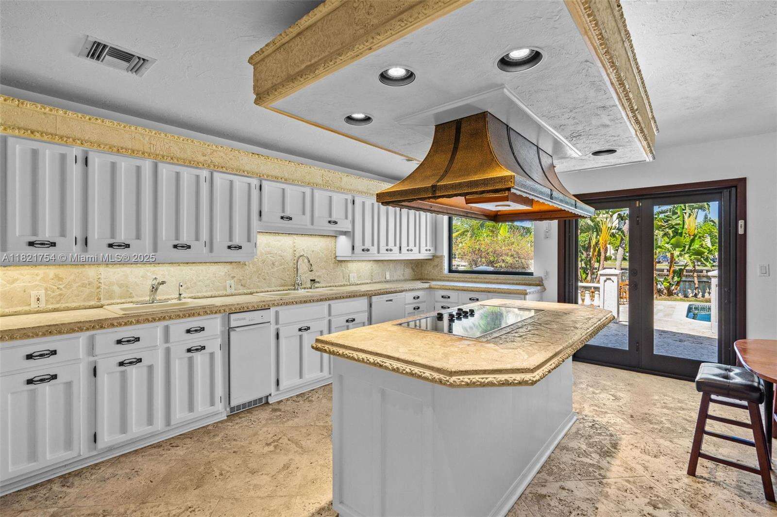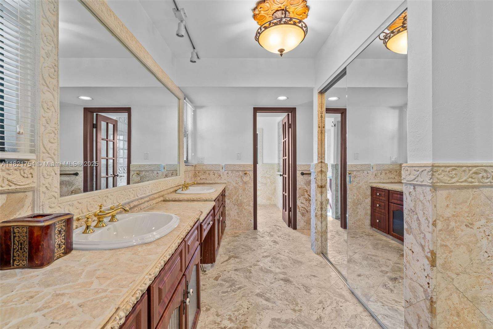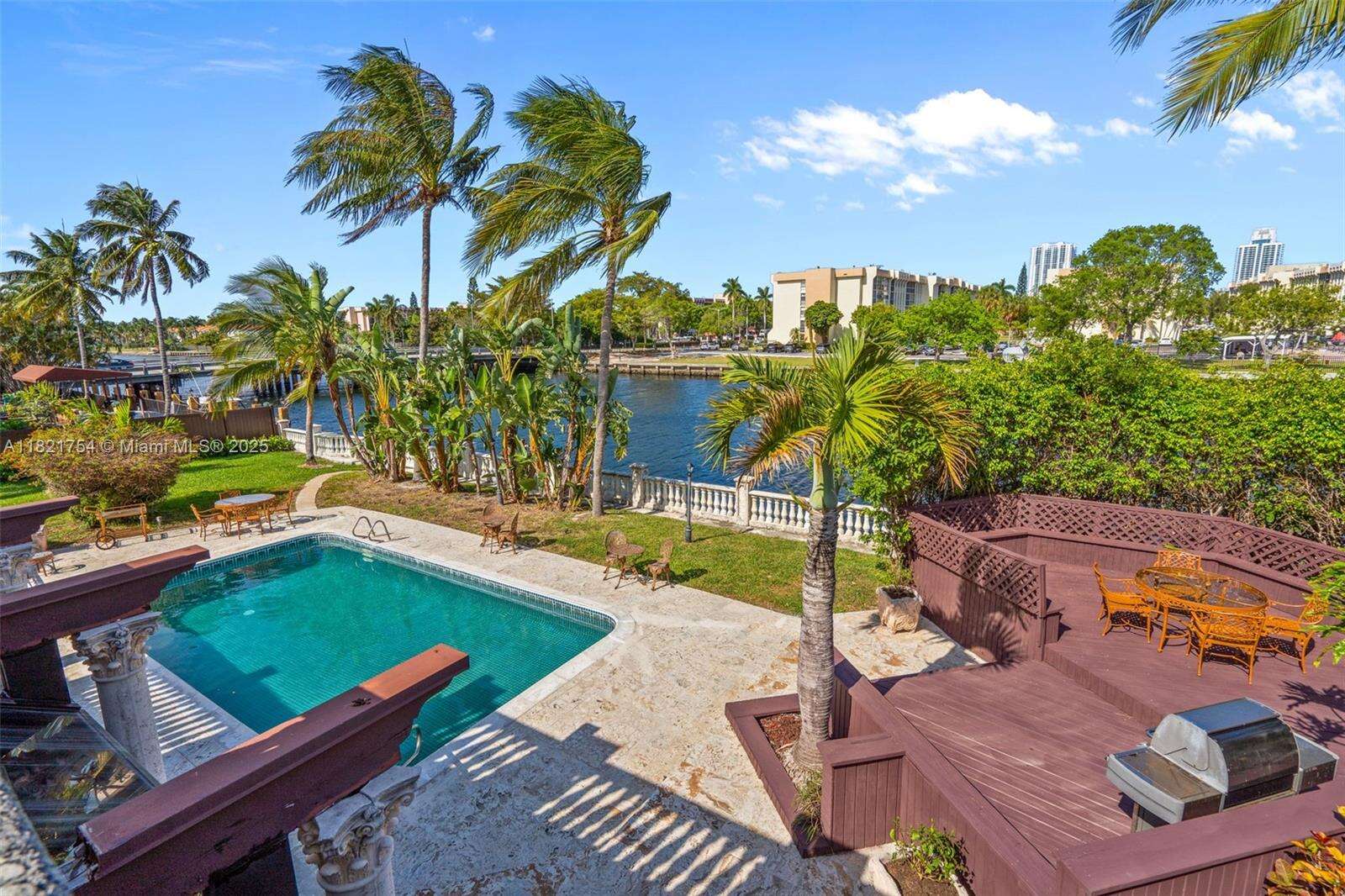 BIGGEST LOT SIZE IN THE NEIGHBORHOOD, Set on a 1/2 acre lot with 143 ft of waterfront. Luxury living in this Waterfront Mediterranean Estate in prestigious Hallandale Beach. The Estate offers direct ocean access via a 30-ft deep, 250-ft wide canal and a private dock for a yacht. Perfect for boaters, golfers, and beach lovers, just steps from the renowned Shell Bay Golf Course formerly known as Diplomat. Enjoy resort style amenities: A pool, hot tub, steam room, sauna, and lush landscaping. The home features a gated entrance, 5 suites , 7 bathrooms, 3 car garage, circular driveway, oversized master suite with dual walk-in closets, and a chef’s kitchen with stunning water views. The executive office/library completes this dream home.