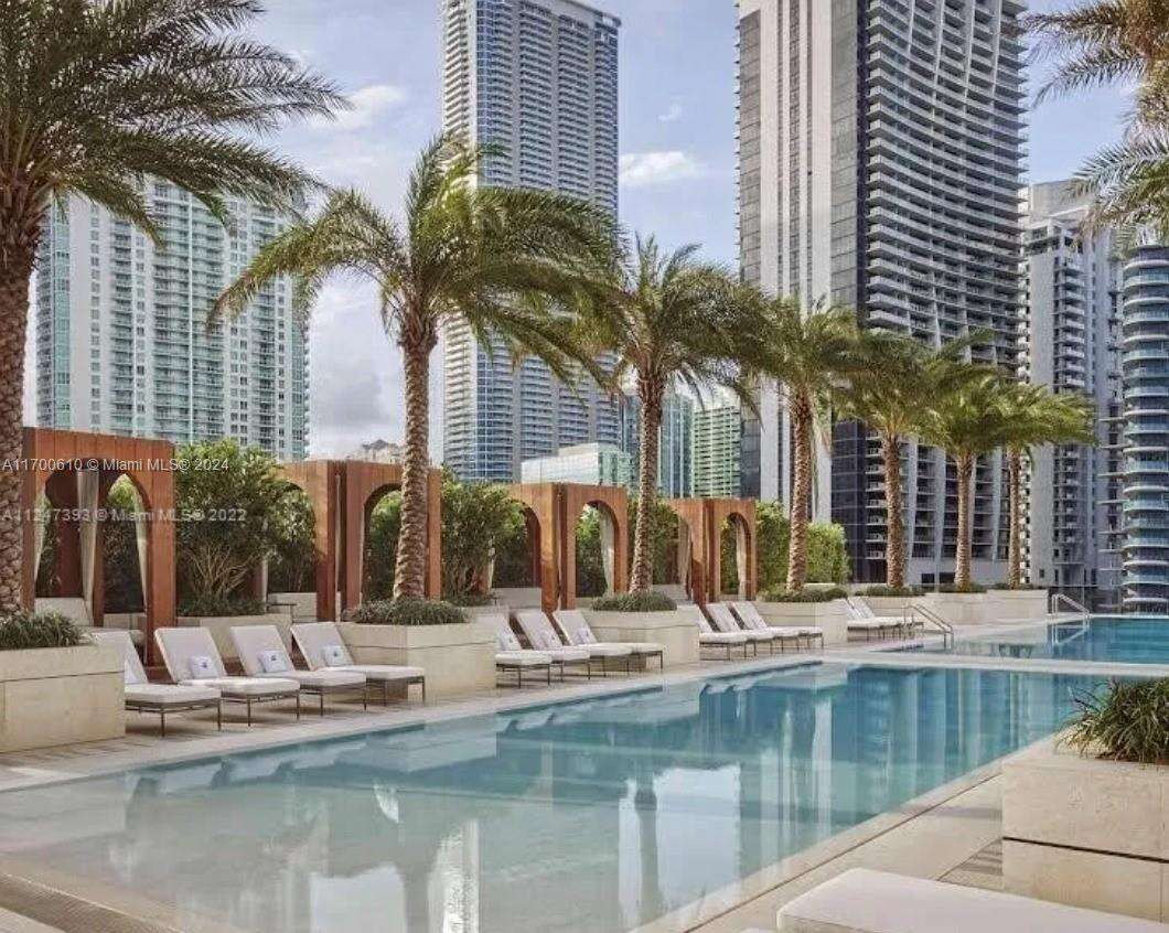 Turn-key fully furnished corner unit on the 45th floor, with private elevator access. Enjoy city and Miami River views in this 3 bed /3 bath condo. This unit features Italian cabinets, Sub Zero / Wolf appliances, built out master closet, motorized shades, and floor-to-ceiling glass windows leading to a spacious wrap around balcony. SLS Lux Brickell residents, in addition to having exquisite interior finishes, enjoy a host of amenities. The SLS Lux Brickell amenities include three pools, two hot tubs, a poolside bar, BBQ area with summer kitchen, a lighted tennis court, a fitness center, a full-service spa, full-service concierge service, two club rooms, children’s playroom, and more.