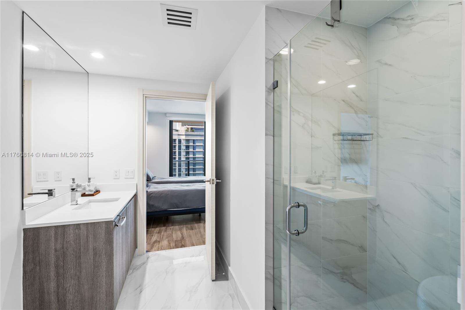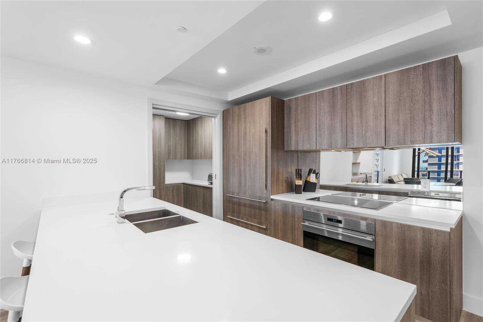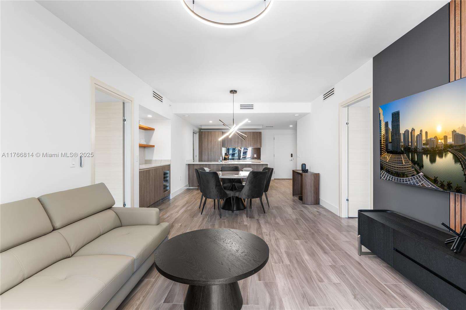 Fully remodeled 2 Bed + DEN / 2 Bath residence at SLS Lux featuring a private foyer, modern design with wood-accented walls, an expanded kitchen with custom cabinetry, and brand-new stainless steel appliances. Enjoy west-facing views of Brickell, the Miami River, and glimpses of the bay—perfect for watching the sunset. Located directly across from Brickell City Centre, steps from world-class dining, shopping, and the vibrant Brickell nightlife.