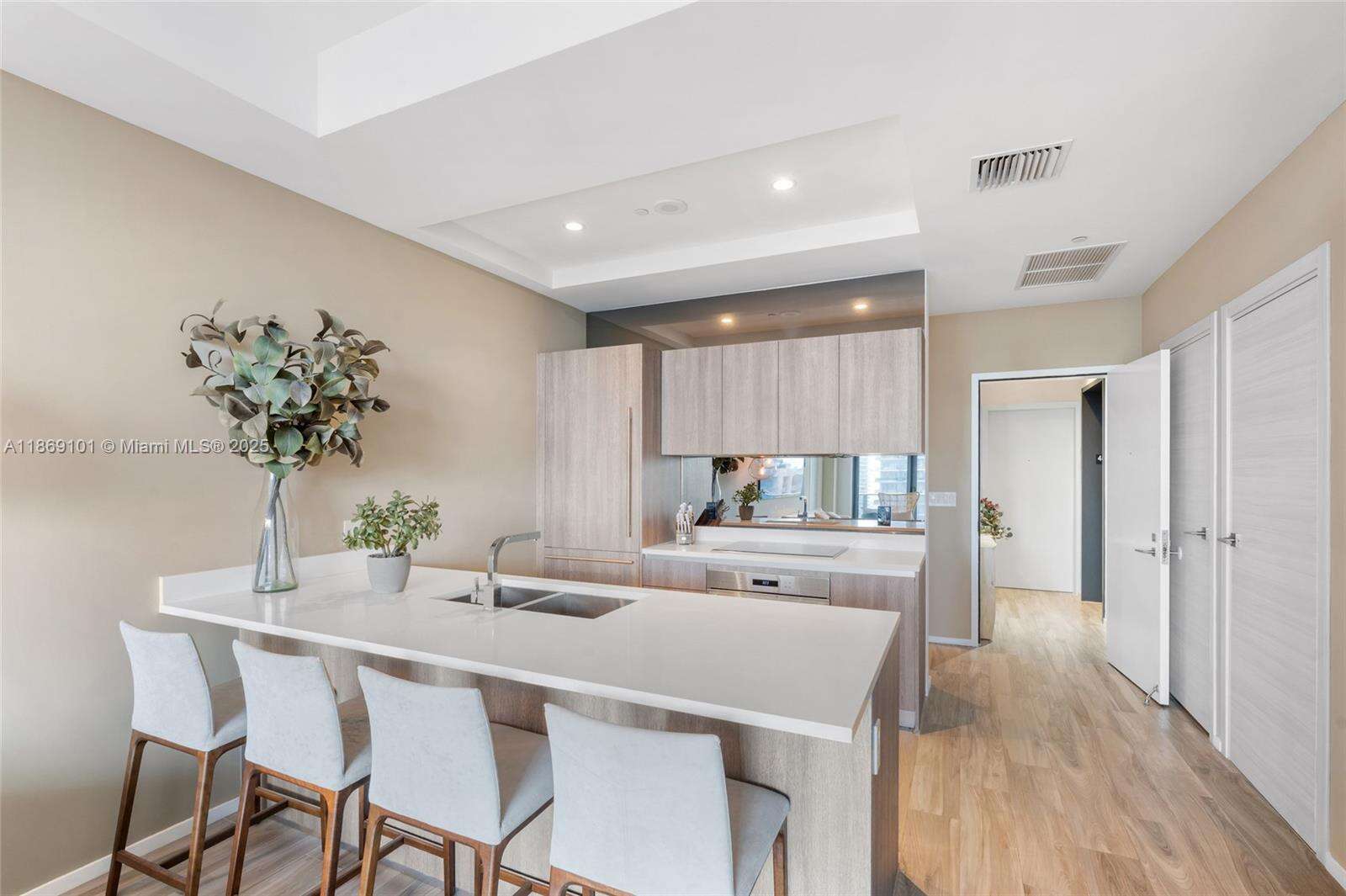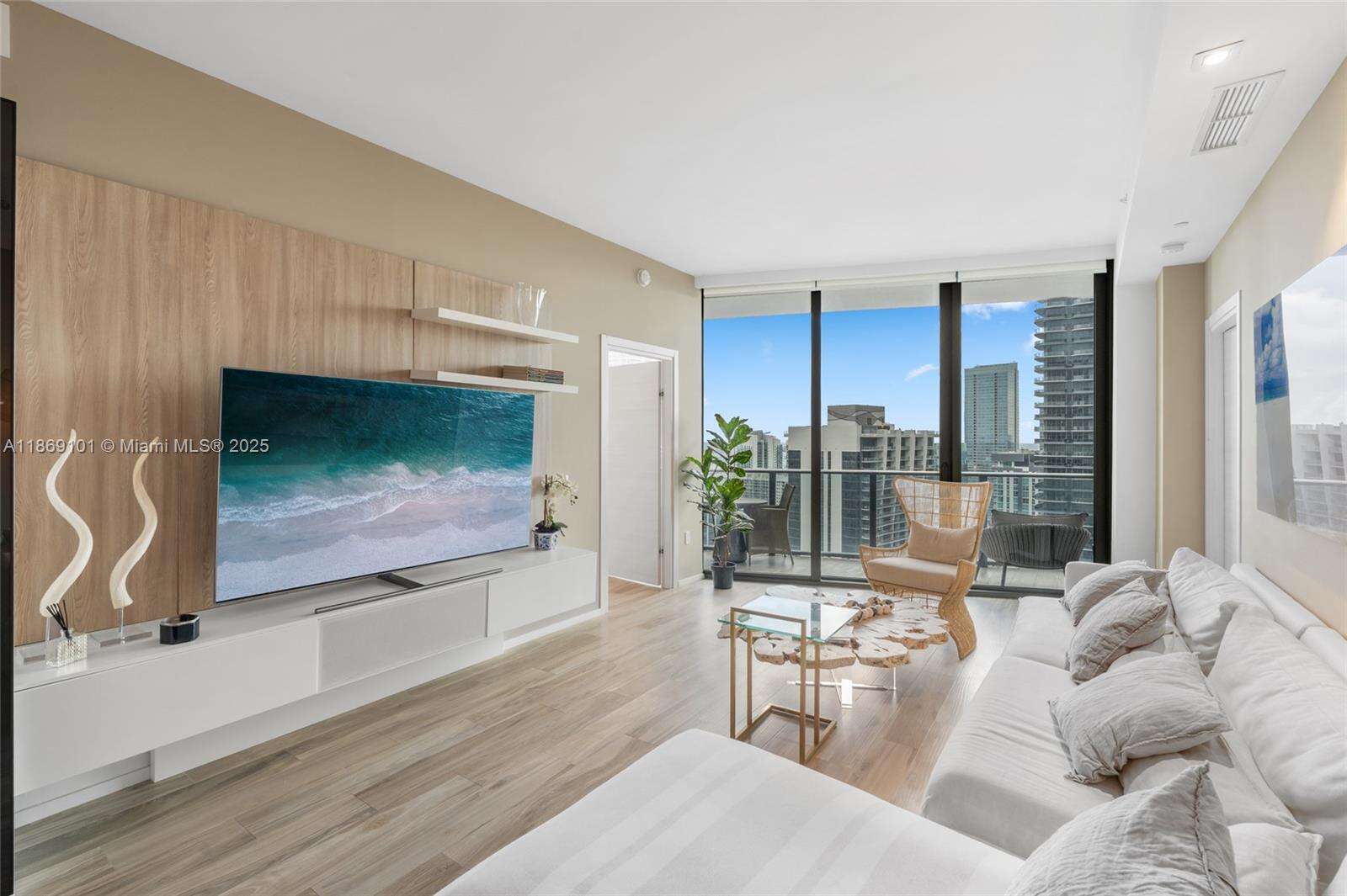 A rare opportunity: one of the most sought-after lines at SLS Lux Brickell, perfectly blending water and skyline views. This move-in ready 2-bed+den, 2.5-bath residence may come fully furnished with $150K+ in designer Artefacto pieces and custom cabinetry throughout. Enter by private elevator into a sleek, upgraded home with Sub-Zero & Wolf kitchen, smart-home system, and expansive balcony. Wake up to stunning water views from both bedrooms and enjoy the Miami skyline by night. Centrally located in Brickell, SLS Lux offers world-class amenities: 2 pools, full-service spa, fitness center, rooftop sky lounge, tennis & basketball courts, cava lounge, and poolside dining. Steps from premier shopping, dining & entertainment. Your turnkey Brickell lifestyle awaits.