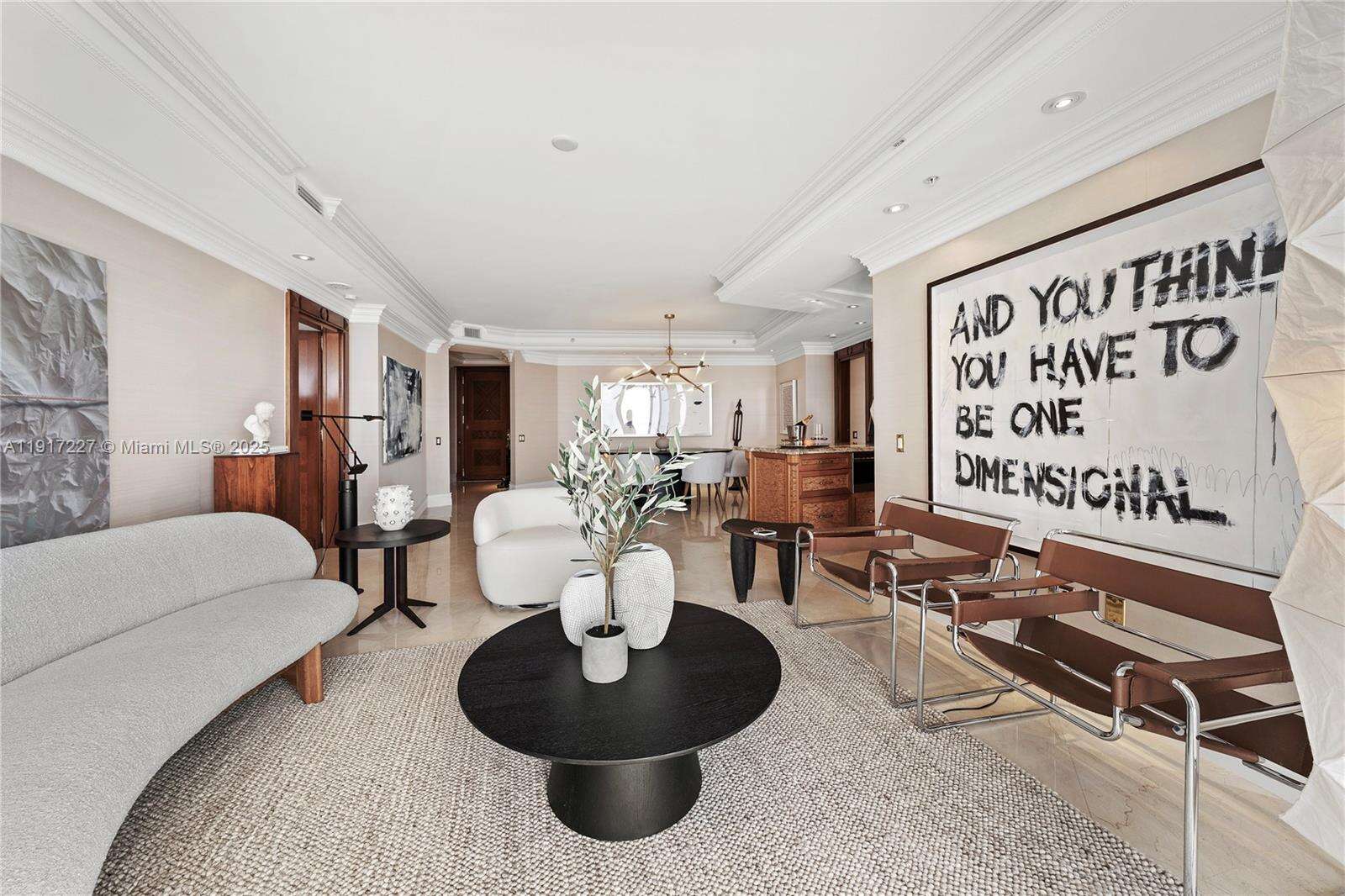 Beauty on the Bay! Situated in the easternmost corner of exclusive gated Brickell Key, this custom residence redefines modern coastal elegance. Panoramic unobstructed direct bay & ocean views from every room & the expansive balcony create a mesmerizing backdrop for cosmopolitan living. Completely reimagined with over $1M in curated upgrades, every inch reflects world-class craftsmanship—from the silk wall coverings & light marble floors to custom Italian Francesco Molon rosewood doors. The chef’s kitchen features premier European appliances & tailored custom cabinetry, while serene bedrooms offer the ultimate privacy & comfort. Two Tequesta delivers a private, resort-inspired lifestyle on one of Miami’s most exclusive islands. Residents enjoy a full suite of premier amenities, including a state-of-the-art fitness center, racquetball and squash courts, waterfront pool and spa, 24-hour concierge, valet, club room, and a beautifully designed two-story lobby that sets the tone for luxury living. Brickell Key offers a serene, secure setting with waterfront walking paths and lush green spaces—just moments from Brickell and the Financial District, known as the “Wall Street of the South.” Steps from top dining: the new Mandarin Oriental, Cipriani, Delilah, Aozora/Amzonico, plus endless cafés, lounges, and luxury shopping.