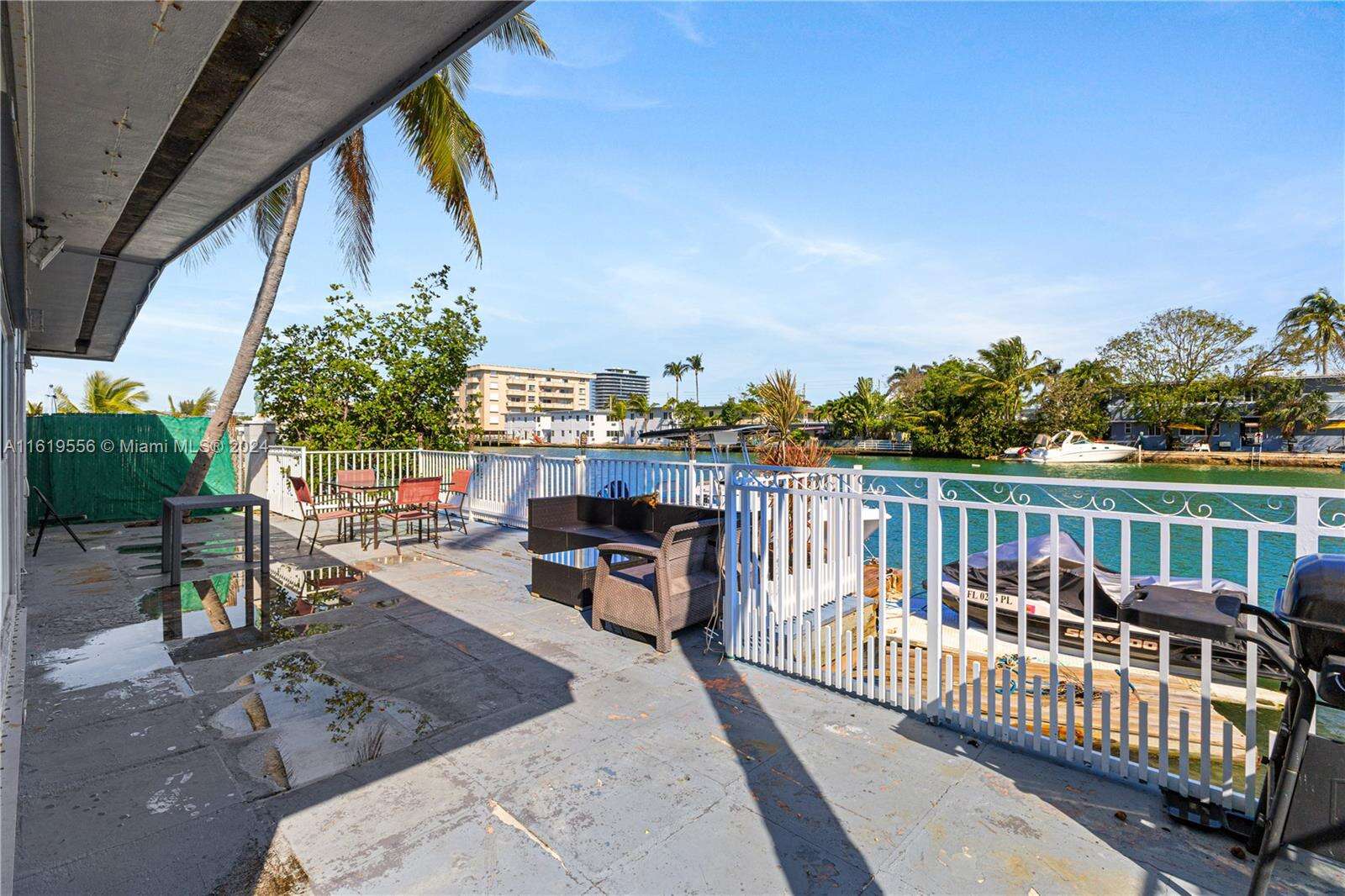 Waterfront Miami Beach development potential! Currently a duplex this 2-unit multi-family development offers waterfront views, a private dock with one fixed bridge access to the ocean. The neighborhood is undergoing redevelopment with many new high rise and retail buildings under construction nearby on the 79th causeway and $2 billion investment on nearby Ocean Terrace. Current rent roll below market $7750. Buildable square footage max FAR 1.25, which allows 7,188 sq feet living and five stories high. There is city notice requiring the owner to permit and build a common area laundry which the seller says will cost $25,000 but seller says this is a buyer responsibility to build if they keep the structure, but $0 cost if they knock and build new. Seller will only accept full price offer.