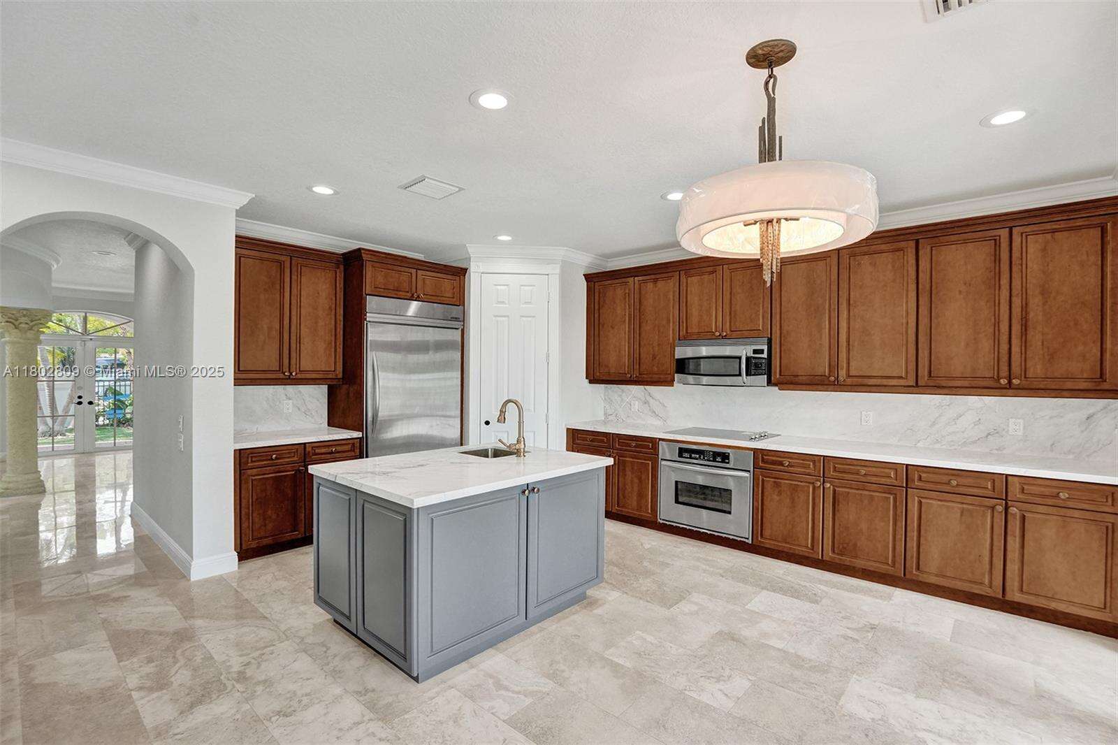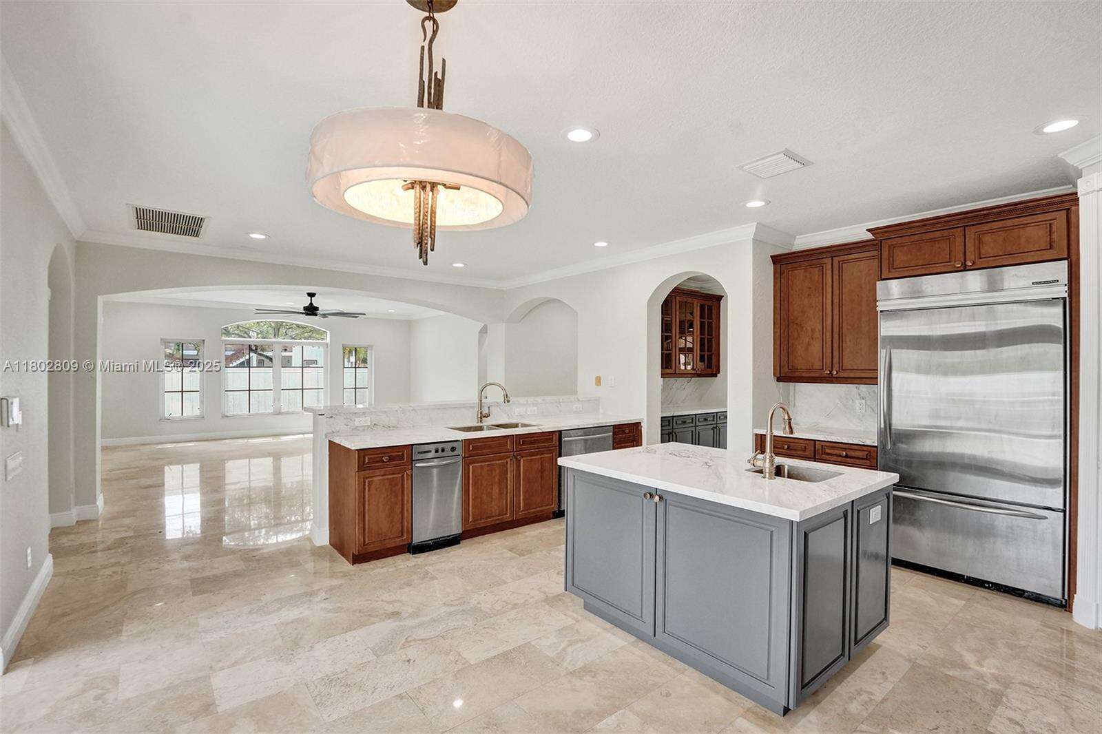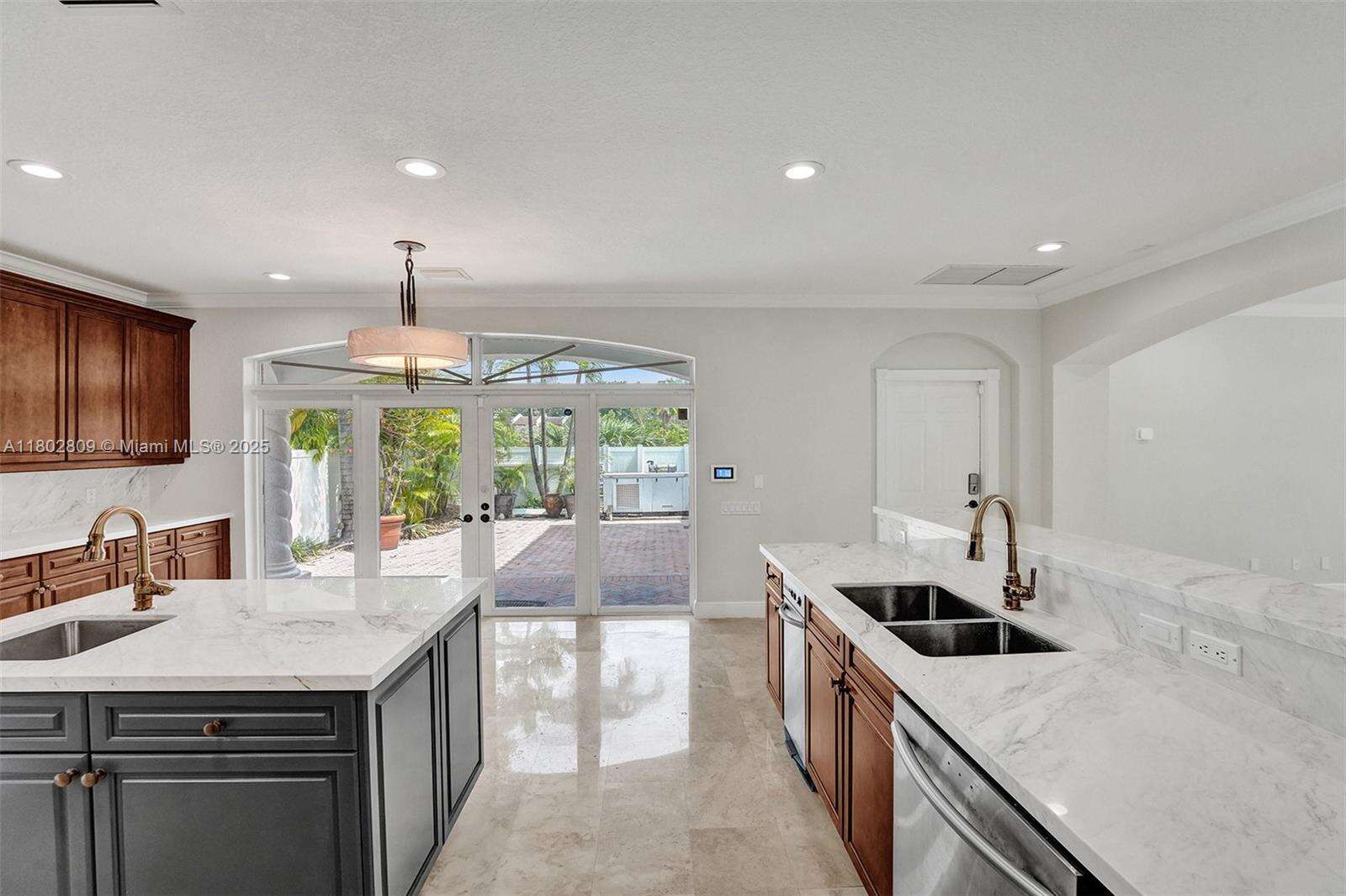 Just steps from the vibrant Las Olas Boulevard, this elegant residence is moments from world-class dining, upscale boutiques, art galleries, Fort Lauderdale Beach,all within easy reach by bike or a leisurely stroll. Behind double private gates a beautifully manicured courtyard welcomes you into a home where timeless design meets modern comforts.Chef-inspired kitchen, feat. rich 42” wood cabinetry, butcher block island, granite countertops, premium SS appliances, spacious walk-in pantry.Cozy fireplace, custom closets, impact-rated windows throughout, ensuring peace of mind and refined comfort.Retreat to your private rooftop sundeck to soak in stunning views of the downtown Fort Lauderdale skyline,ideal for intimate gatherings & effortless entertaining. Two-car garage with generous storage.