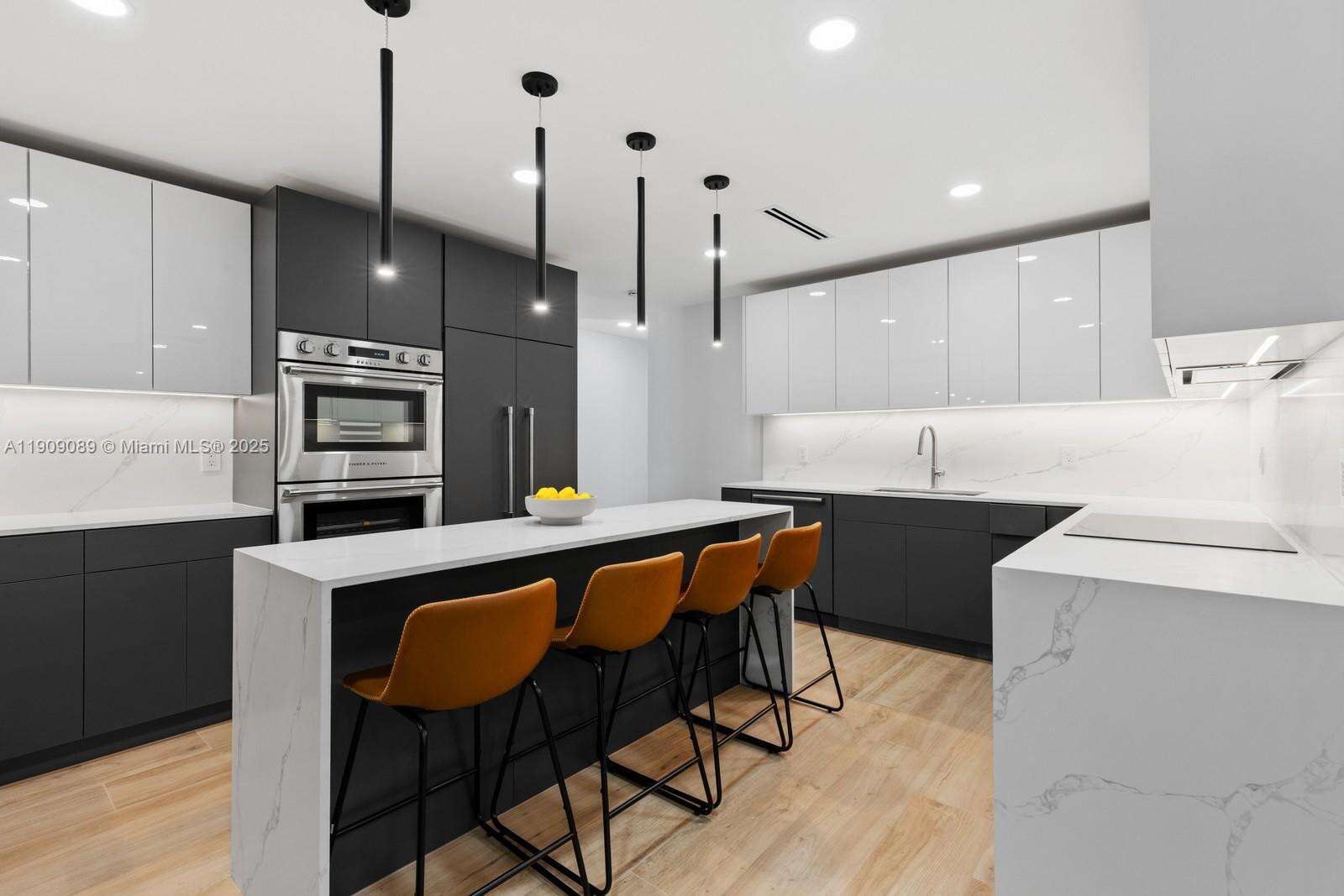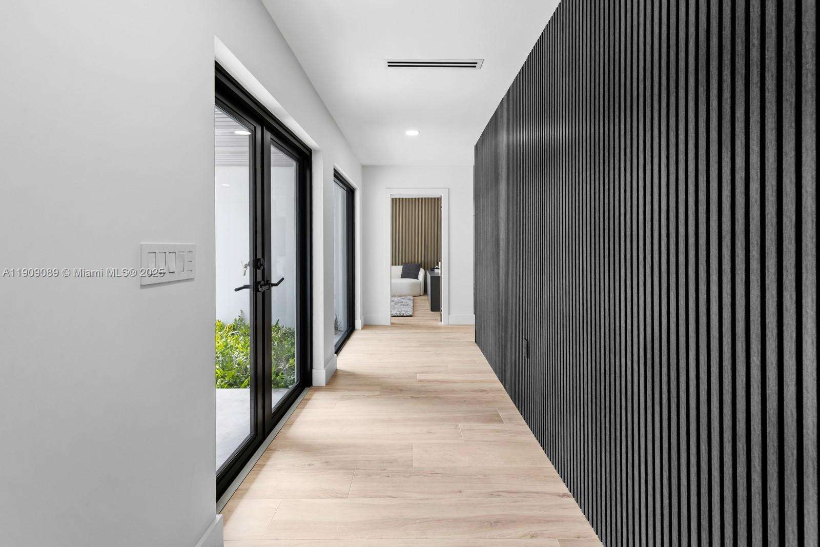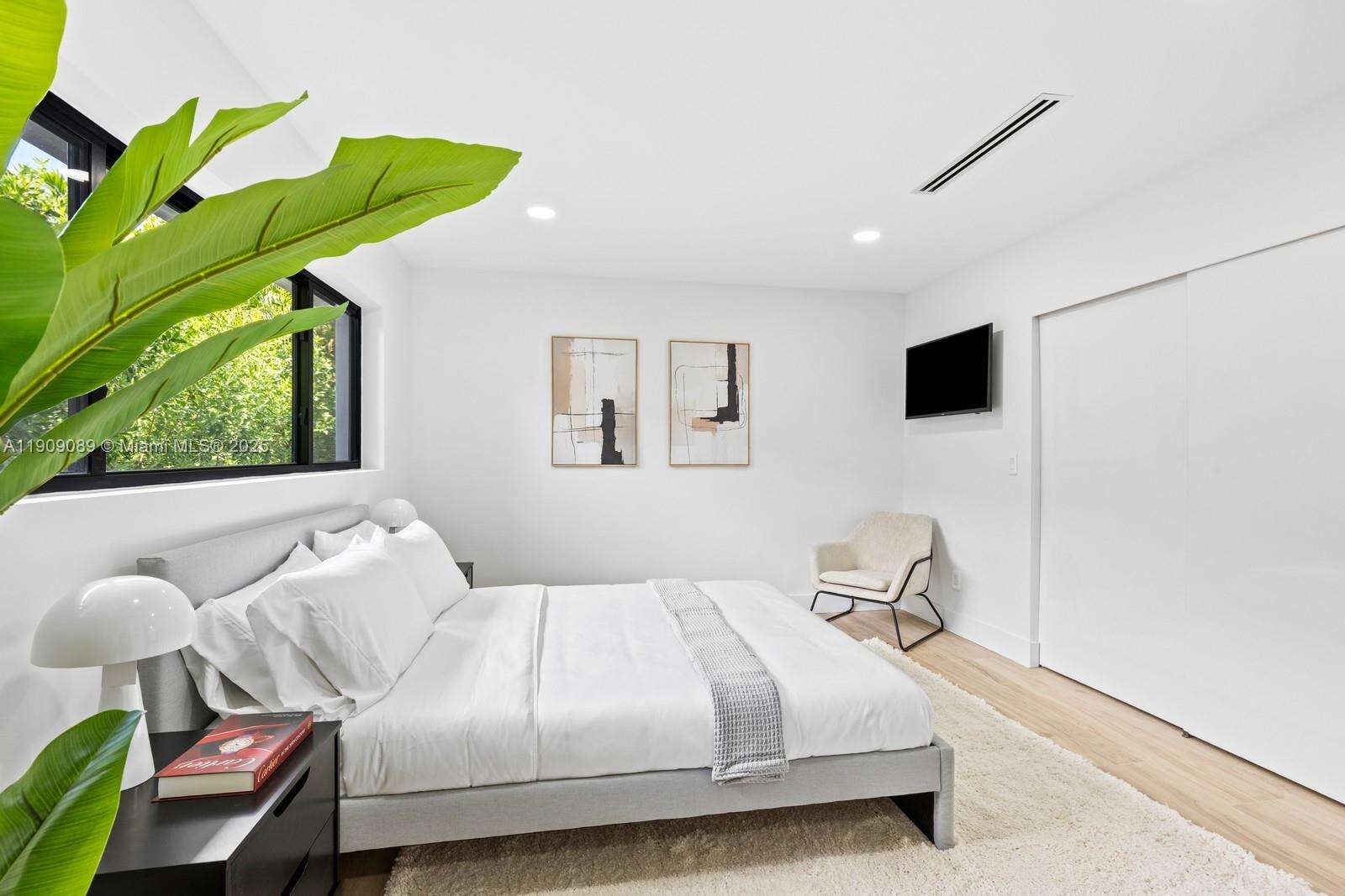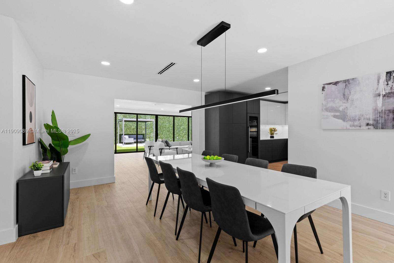 Experience Luxury living in this architectural masterpiece located in the highly coveted neighborhood of Bay Heights in Coconut Grove. This 5bed/5bath plus office has undergone a complete renovation, combining modern elegance with timeless design. Set on 11,500 sqft. lot, this home is filled with natural light and features an open-concept floor plan connecting living, dining, and outdoor spaces. The living room boasts sliding glass doors that open on all sides, epitomizing for an indoor-outdoor lifestyle. Architectural highlights include sleek LED strip lighting, lush boxwood details, and warm slatted wood accents. The private backyard is surrounded by mature landscaping, a pool, BBQ area, and pergola. Nestled in the 24/7 police-patrolled community of Bay Heights. Offered Fully Furnished.
