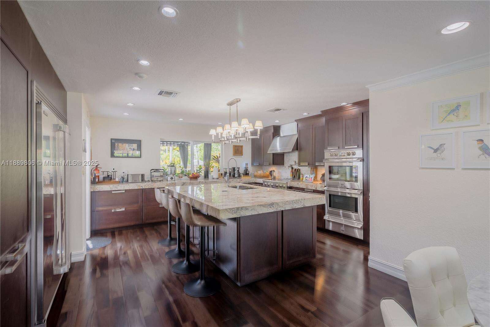 Welcome to your dream retreat in Sunset View! This 4-bed, 3-bath home with 4,148 sq ft of living space sits on a lush 28,371 sq ft lot. A charming 1-bed/1-bath guest house with full kitchen adds flexibility for family or guests. Enjoy a sparkling pool, covered terrace with bar, BBQ, and a basketball court perfect for entertaining. The circular driveway fits 10+ cars, while updated interiors offer warmth and style. Located near top schools, Coral Gables, South Miami & Dadeland. Your family’s next chapter starts here.