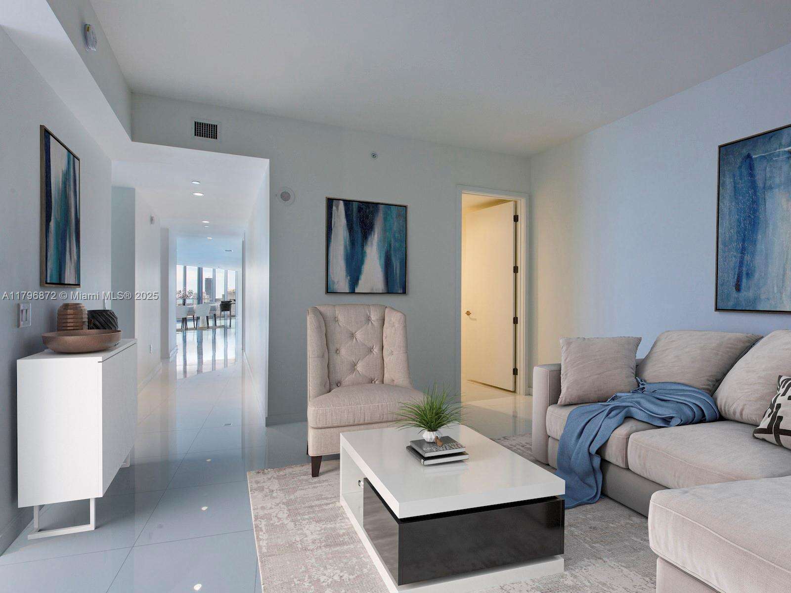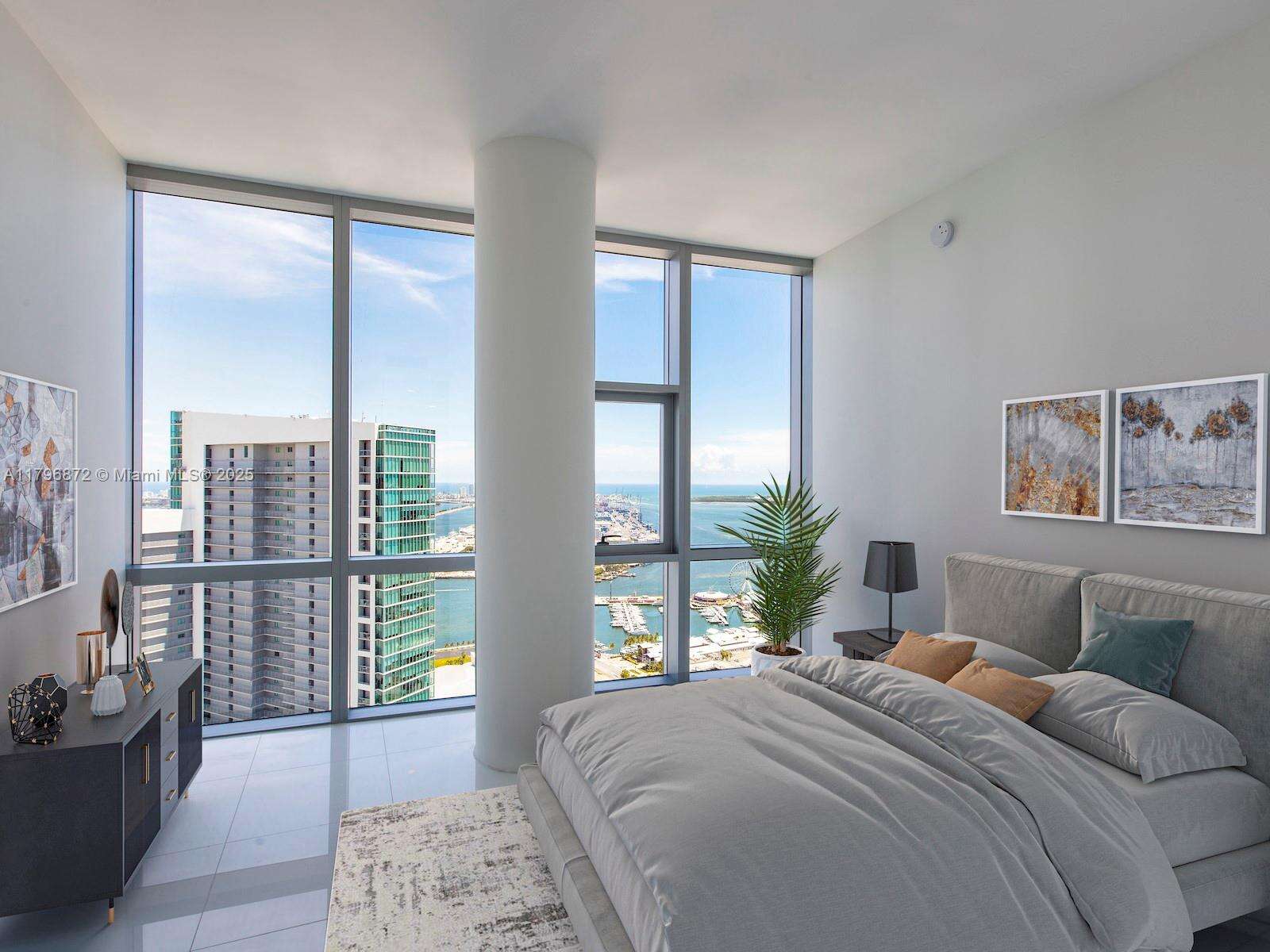Spectacular 4 bedroom, 5 bathroom penthouse unit with an additional den in Miami’s iconic Paramount Miami Worldcenter. This new-construction unit on the 50th floor offers incredible views from every room across its over 4K SqFt. Residents enter the unit via its private elevator and step into the great room, featuring floor to ceiling windows, a European-style kitchen & a 530 SqFt balcony, perfect for entertaining. This penthouse unit offers a split floorplan with a large master-suite, 3 large guest bedrooms with in-suite bathrooms and walk-in closets, and a separate den with a full bathroom and large closet. Paramount Miami Worldcenter offers resort-style amenities and is located in the heart of Downtown Miami, steps from the city’s most popular attractions and the shores of Biscayne Bay.