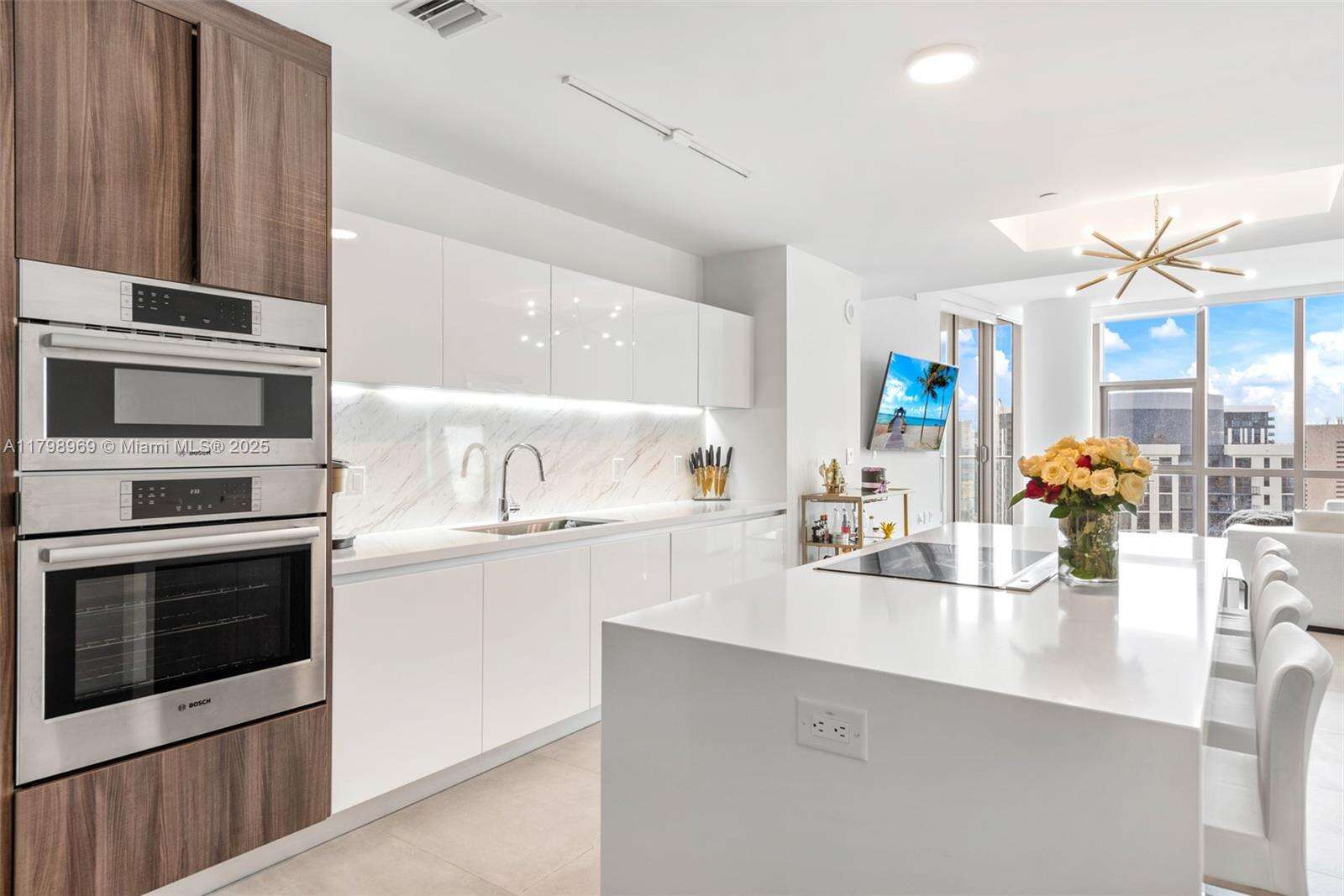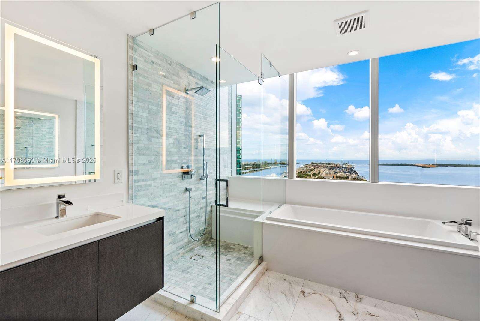 Stunning and spacious corner residence on the 40th fl with unobstructed ocean & intracoastal views. This spacious 4 bedroom (den converted) 4 full bath Corner Residence features private elevator entry, Bosch and Sub-Zero appliances, Italian cabinetry, marble floors, walk-in closets, and an oversized balcony. Includes a separate guest suite with private entrance & kitchenette. Paramount Residence has 6 acres of amenities: rooftop pools, 5 main pools, fitness center, spa, basketball court, tennis courts, movie theater, and much more. Literally in the center of One Worldcenter with high-end shopping, brand new restaurants, fun filled bars, Museum of Ice-cream, Miami Heat arena, arts center, & so much more. Luxury Living in the most desirable corner residence at Paramount!