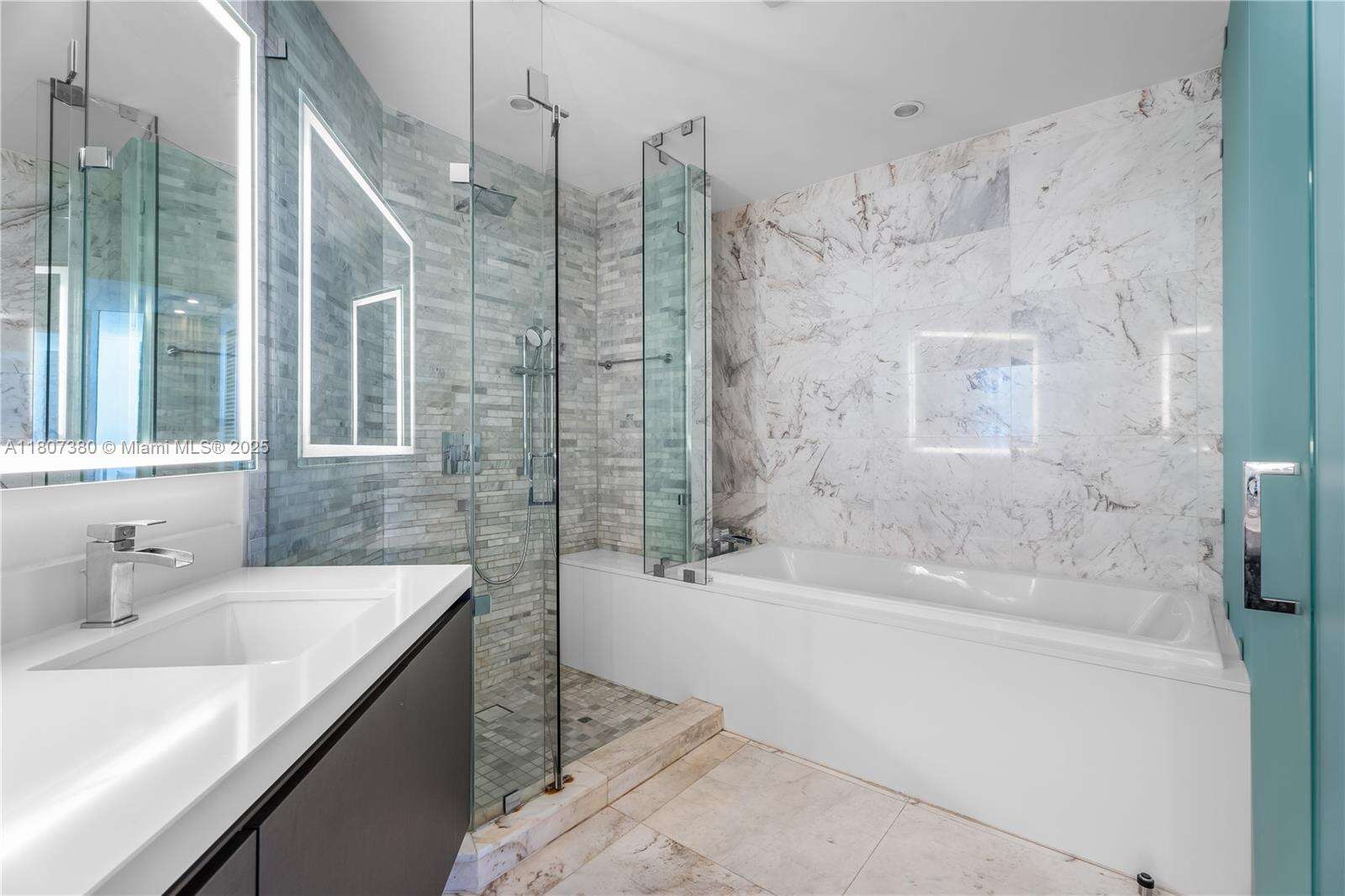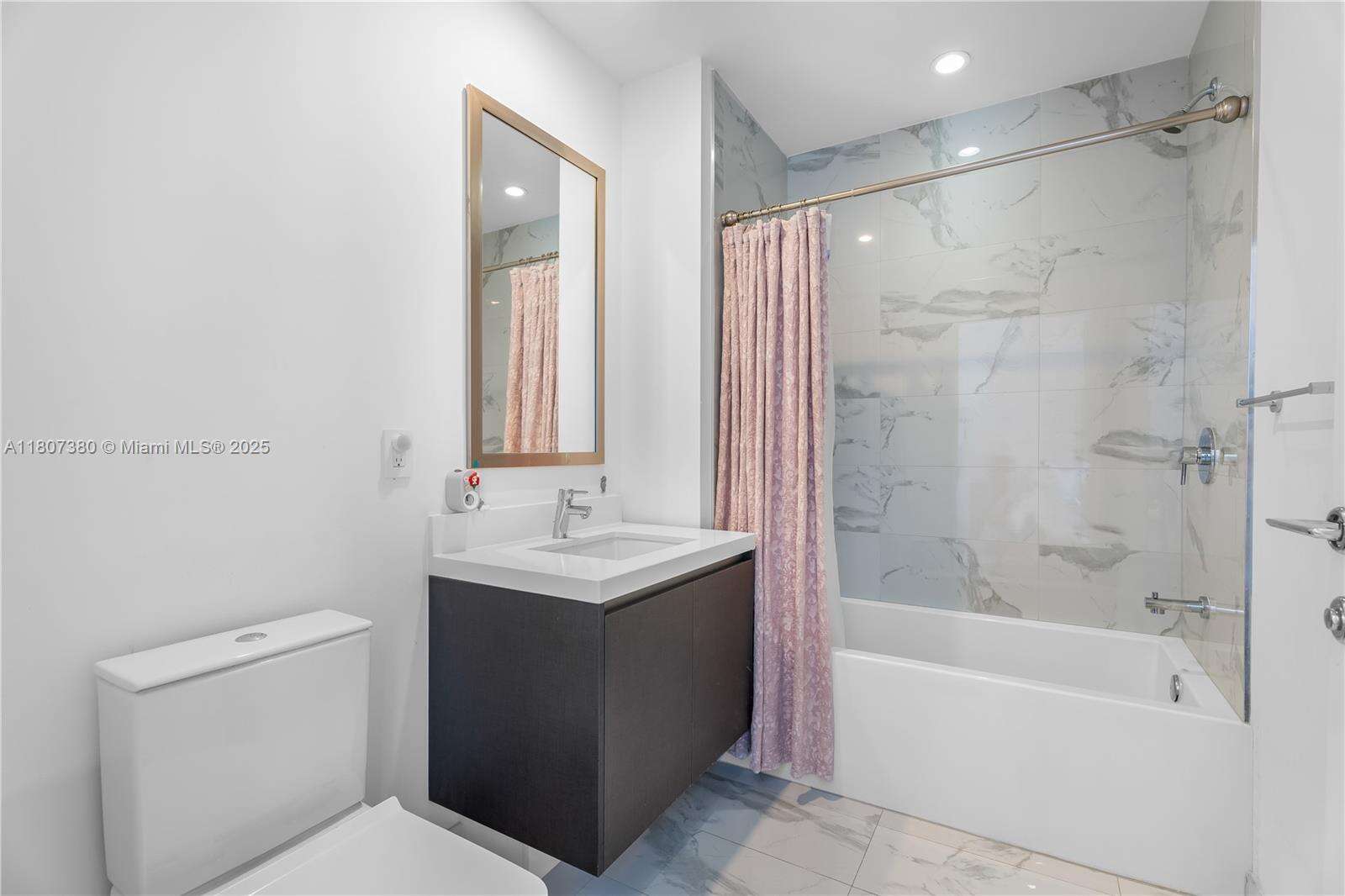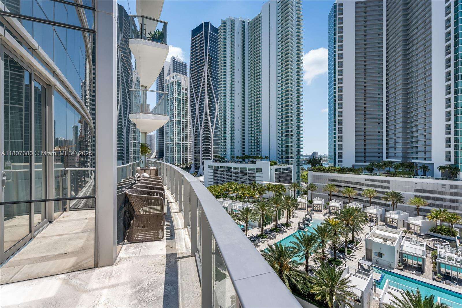 A redesigned 2-bedroom + den with the option to convert into a 3-bedroom, located in the heart of Miami Worldcenter. Unit #1409 features custom doors, handles, flooring, window treatments, millwork, upgraded lighting, wallpaper, built-in storage, and a premium audio system. Enter through a private lobby with secure keycode access, custom finishes, and built-in cabinetry to maximize storage. The residence opens through a foyer hallway which leads you to the bright living areas with water and skyline views. The expansive outdoor terrace, located above the amenity deck, includes a TV and lounge space to enjoy the bay and city skyline views. The residence is fully-furnished and located in the building with the most amenities in the world.