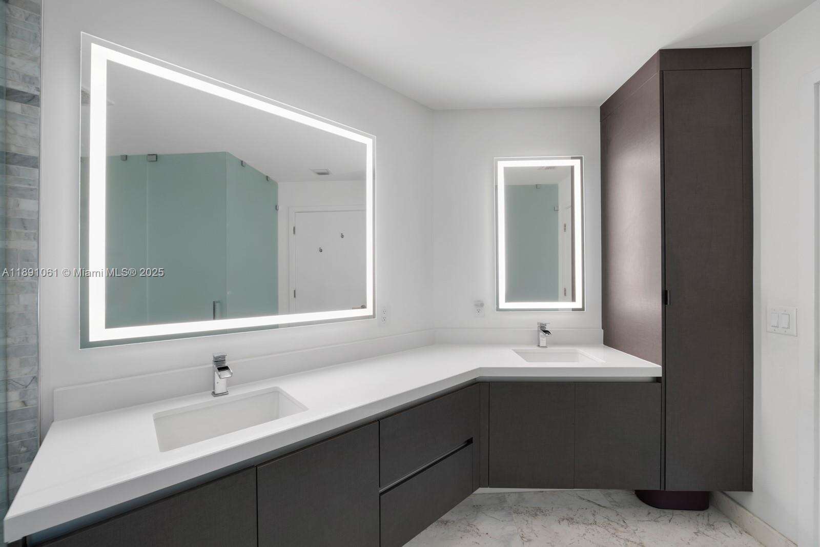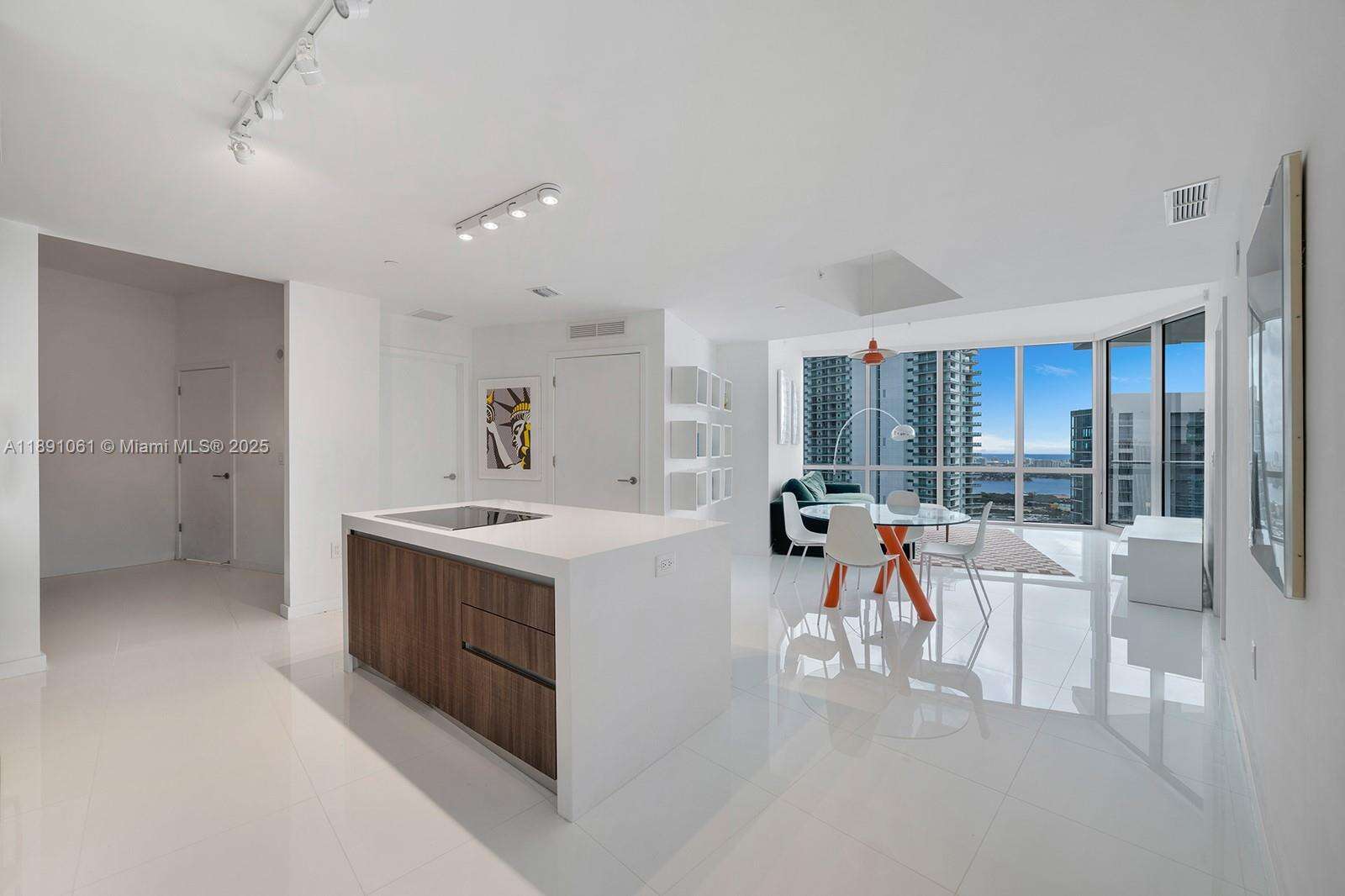 Welcome to Residence 4403 at Paramount Miami Worldcenter, home to Miami’s largest amenity collection. Resort style living on the desirable 44th floor with direct bay views and sunlit interiors framed by floor to ceiling glass. An open floor plan places the kitchen and waterfall edge island facing the living area for effortless entertaining, with a split bedroom layout and a versatile den. Finishes include top of the line appliances, custom built out closets in both bedrooms, and a primary bath with dual vanity sinks, bathtub, and separate shower. A private elevator opens to your own foyer. Additional features include 10 ft ceilings, a bay facing balcony, laundry room, and storage throughout. Premier parking with assigned spaces next to the elevator plus one valet space.